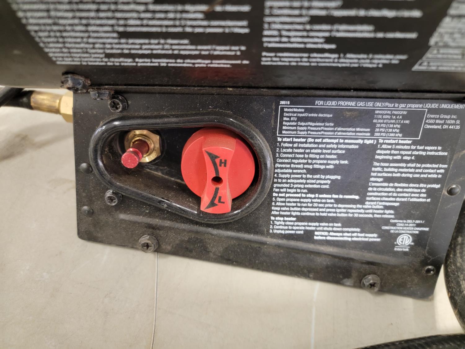 Mr. Heater 60000 BTU, propane, extra venting