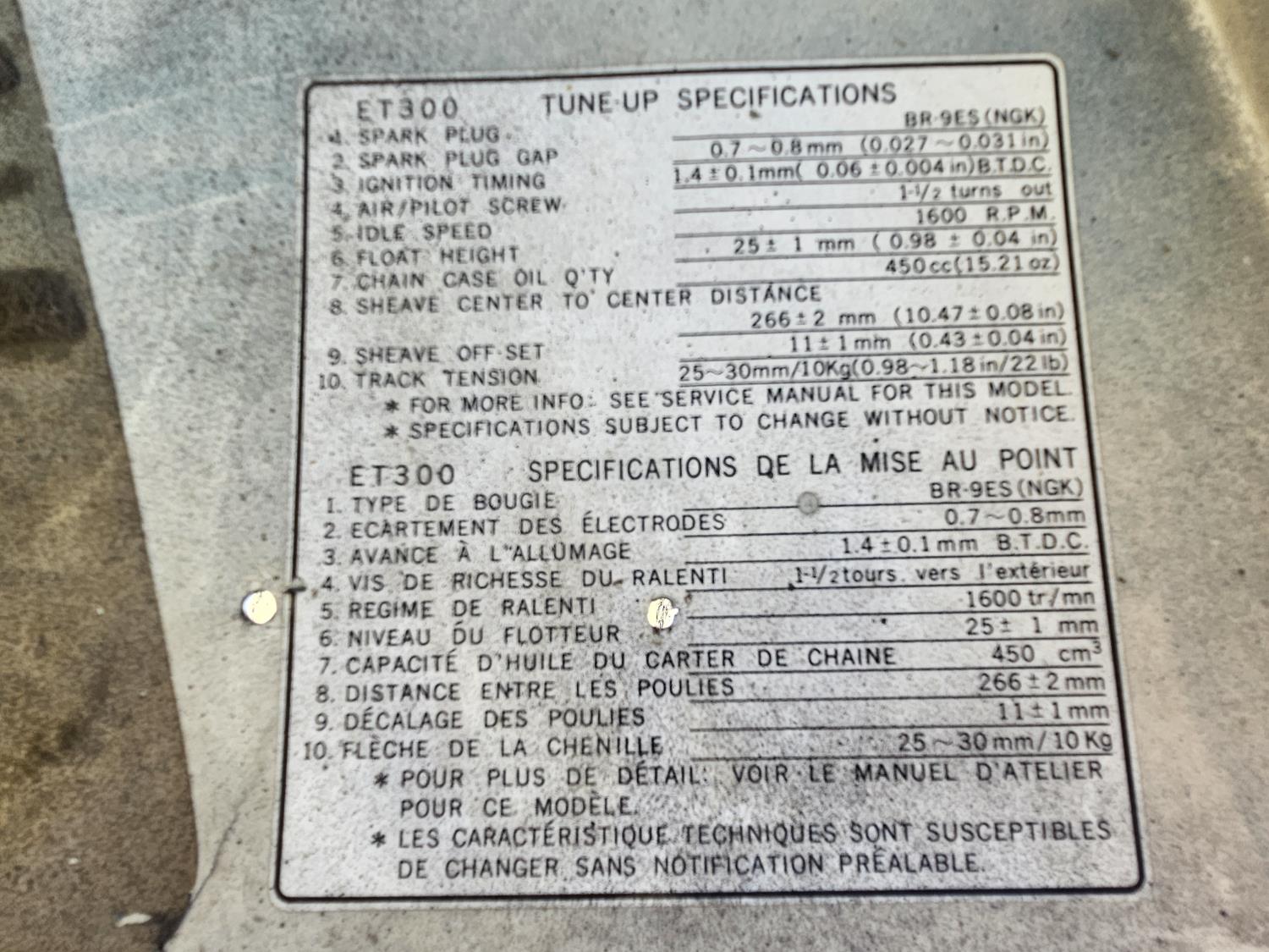 100 1981 Yamaha ET 300 Snowmobile (Inoperable)