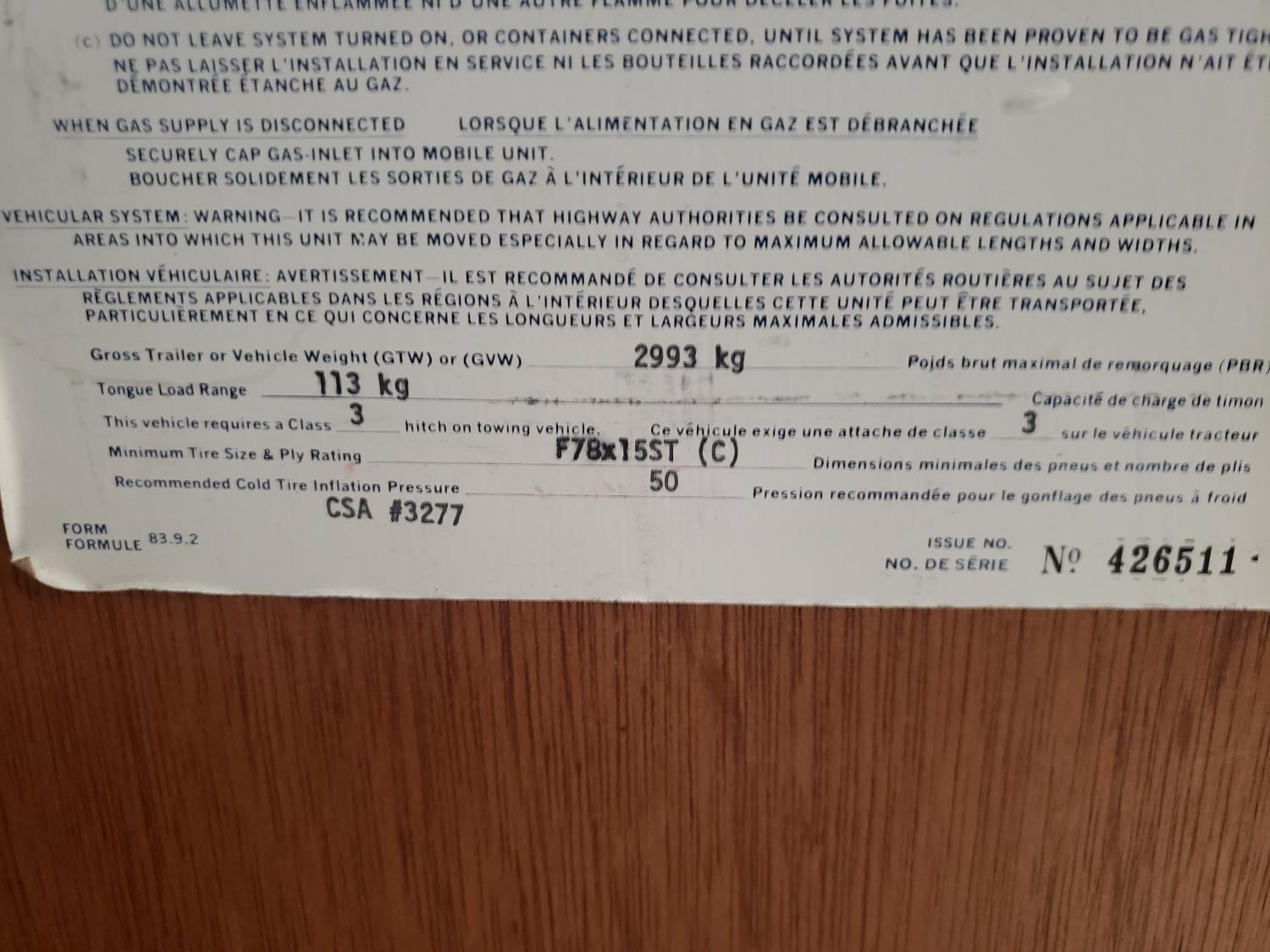 - Selling with Bill of Sale only! Consult your local registry office for registration requirements as provinces differ.