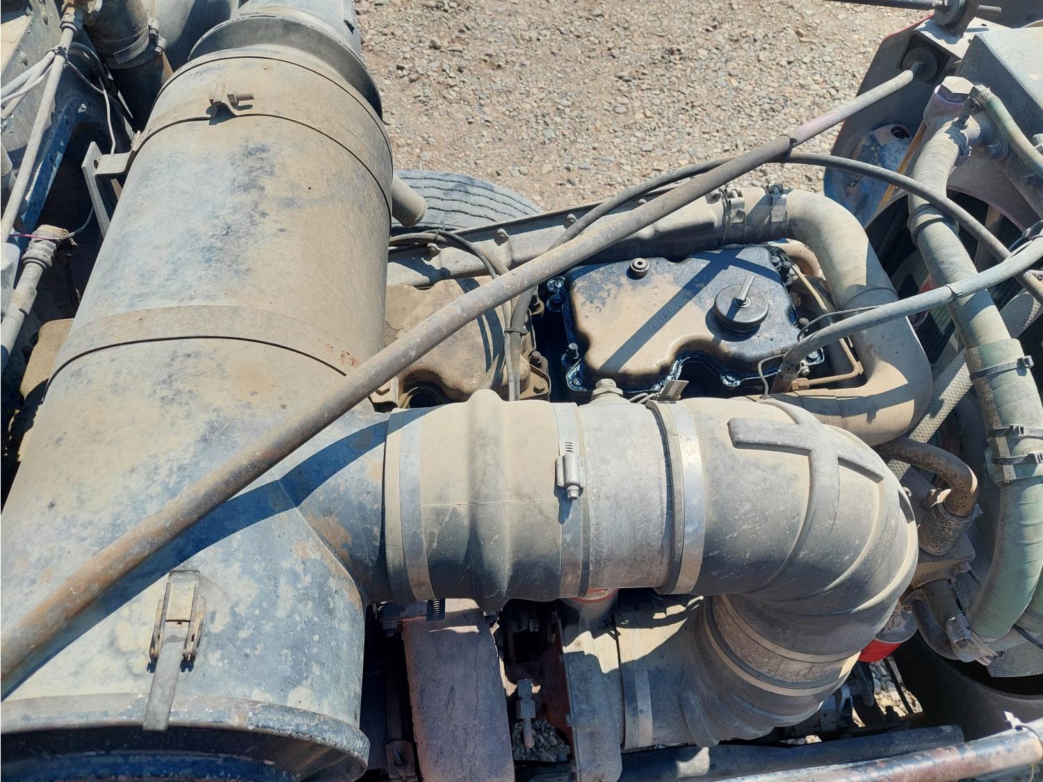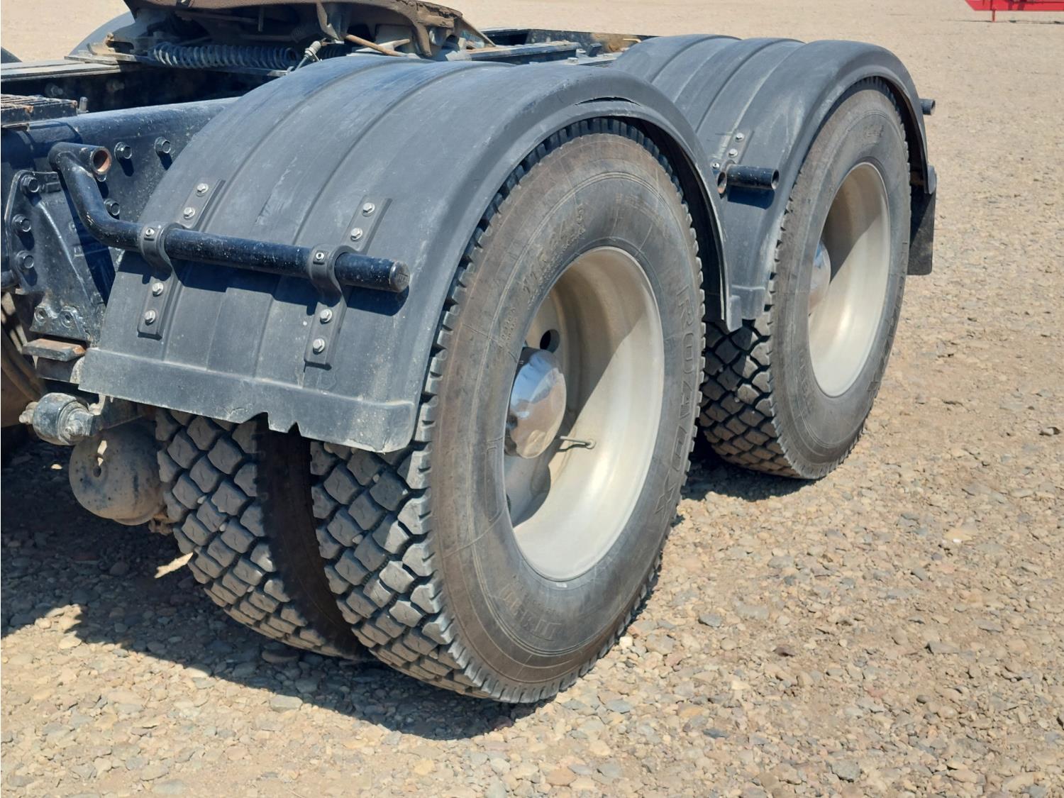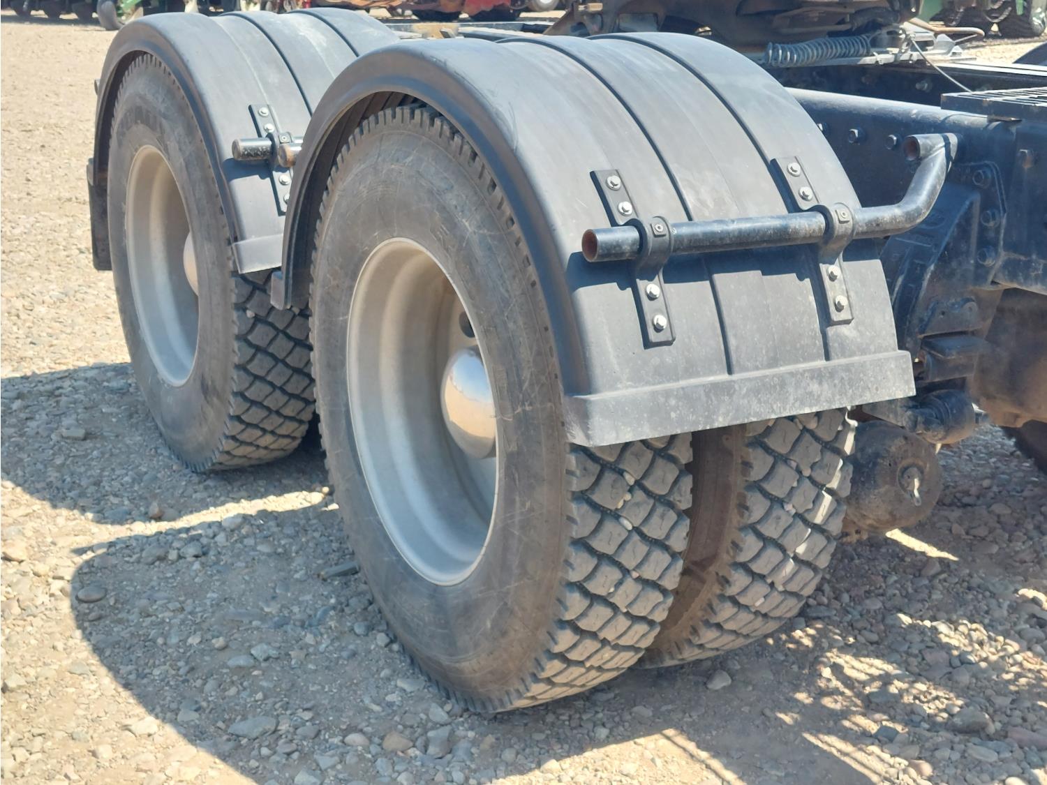 Cummins NTC444 6 cylinder engine, Eaton Fuller 15 speed manual transmission, air ride suspension, 12,000 lb front axle, 44,000 lb rear axles, diff lock, 3.70 ratio, 228 inch WB, all aluminum wheels, 11R24.5 tires