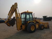 Enclosed cab, 4 speed manual transmission, 90 inch smooth loader bucket, 24 inch dig backhoe bucket, 1 rear auxiliary hydraulics, outriggers, extendable stick, 14.5/75-16.1 front tires, 21L-24 rear tires