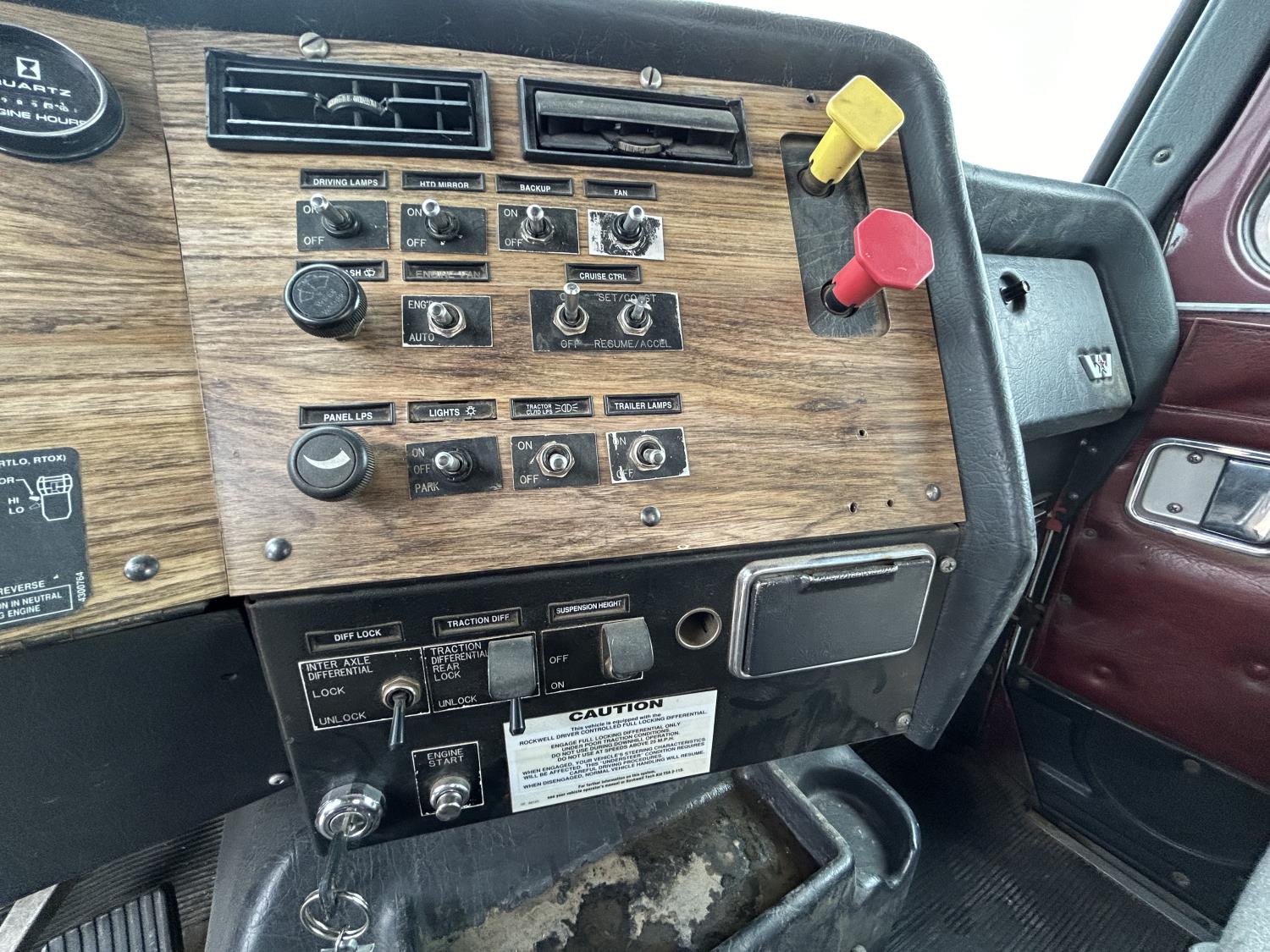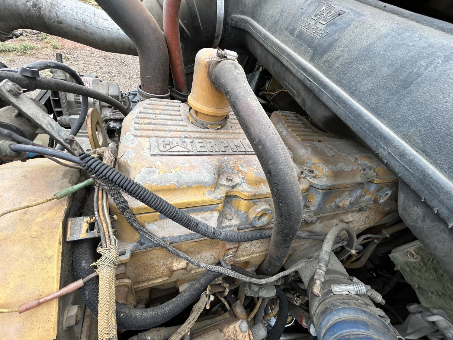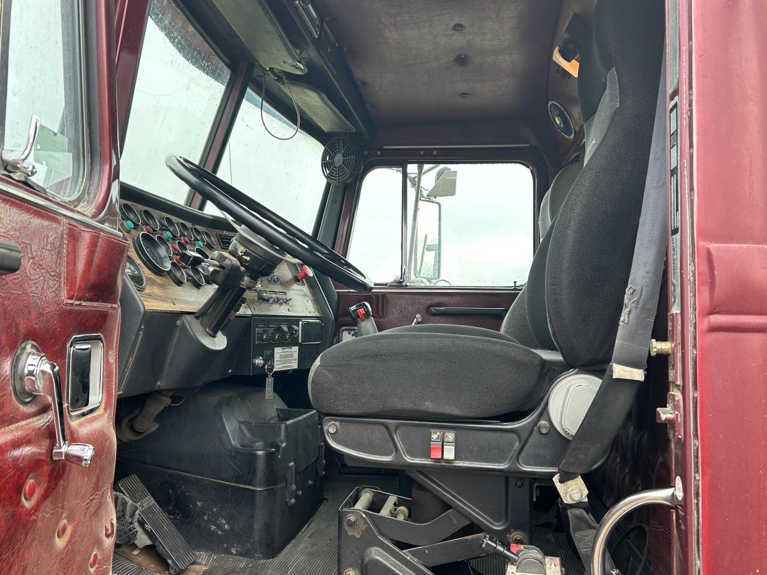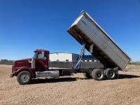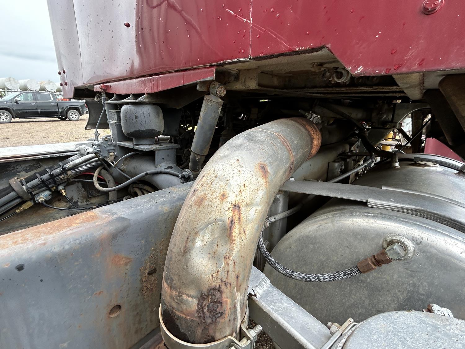 Caterpillar 3406E 6 cylinder 410 HP diesel engine, engine block heater, Eaton Fuller 13 speed manual transmission, A/C, cruise control, air ride seats, radio, stereo, hydraulic wet kit, aluminum tool boxes, 22 ft box, hoist, air ride cab, roll tarp, air ride suspension, 12,000 lb front axle, 46,000 lb rear axles, diff lock, 288 inch WB, all aluminum wheels, 385/65R22.5 front tires, 11R24.5 rear tires