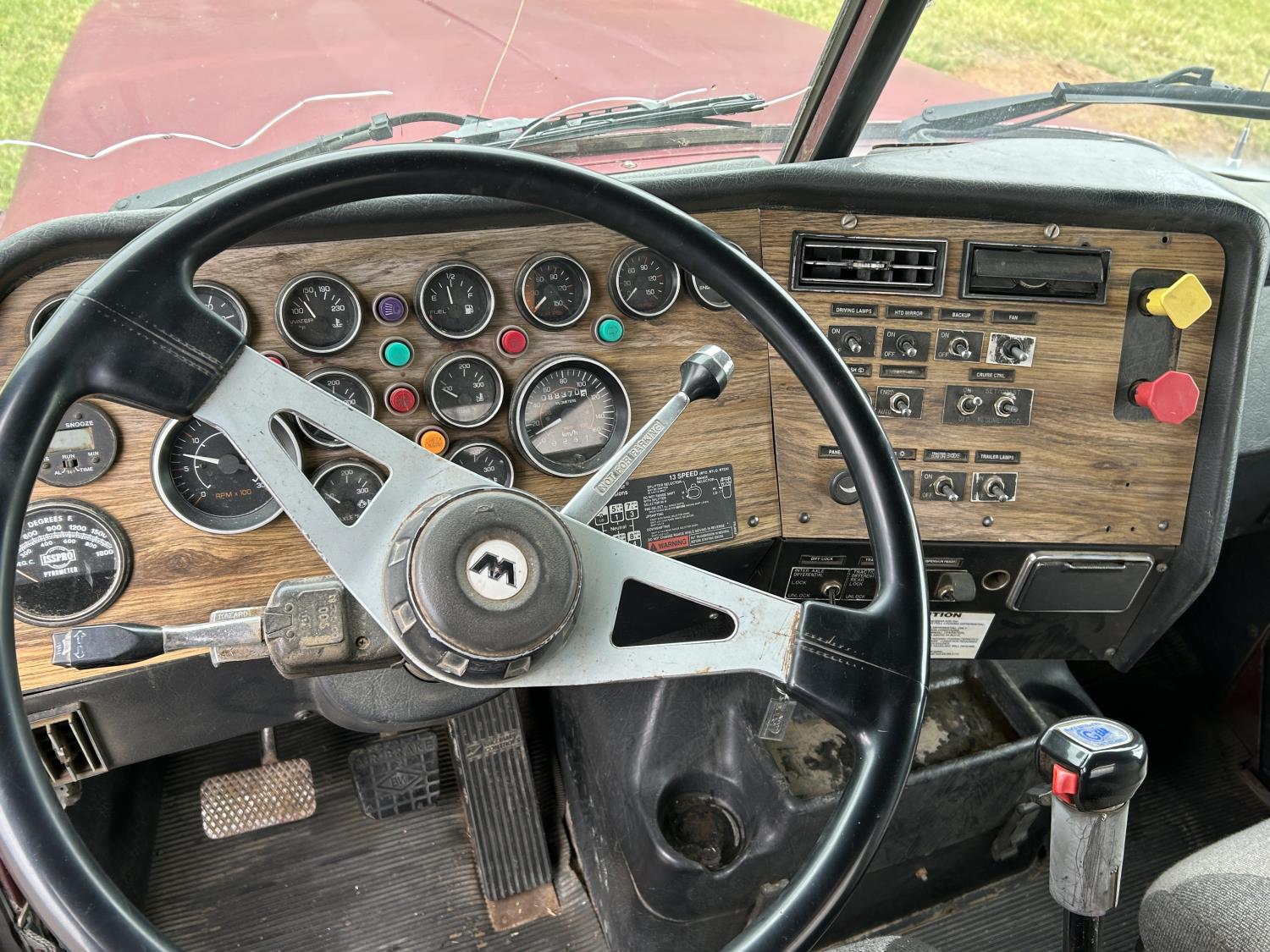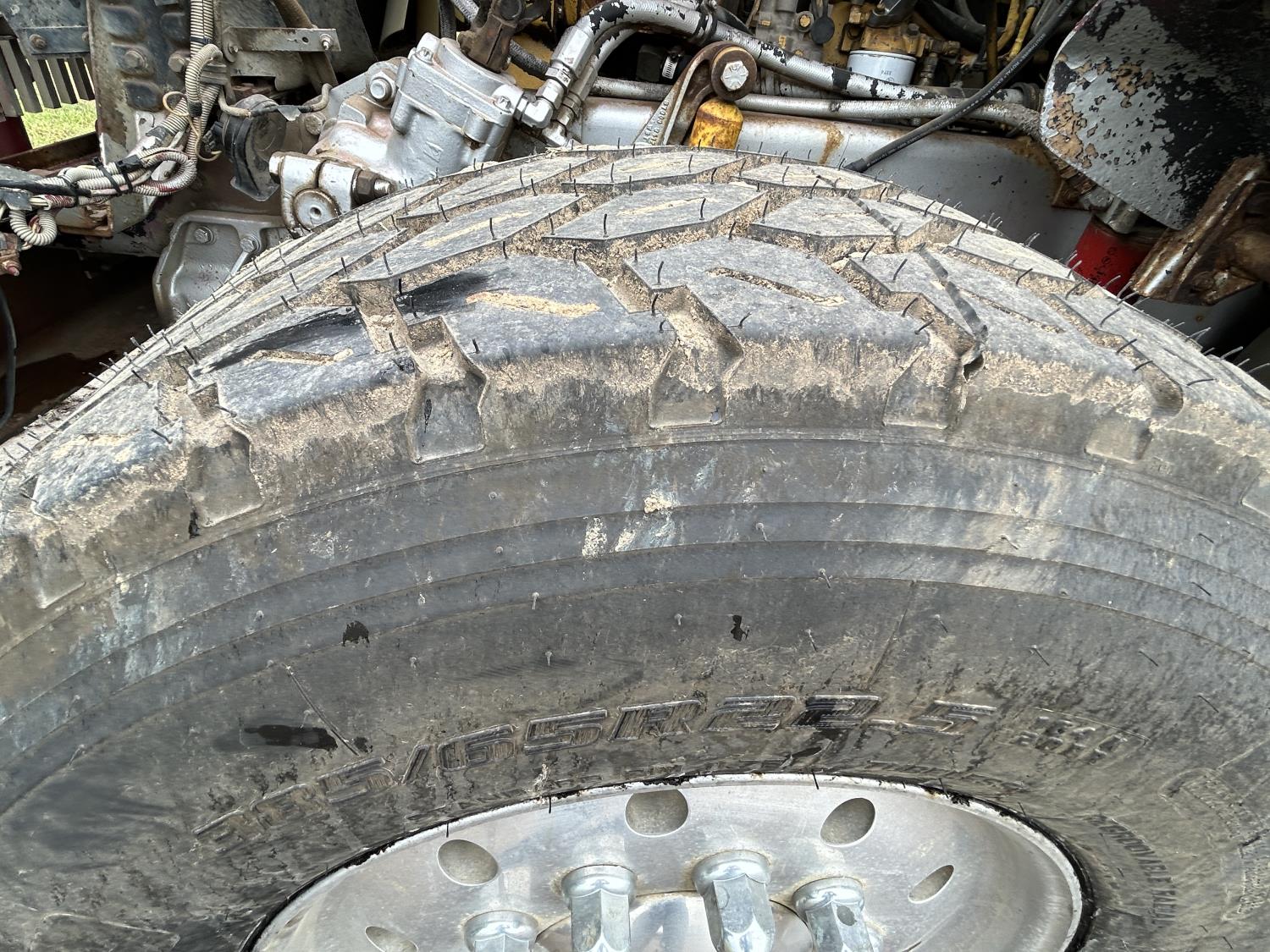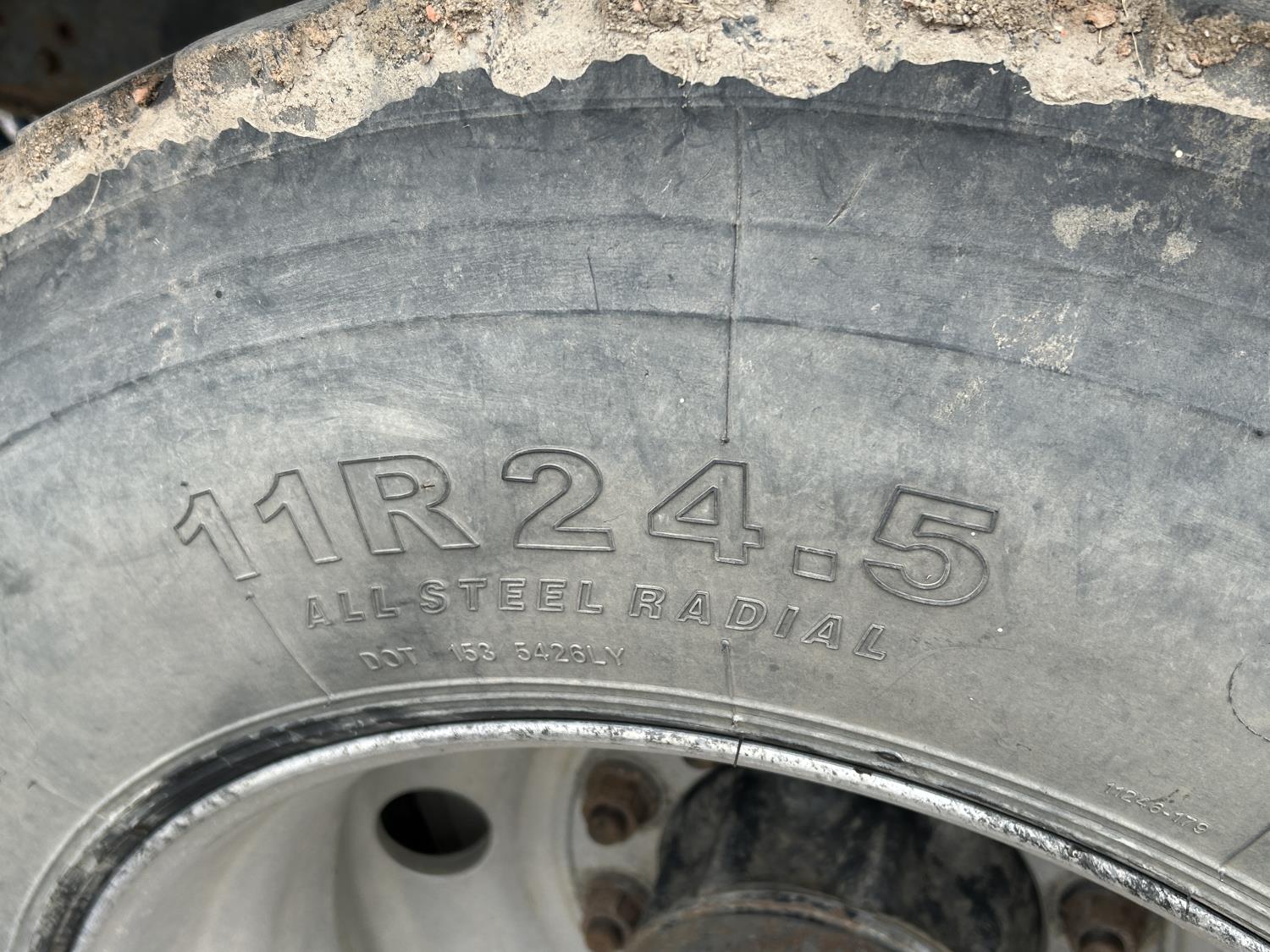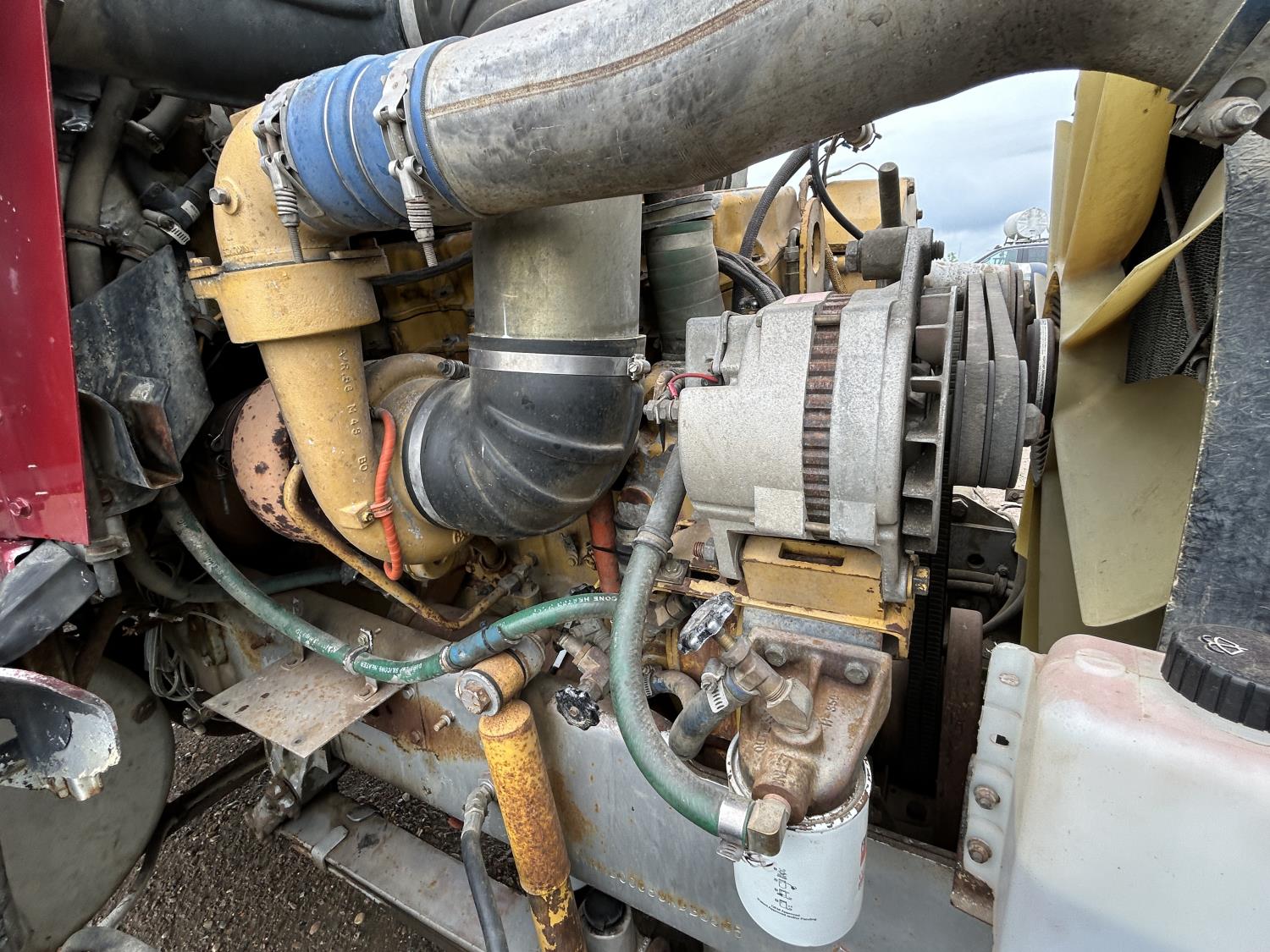 Caterpillar 3406E 6 cylinder 410 HP diesel engine, engine block heater, Eaton Fuller 13 speed manual transmission, A/C, cruise control, air ride seats, radio, stereo, hydraulic wet kit, aluminum tool boxes, 22 ft box, hoist, air ride cab, roll tarp, air ride suspension, 12,000 lb front axle, 46,000 lb rear axles, diff lock, 288 inch WB, all aluminum wheels, 385/65R22.5 front tires, 11R24.5 rear tires