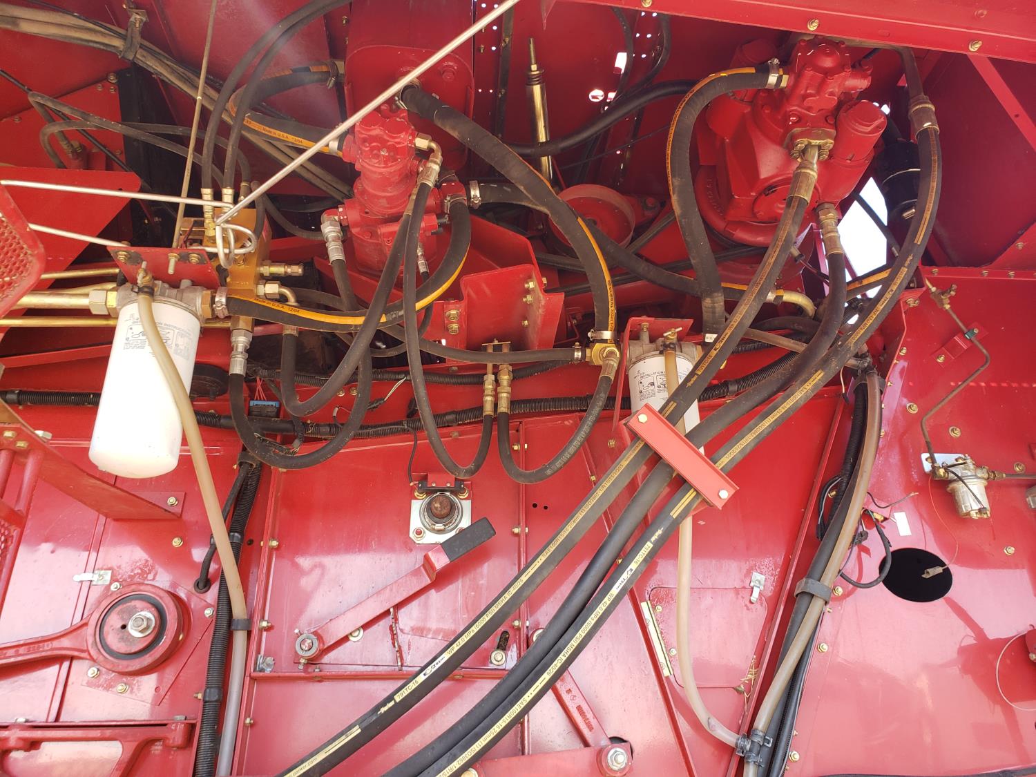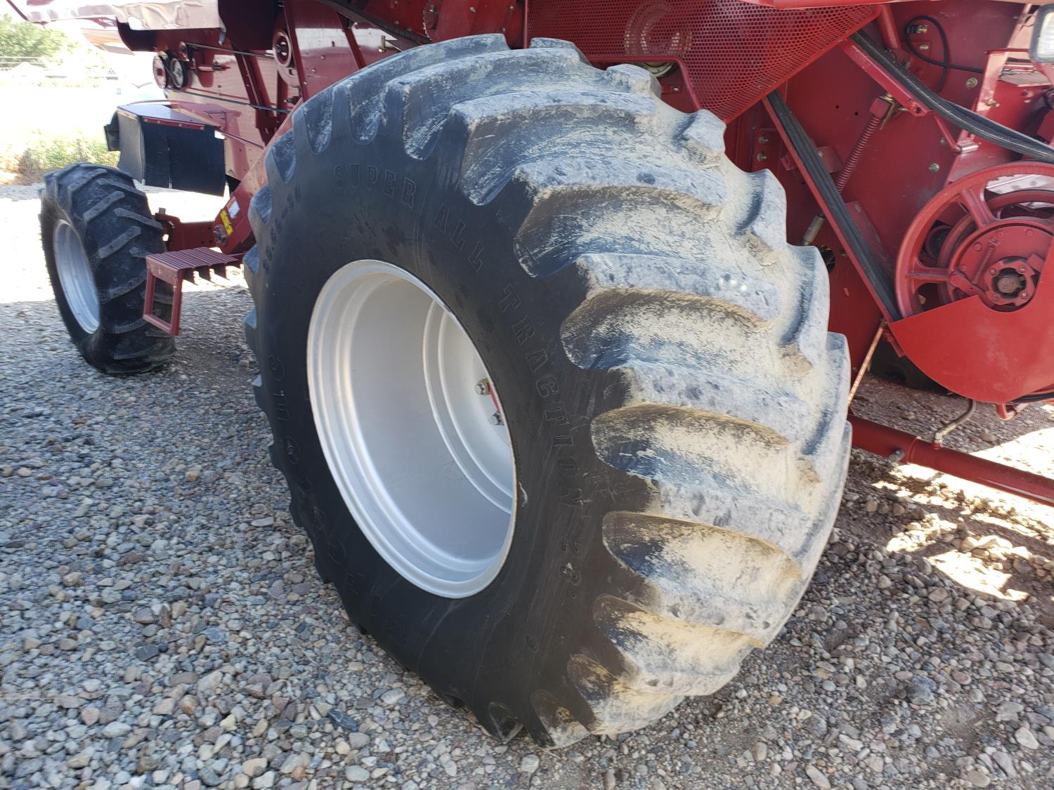 variable speed reel, auto header height, fore & aft, reverser, lateral tilt, yield & moisture, chaff spreader, chopper, grain tank extensions, A/C, buddy seat, 30.5L-32 front tires, 14.9-24 rear tires