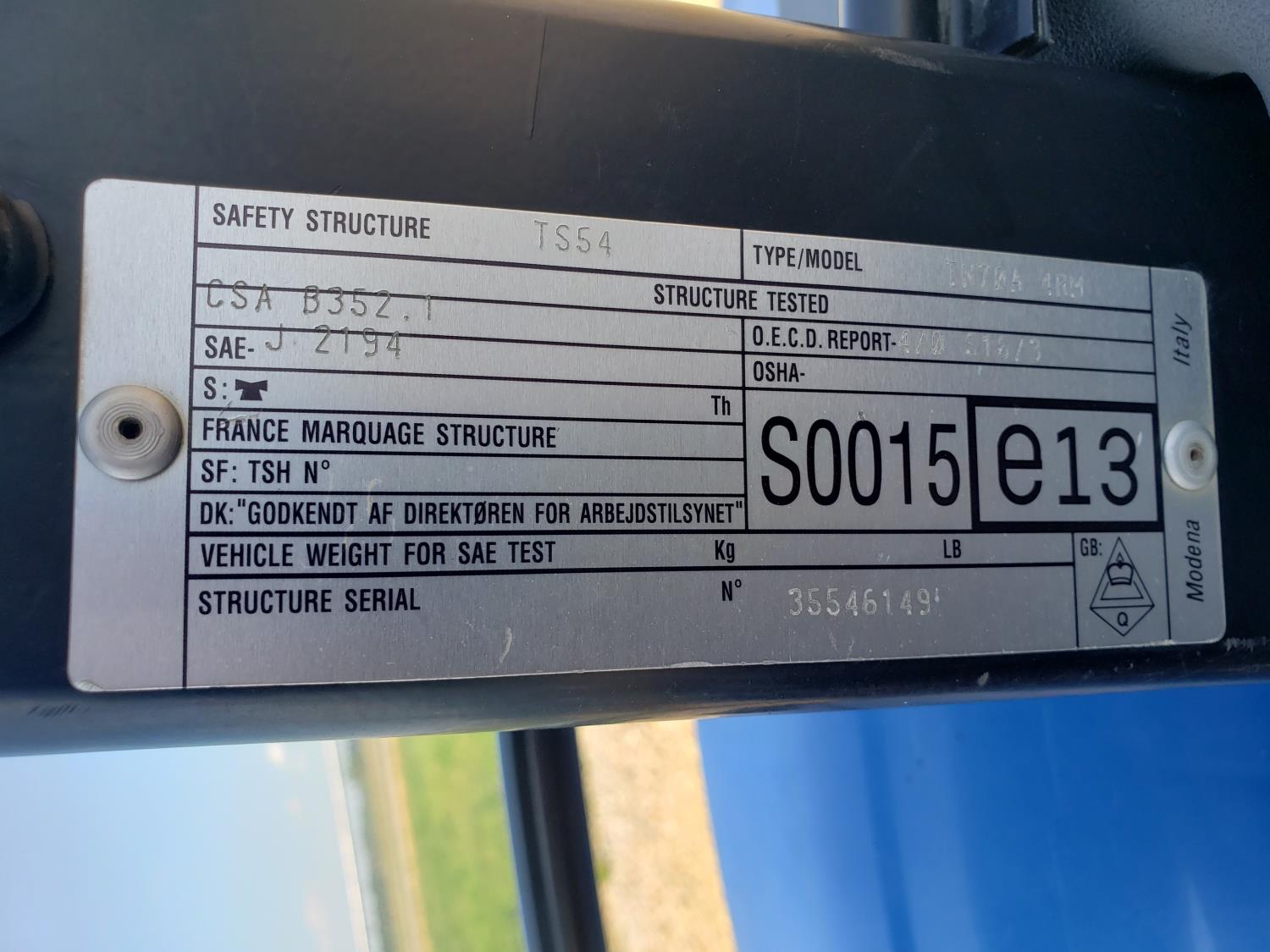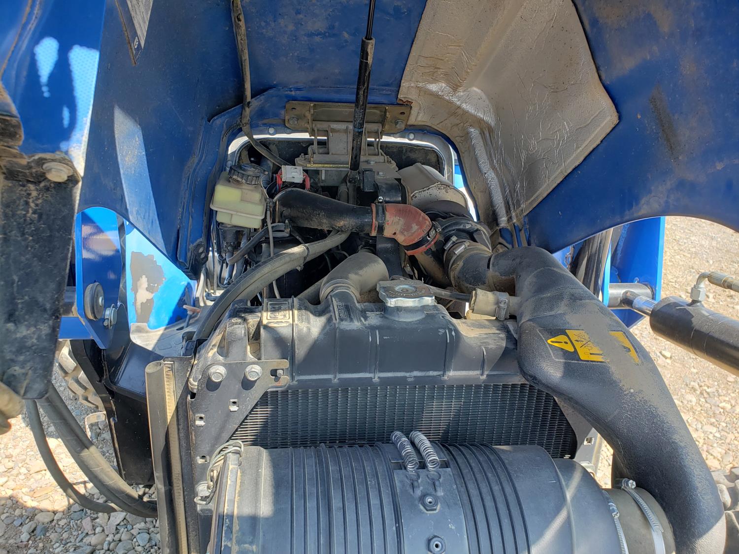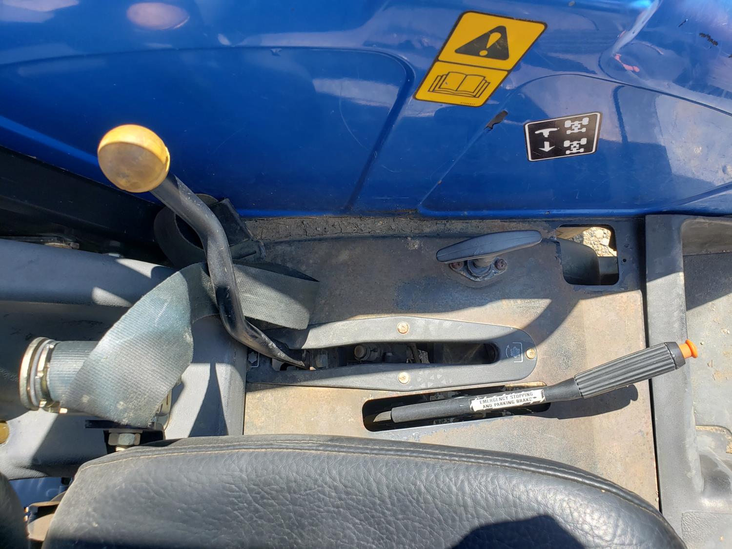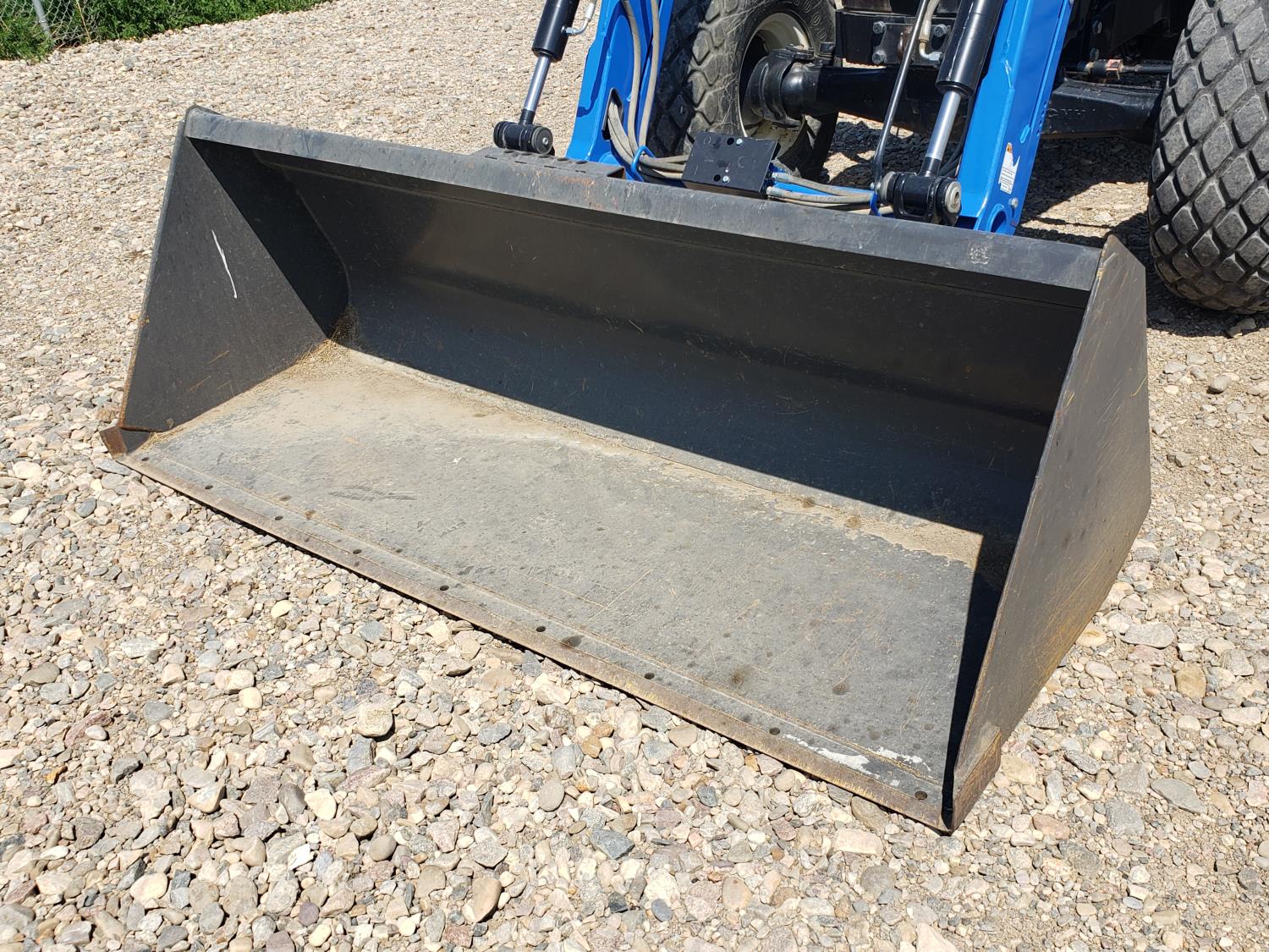 New Holland loader, 84 inch bucket, mid mount hydraulic connection, Iveco 2.9 L 70 HP, engine, 57 PTO HP, open station platform, ROPS, left hand reverser, 540 PTO, 3 point hitch, 1 rear hydraulic outlets, 13.6-16.1 front tires, 16.9-24 rear tires