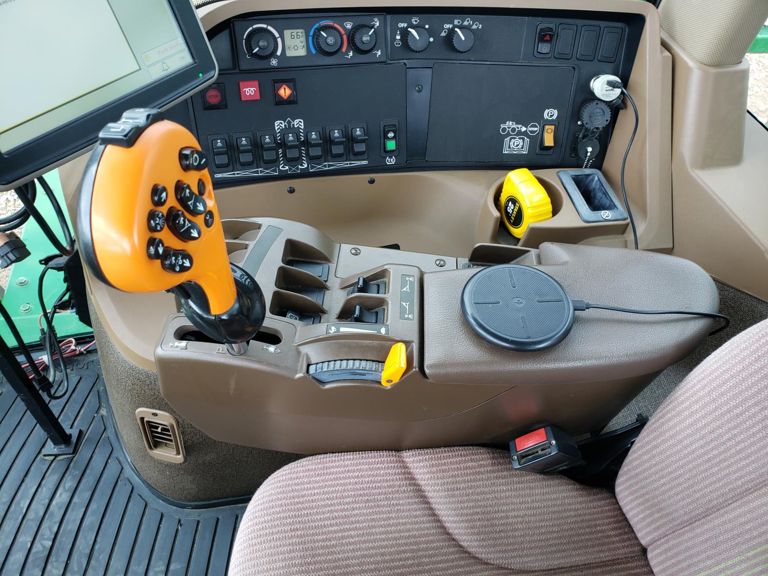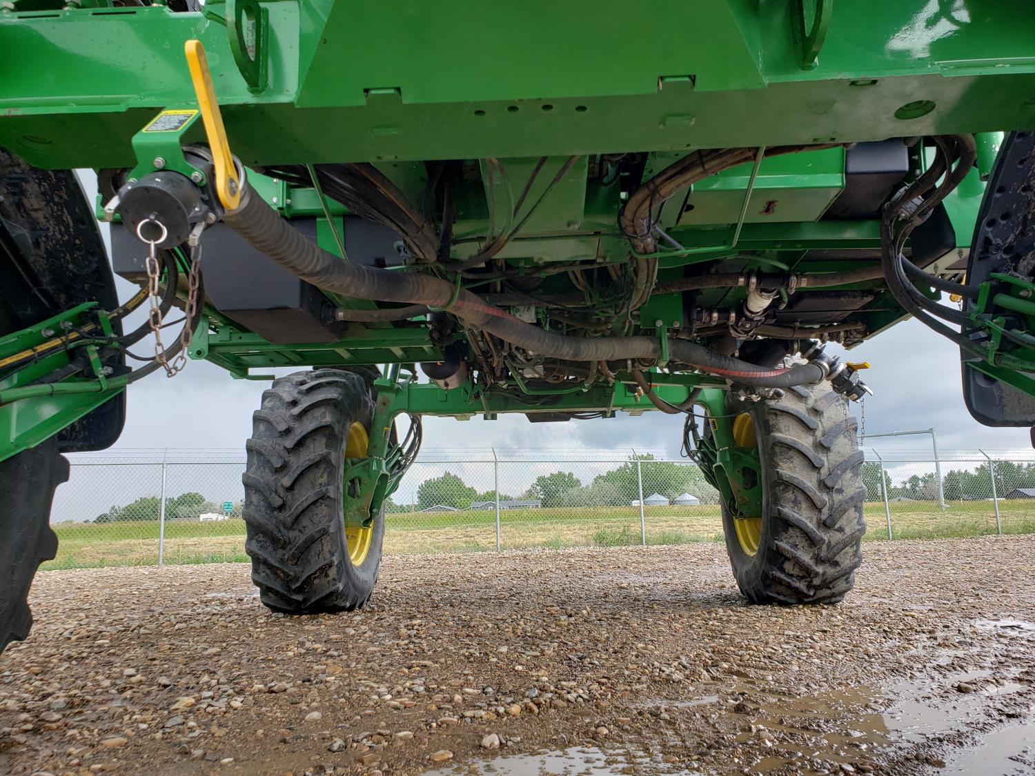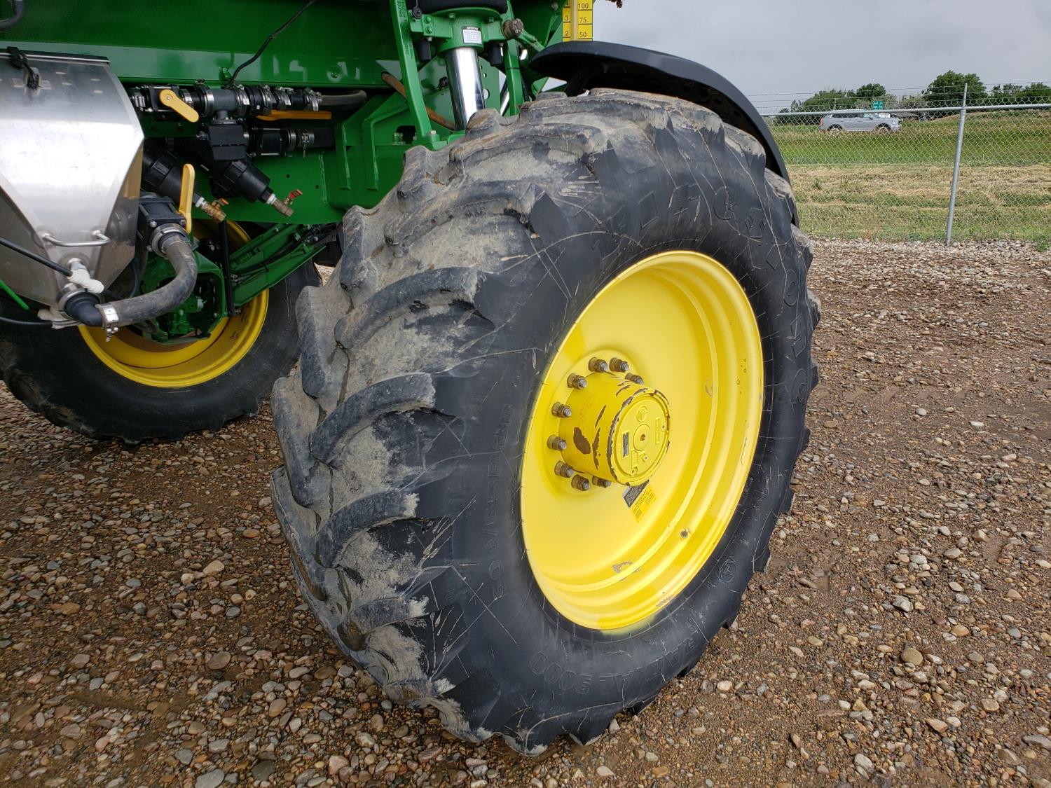 1000 US gallon stainless steel tank, 5 nozzle bodies, 7 sectional controls, hydraulic drive, fence row nozzles, auto boom height, A/C, radio, air ride seat, AutoGuidance Steering, hydro transmission, hydraulic axle adjustment, 3 inch front fill, 600/65R38 tires