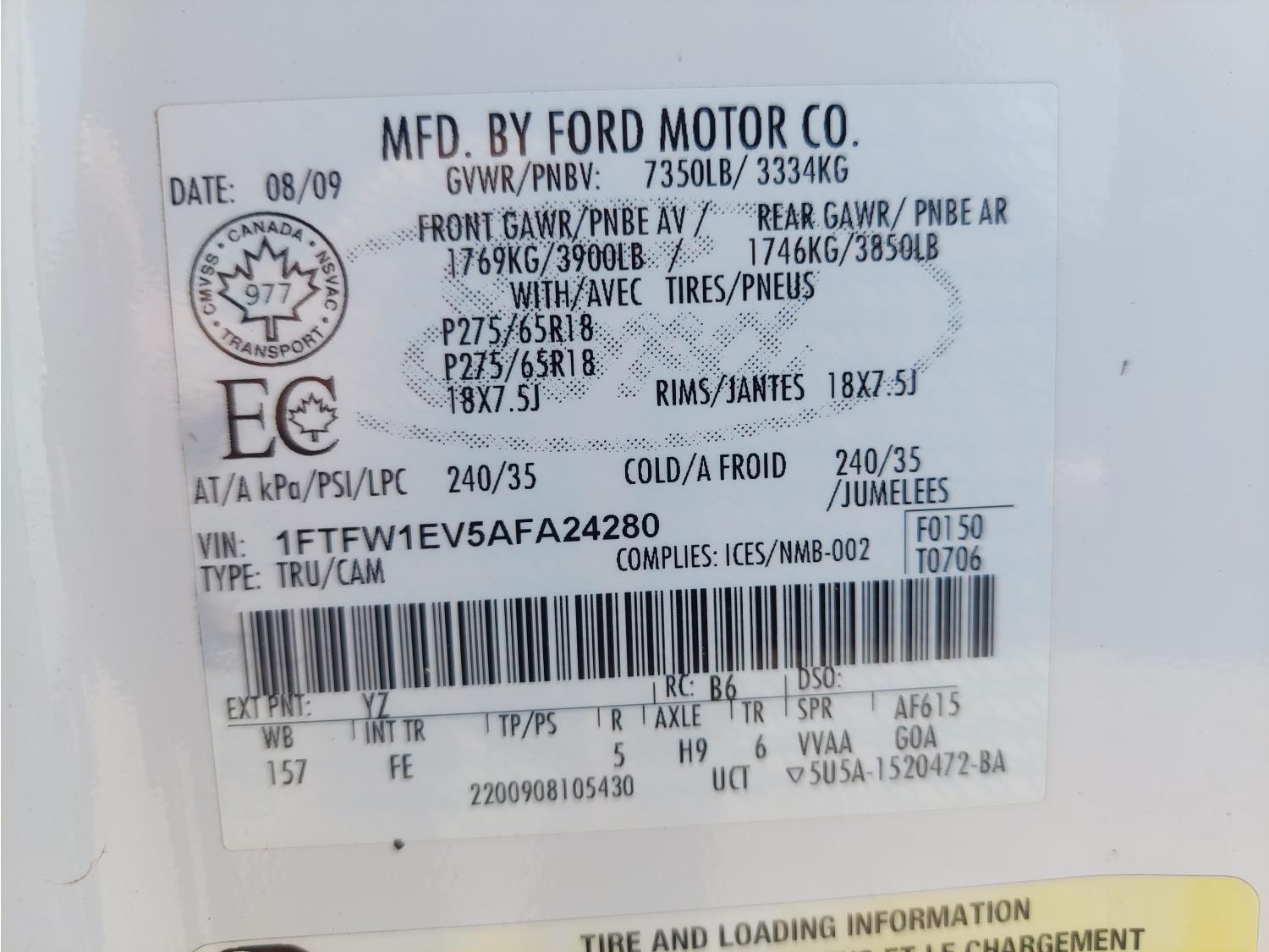 5.4 L, automatic transmission, P/W, P/L, running boards, 6 ft 6 inch ft box, air bags, 275/65R18 tires