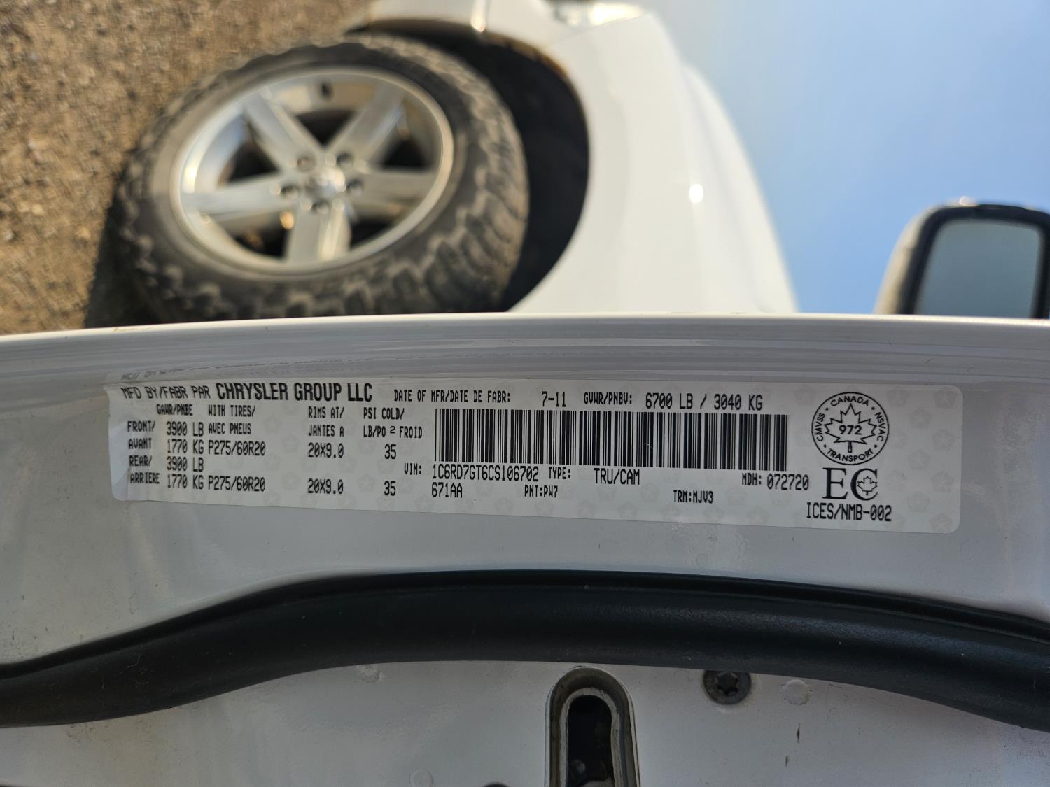 - 1C6RD7GT6CS106702
