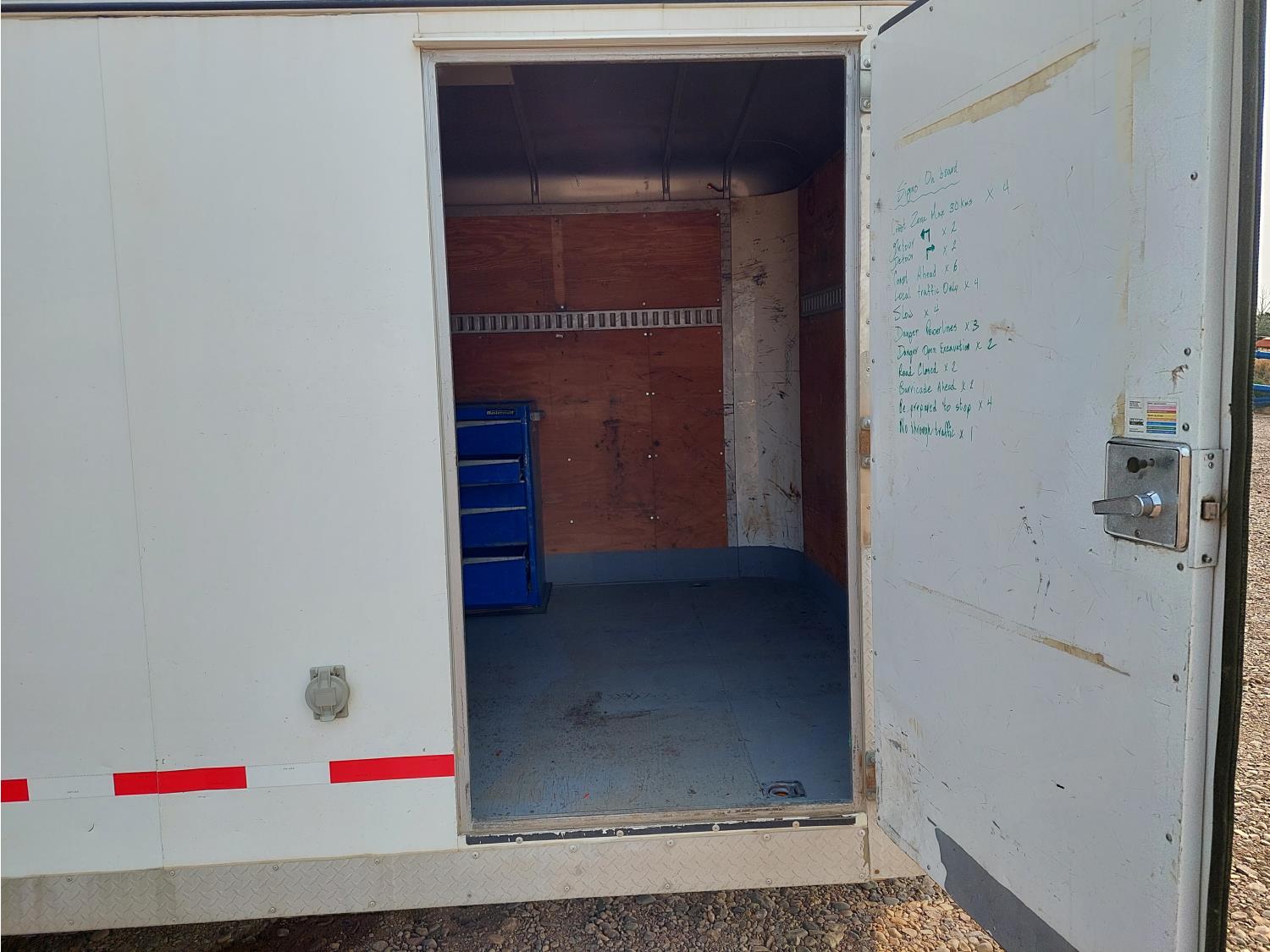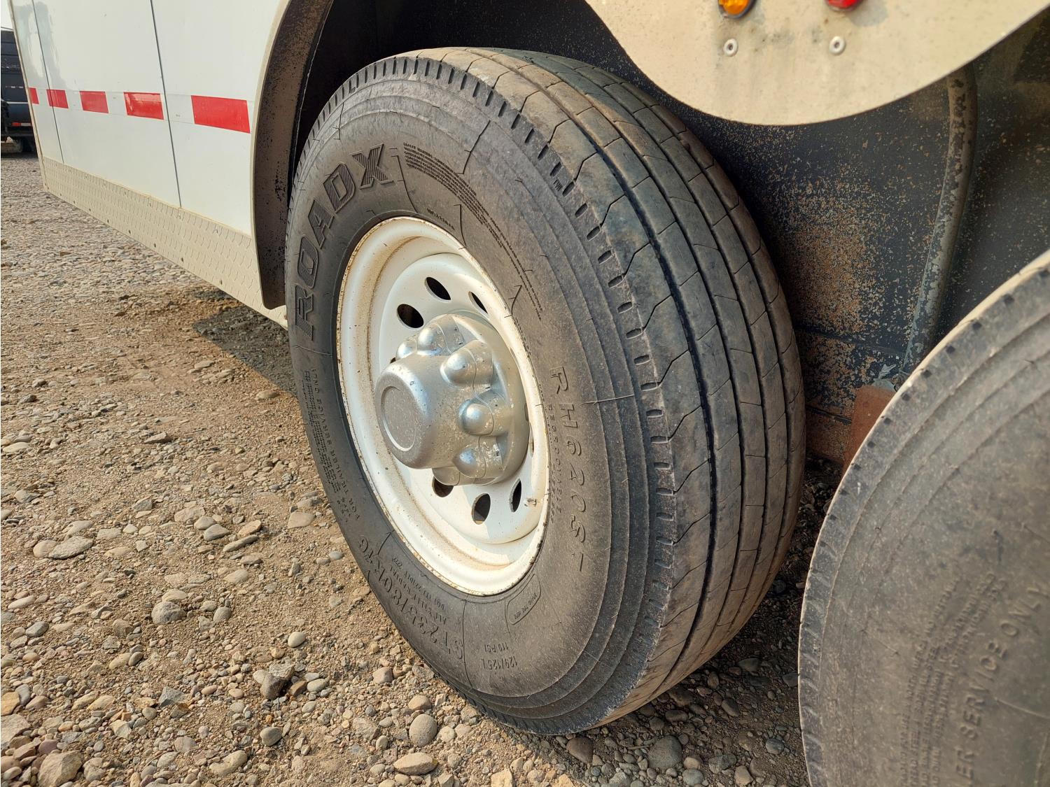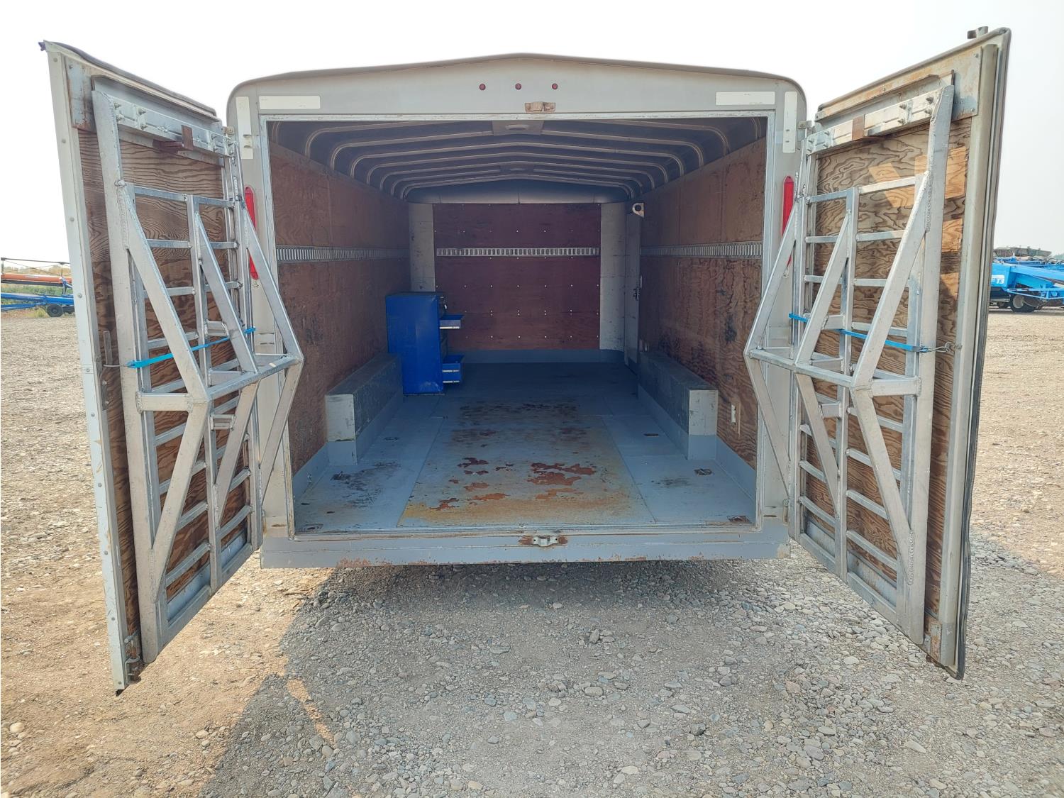 93 inch interior width, 82 inch interior height, ball hitch, side door, barn doors, electric brakes, spring suspension, 7000 lb axles, 235/85R16 tires