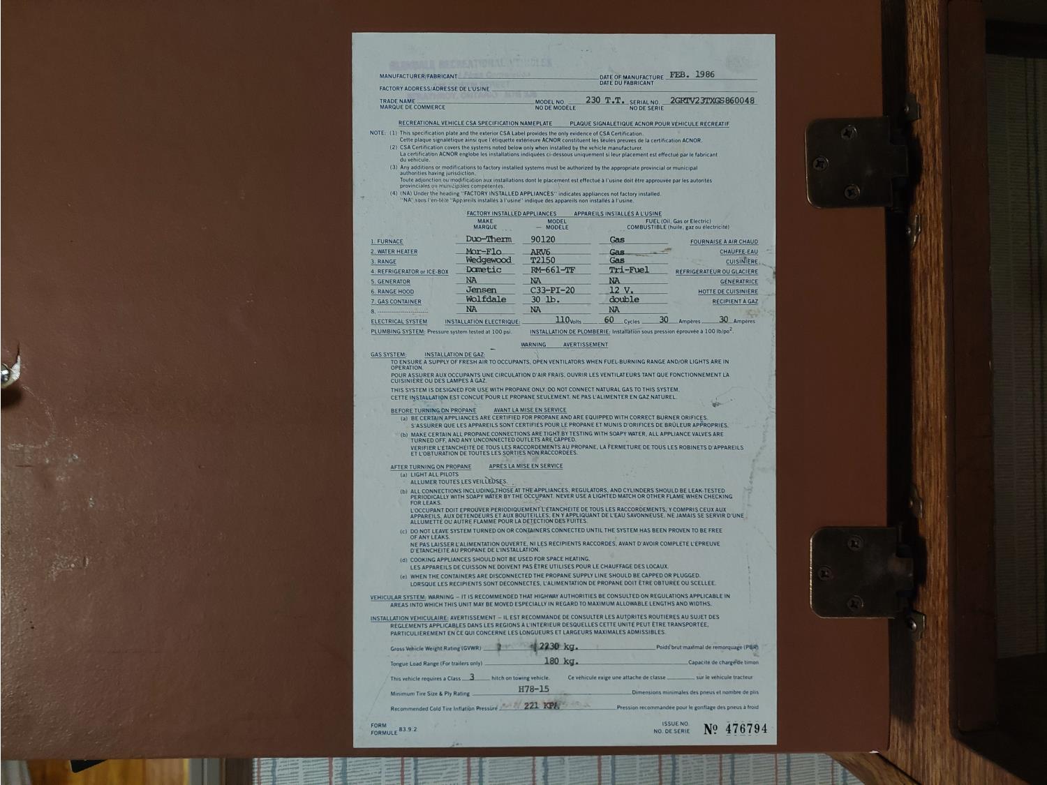 Sleeps 4, stove, fridge, full bath, bunk beds, A/C, electric brakes, 225/75R15 tires
