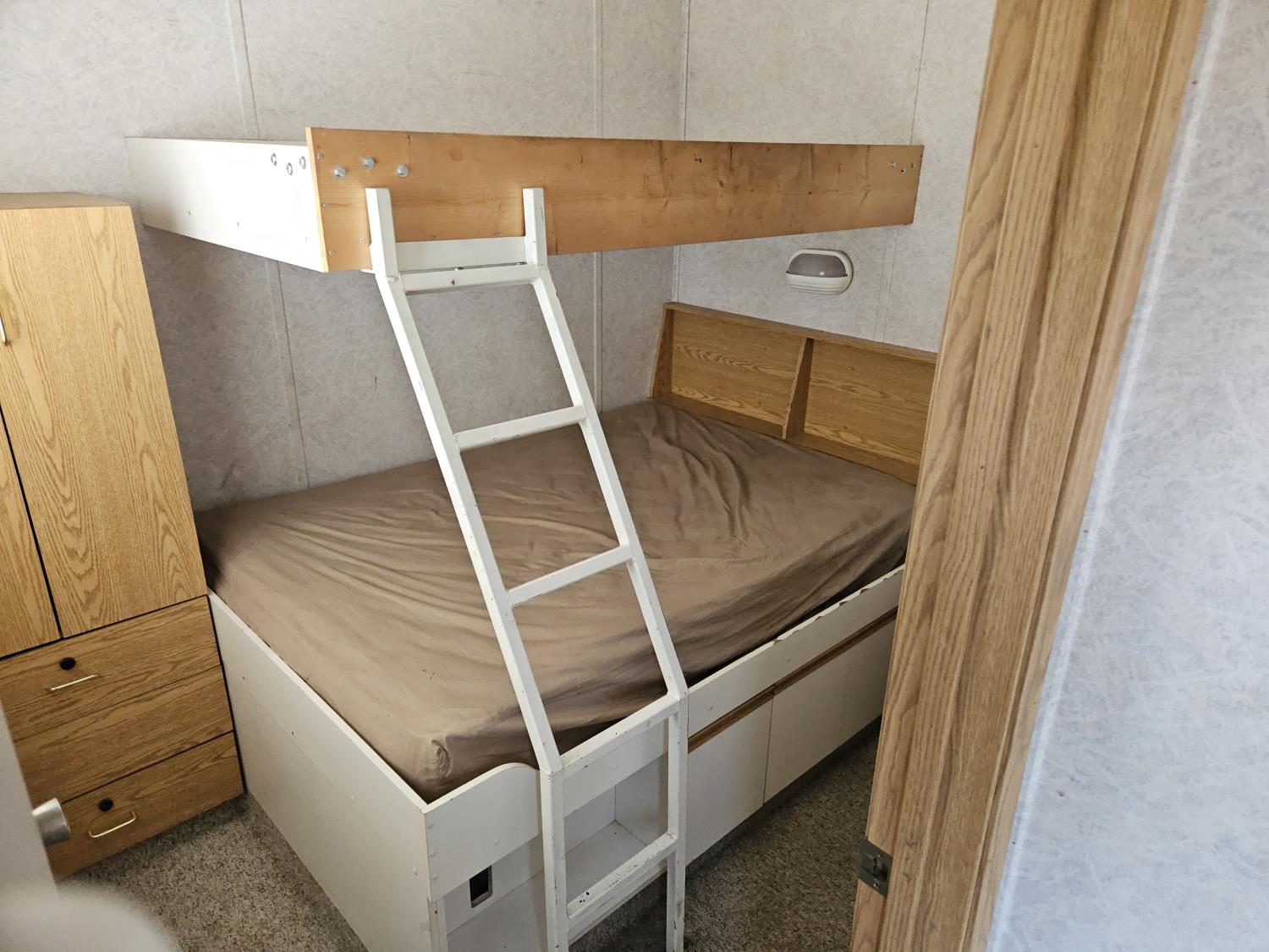 10 ft wide, full kitchen, microwave, stove, oven, fridge, couch, office space, bathroom, bunk beds, furnace, air conditioning, 235/85R16