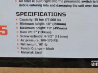 77,000 lb Professional Air Hydraulic Axle Jack, Manual & Pneumatic Control, Double Springs, 19” Lift Height