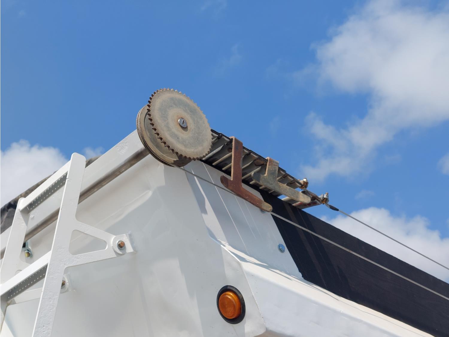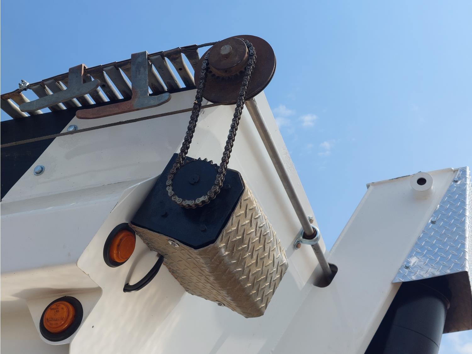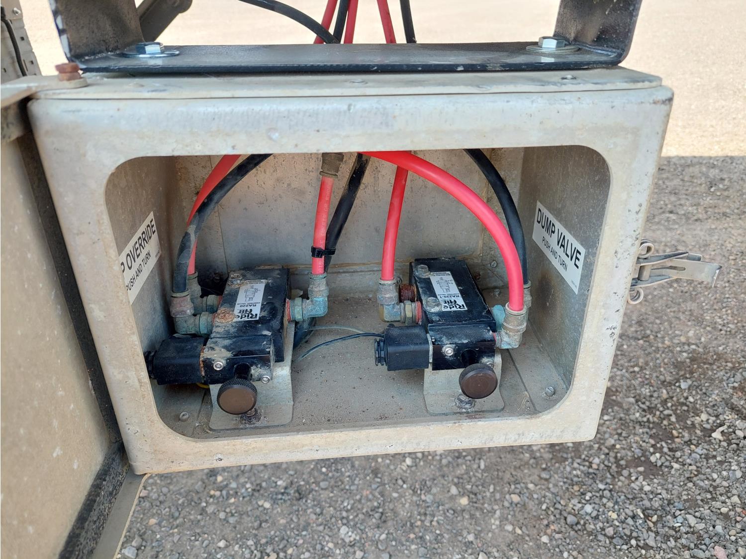 8 ft 4 inch box width, 54 inch side wall height, electric roll tarp, air brakes, air ride suspension, 22,000 lb axles, 11R22.5 tires