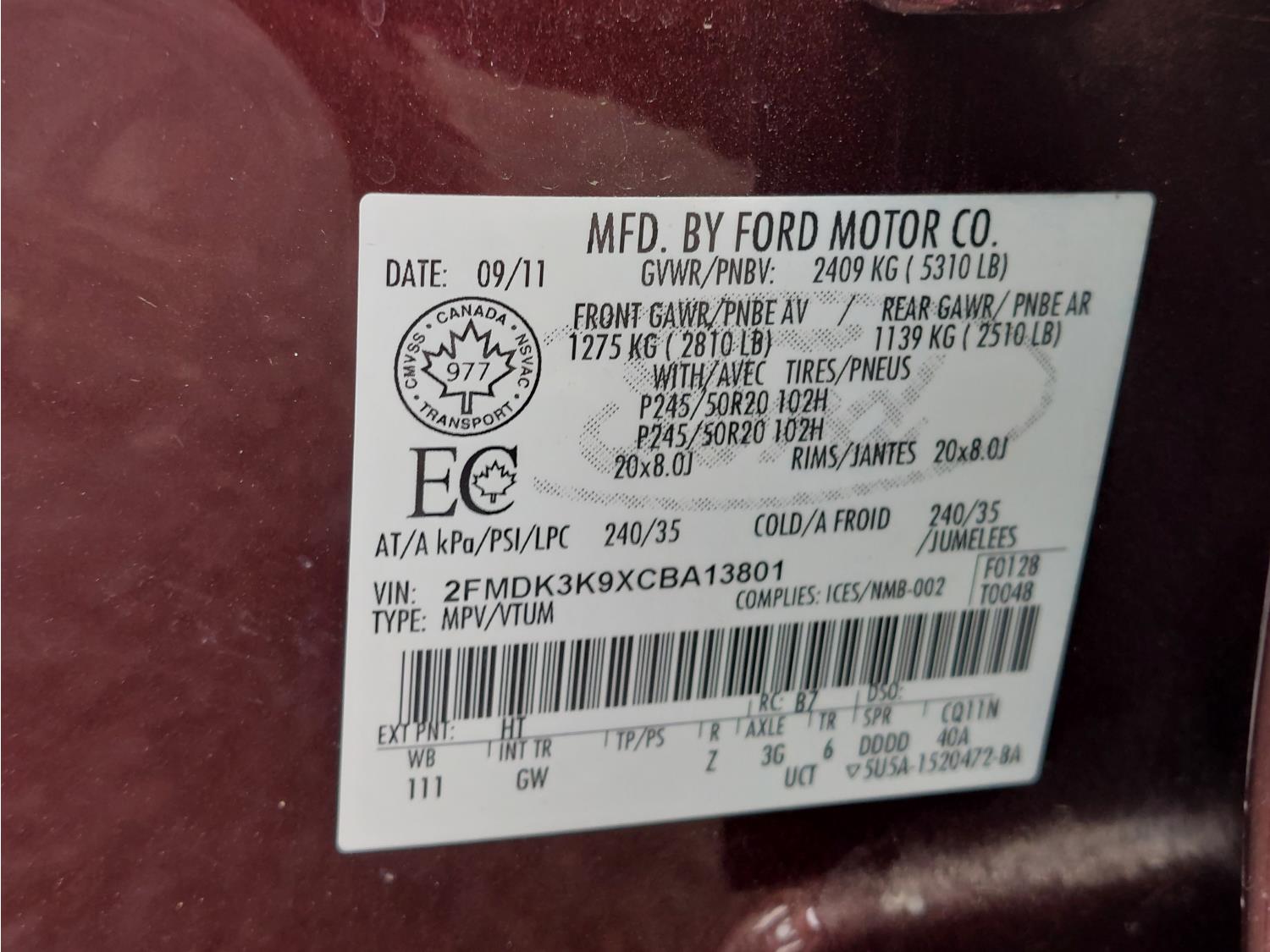 - 2FMDK3K9XCBA13801