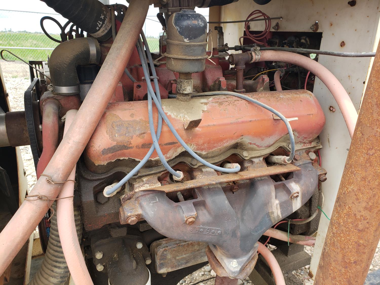 V8 gas engine, 5 inch inlet, 8 inch outlet, tires 3.25-15