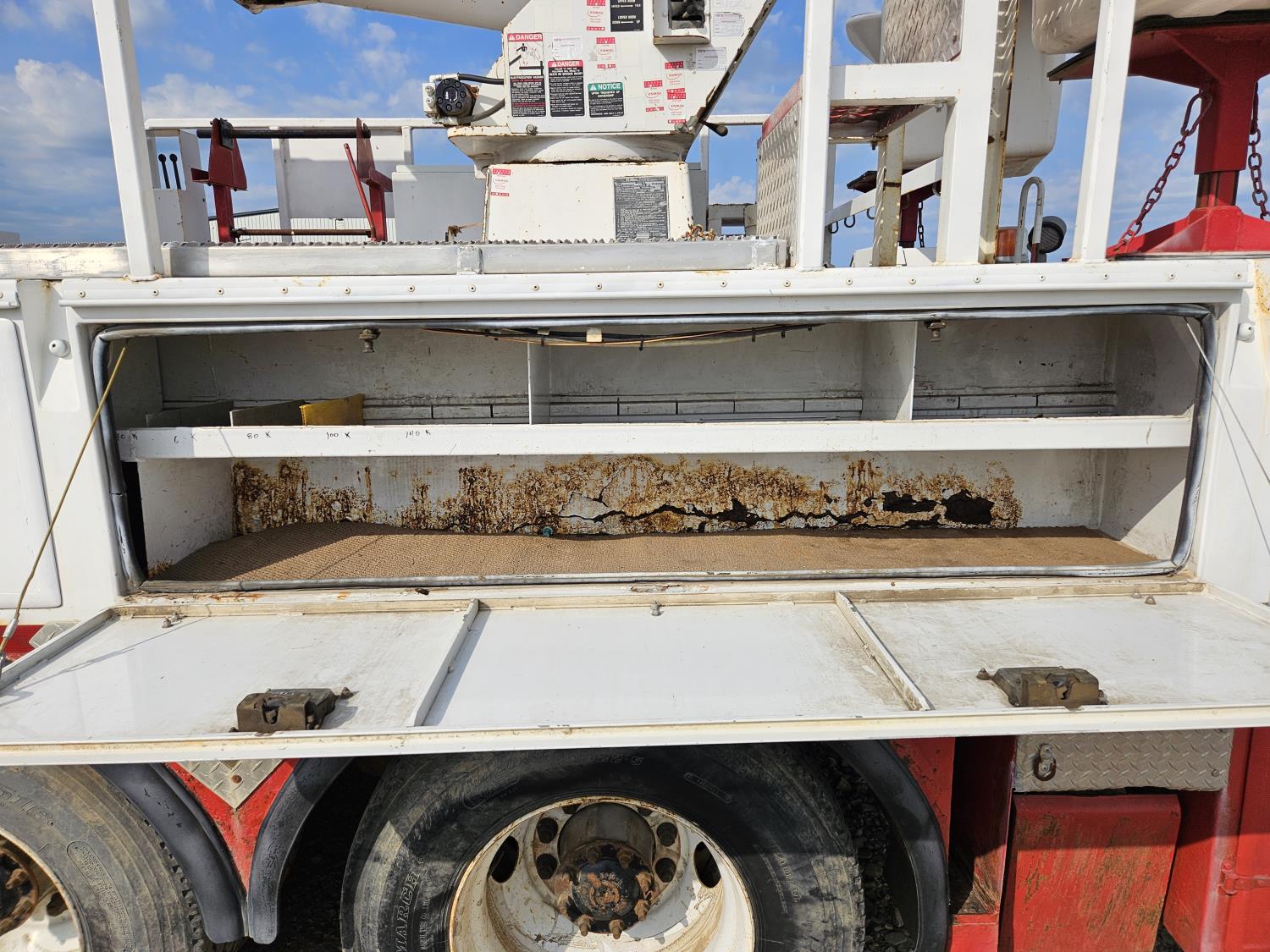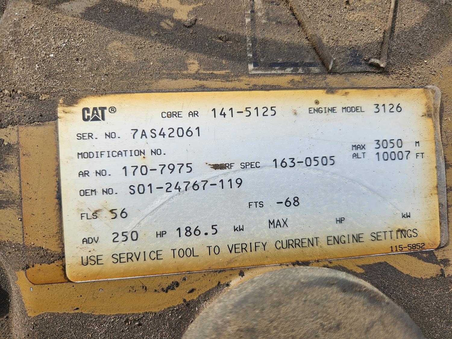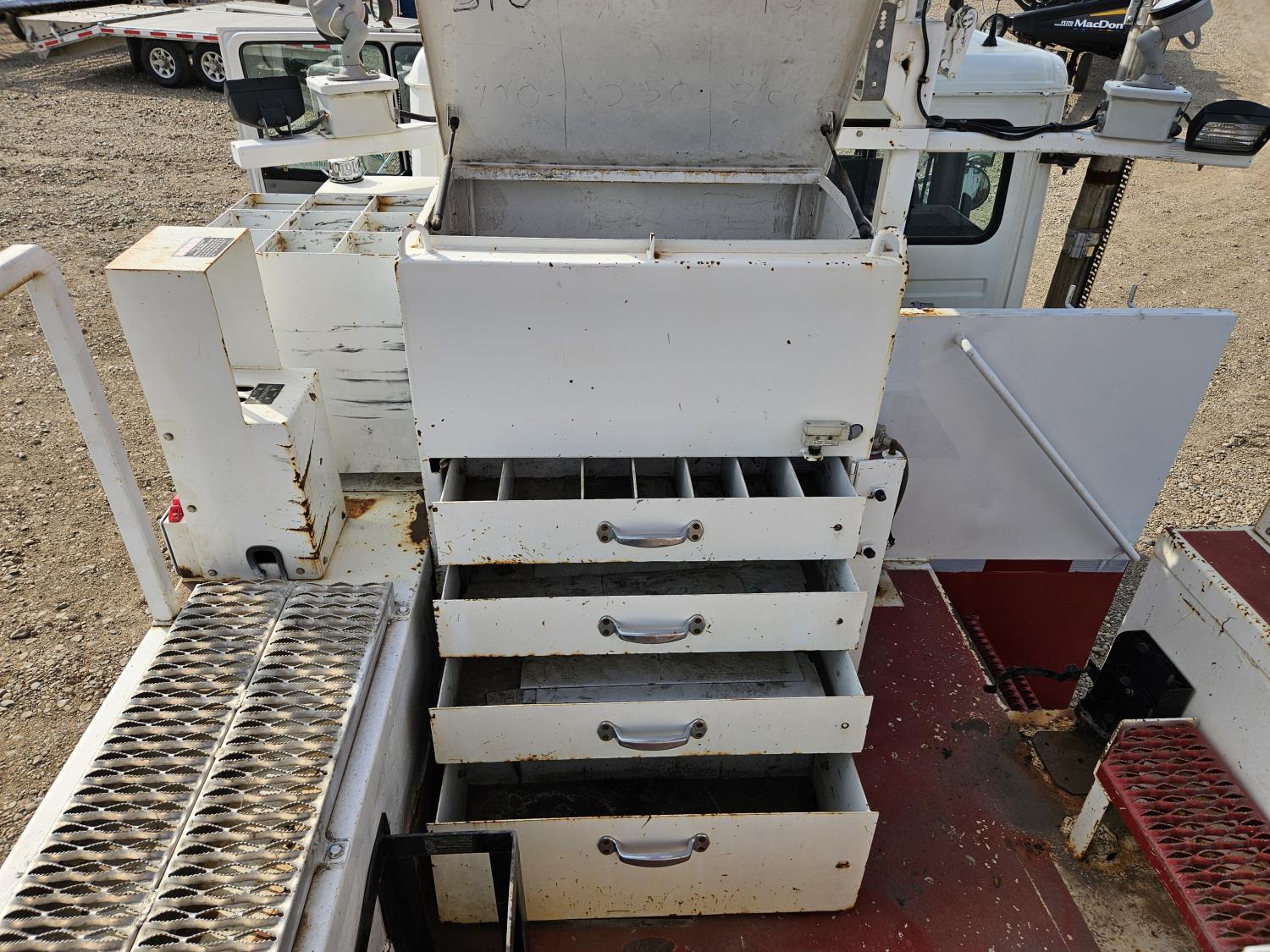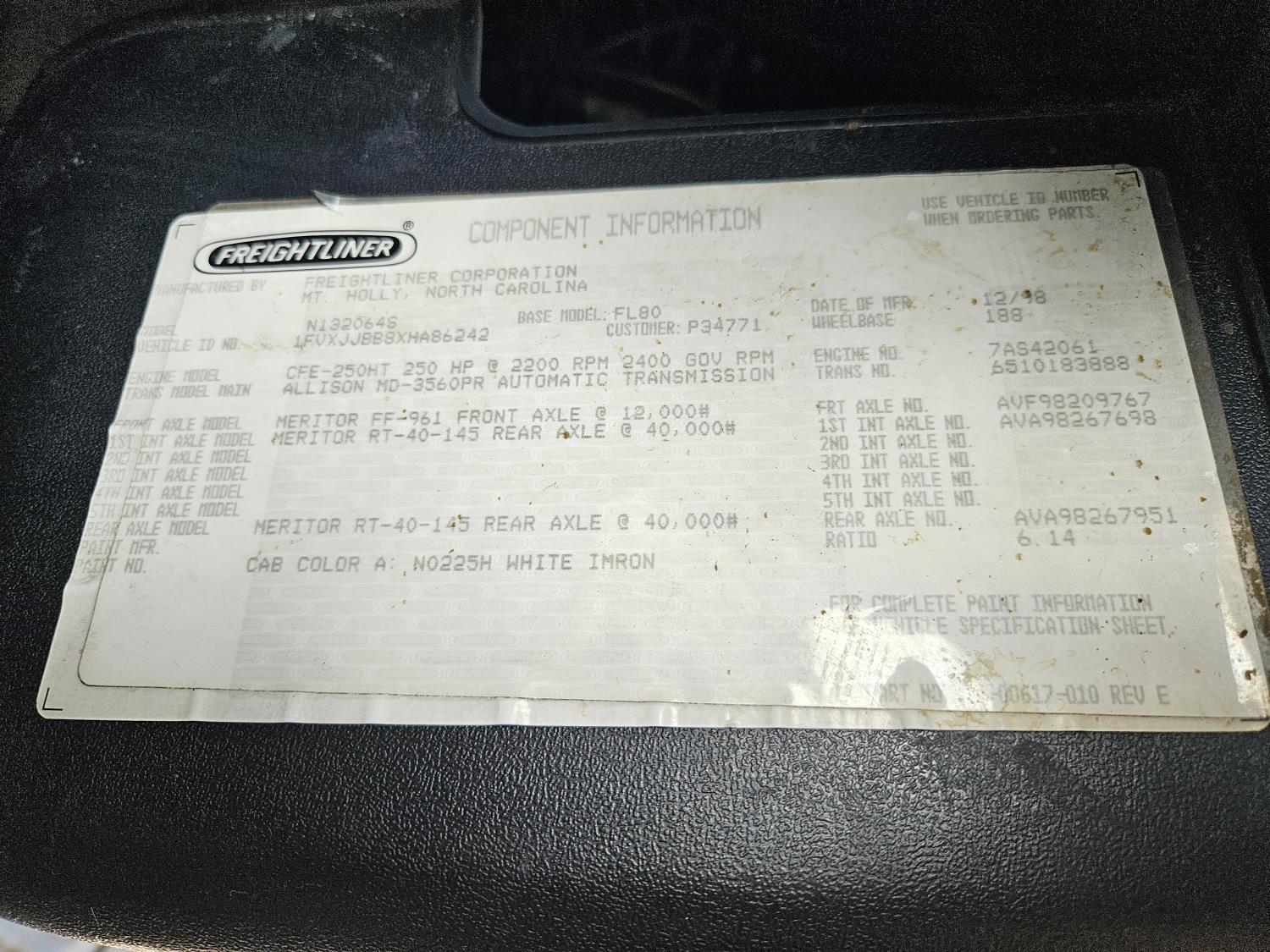 Caterpillar 3126 7.2 L 6 cylinder 250 HP diesel engine, Allison MD-3560PR 6 speed automatic transmission, A/C, cruise control, air ride driver seat, radio, CB radio, aluminum tool boxes, 12,000 lb front axle, 40,000 lb rear axles, 188 inch WB, 6.14 differential ratio, 11R22.5 tires, 22 inch x 28 inch x 42 inch buckets