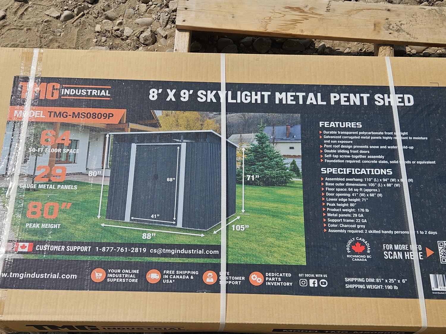 57 TMG Industrial MS0809P 8 Ft X 9 Ft Galvanized Metal Pent Shed W/Skylight (Unused)