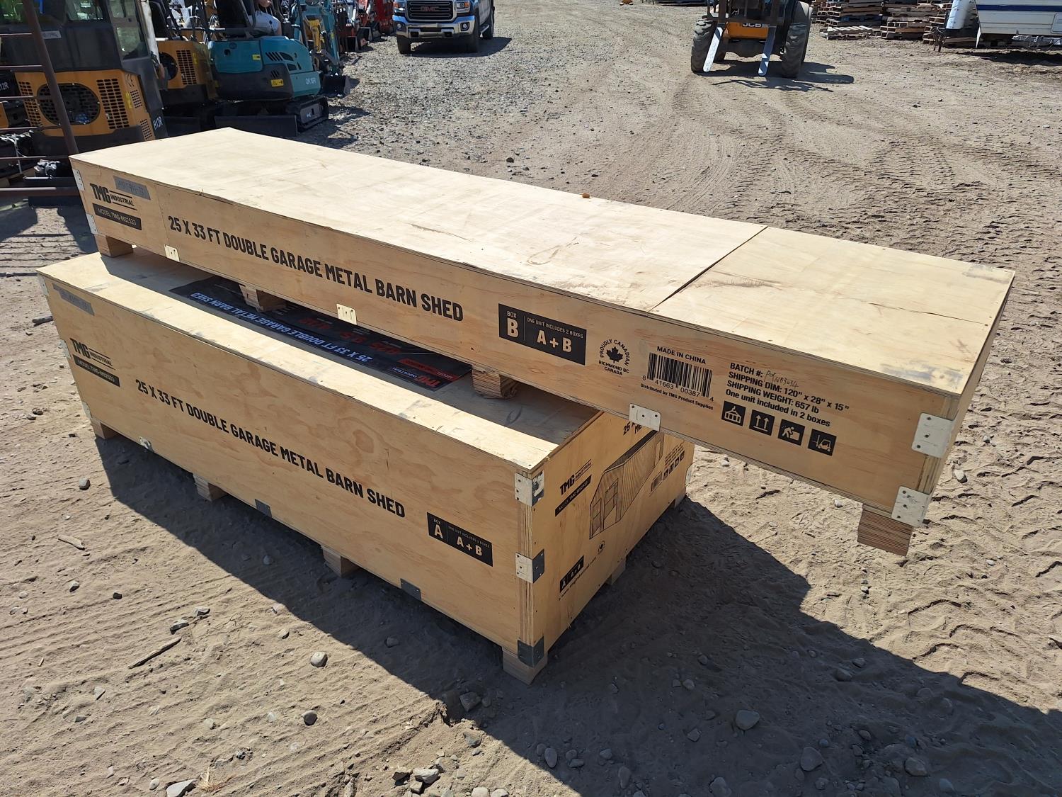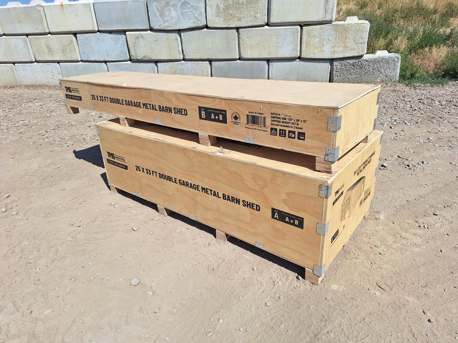 62 TMG Industrial TMG-MS2533 25 Ft X 33 Ft Double Garage Metal Barn Shed with Side Entry Door (Unused)