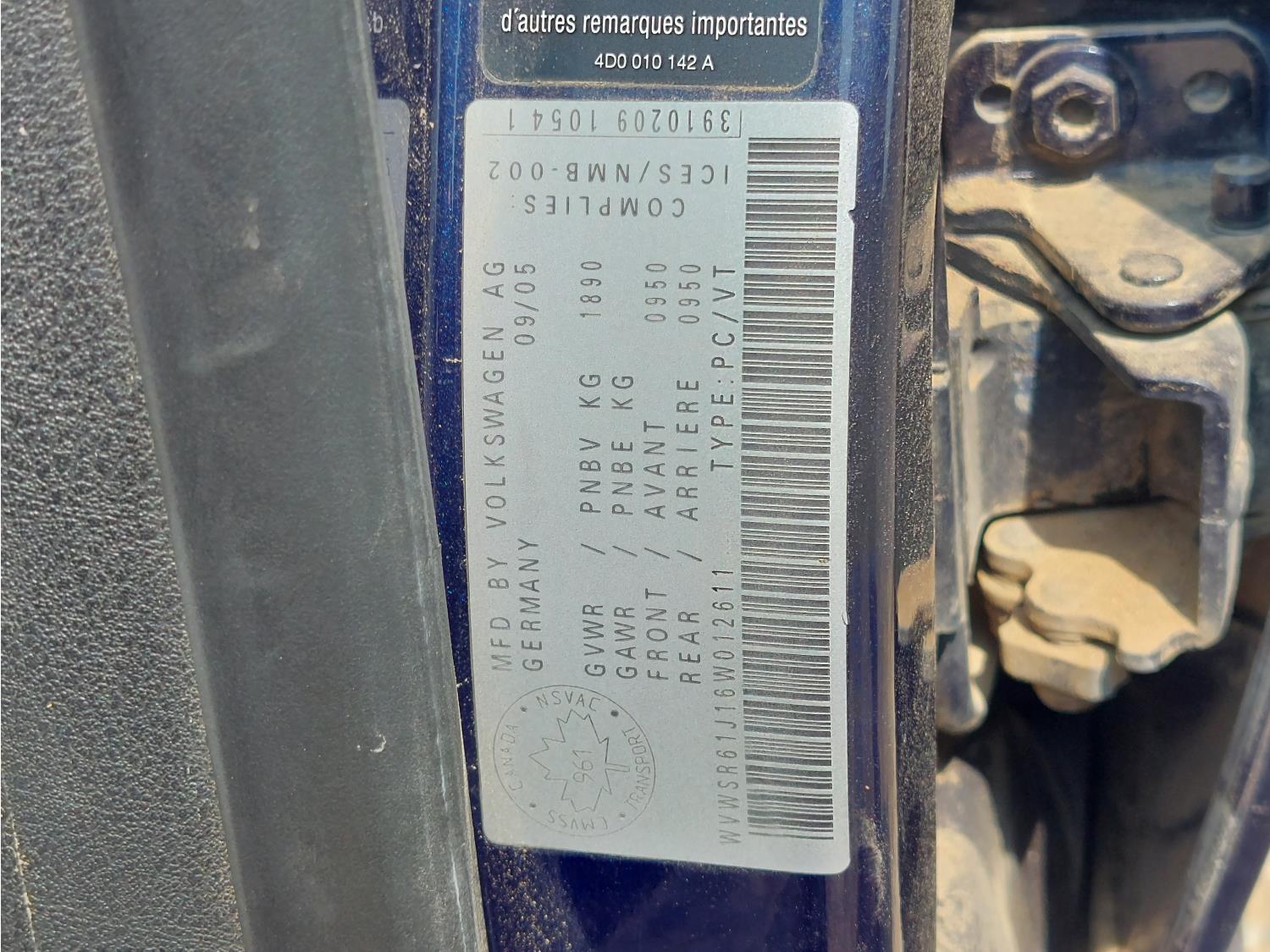 - WVWSR61J16W012611