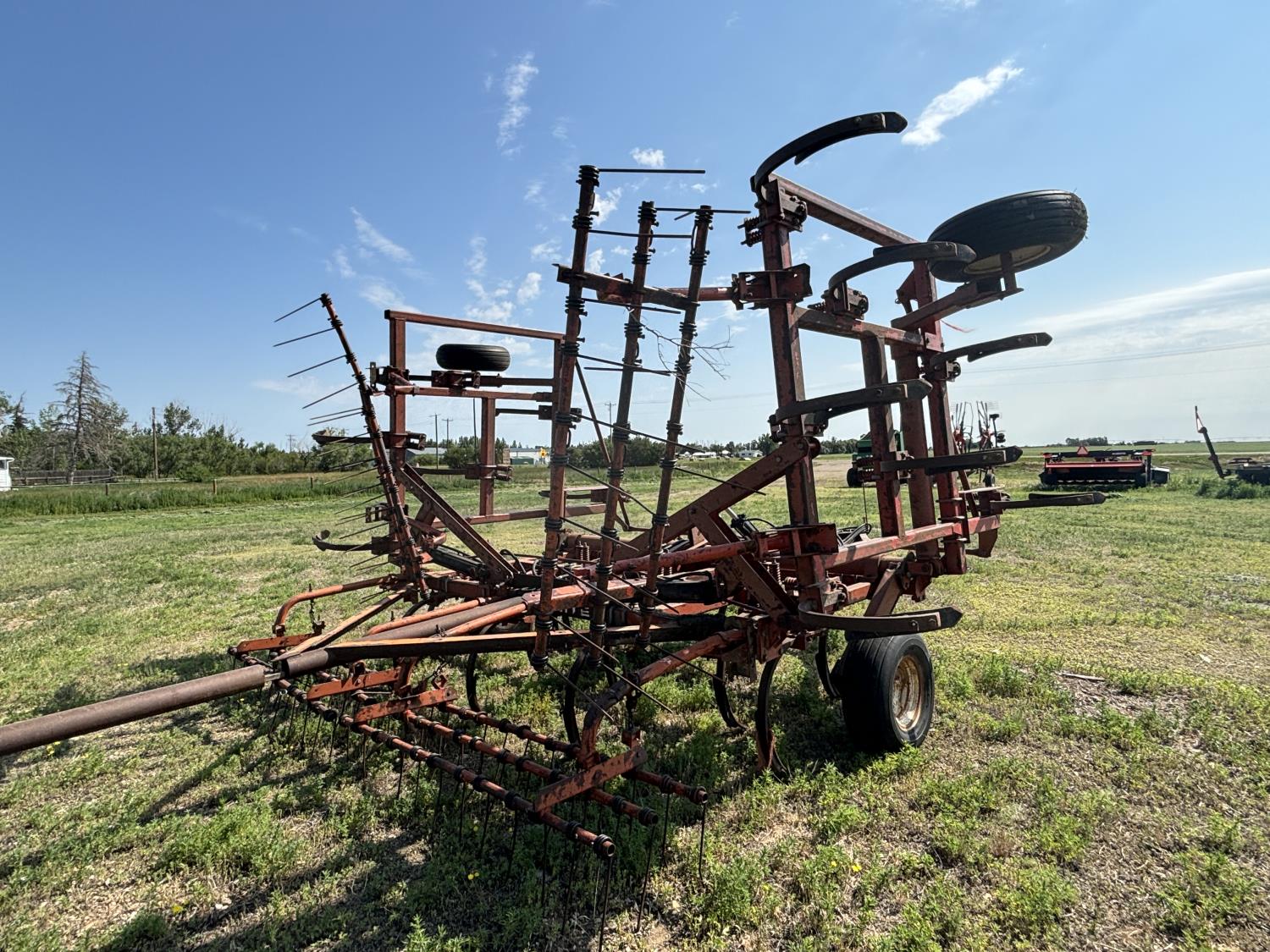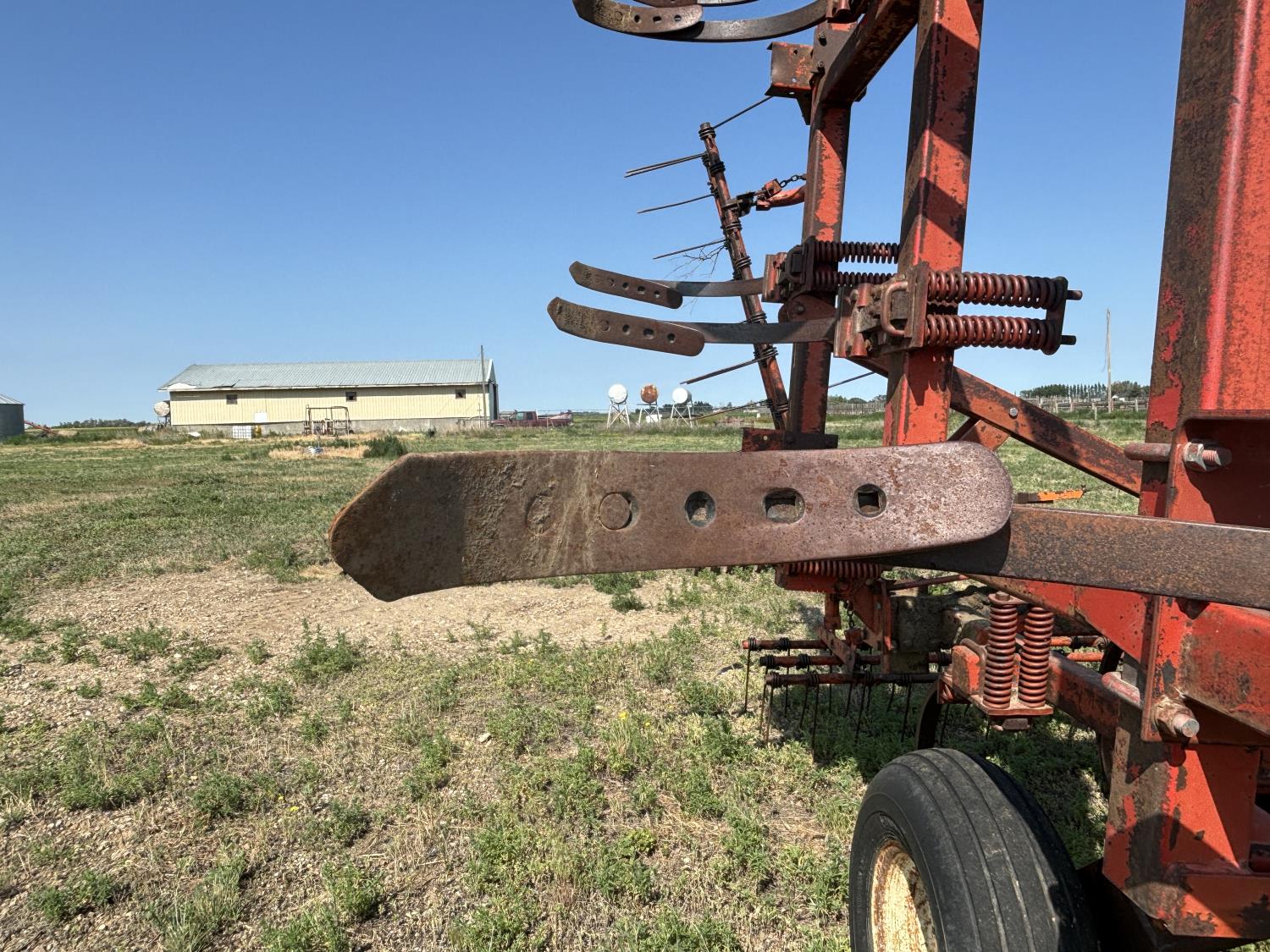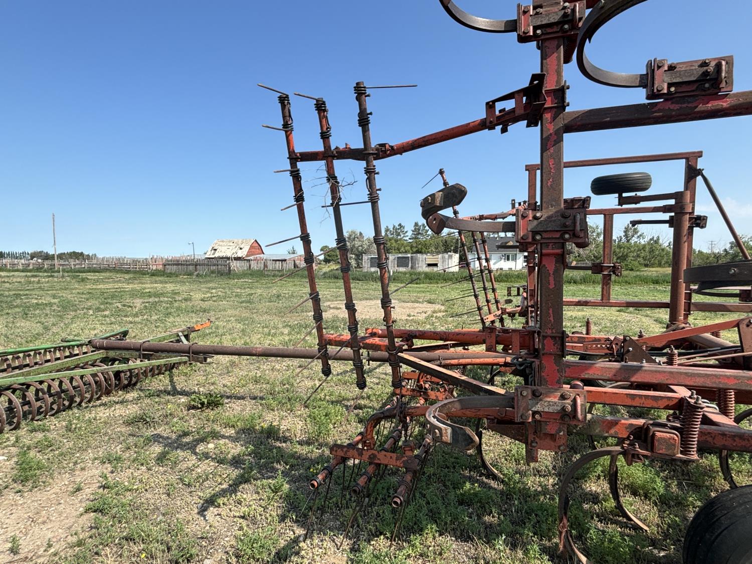 12 inch spacing, spikes, spring tooth harrows, rear hitch, 14 inch tines, 11L-15 tires