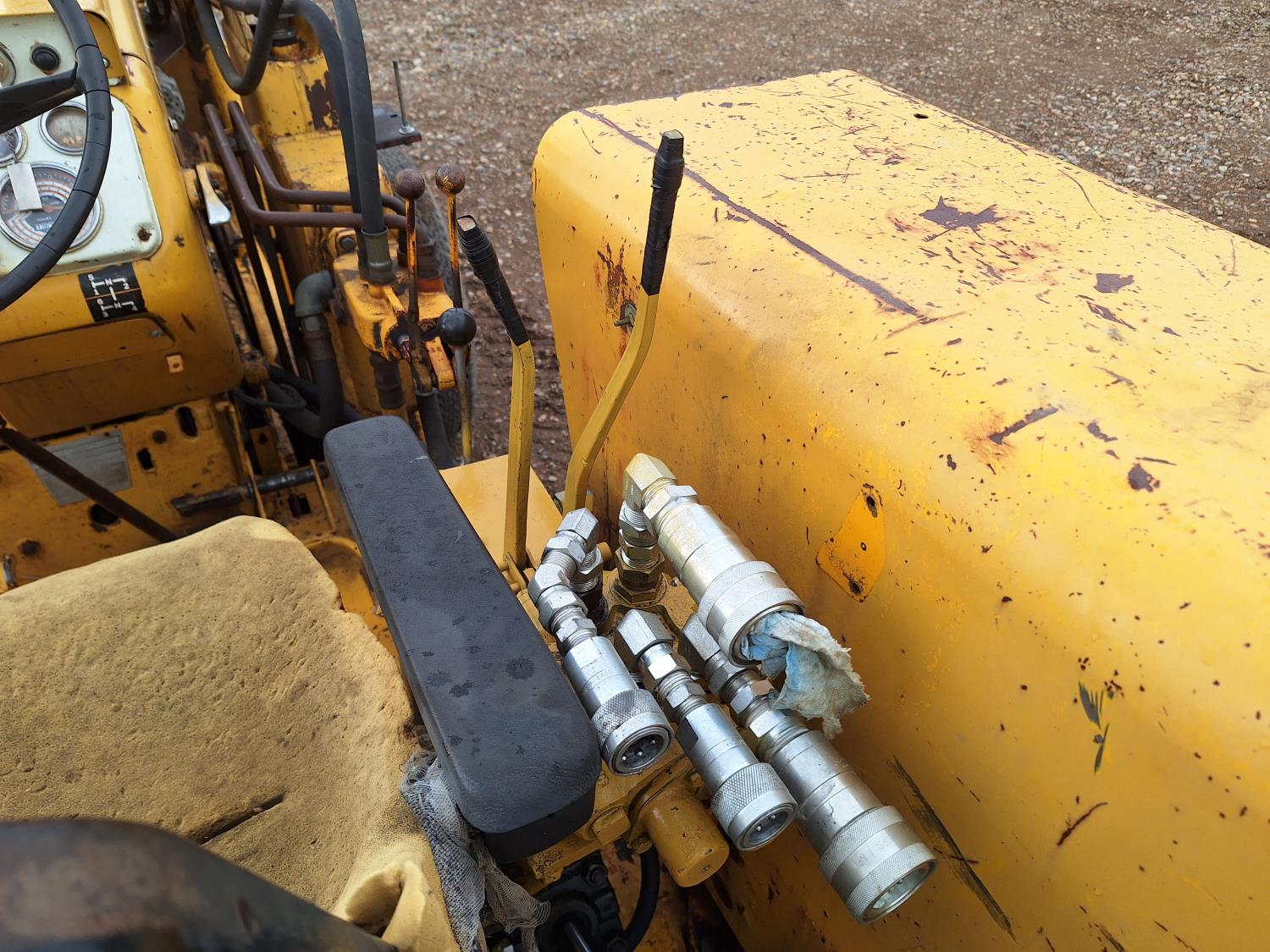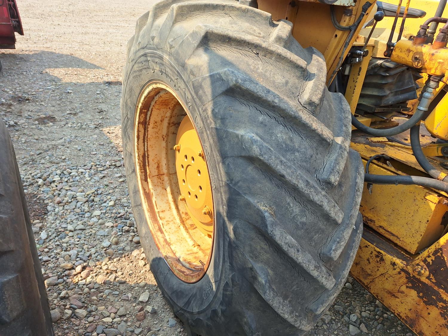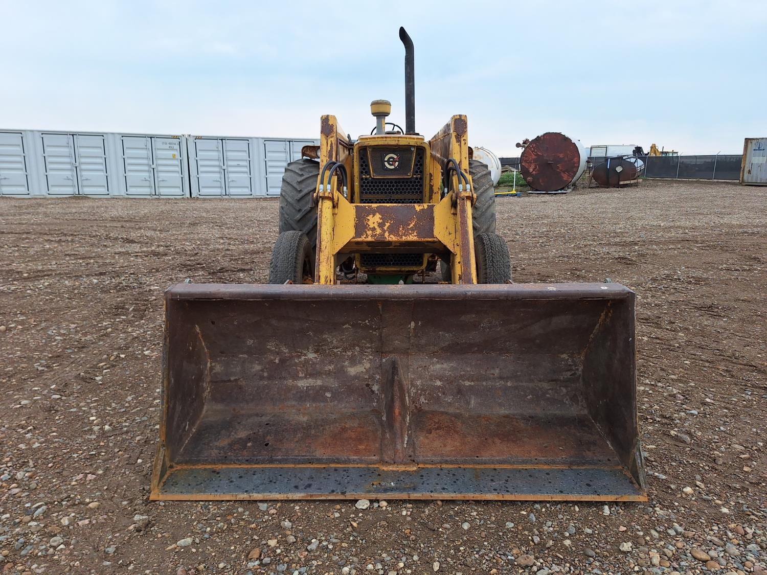 Loader, 84 inch bucket, 6 cylinder 78 HP, diesel engine, 6 speed manual transmission, open station platform, 3 point hitch, 1 rear hydraulic outlets, 8.25-20 front tires, 18.4-34 rear tires