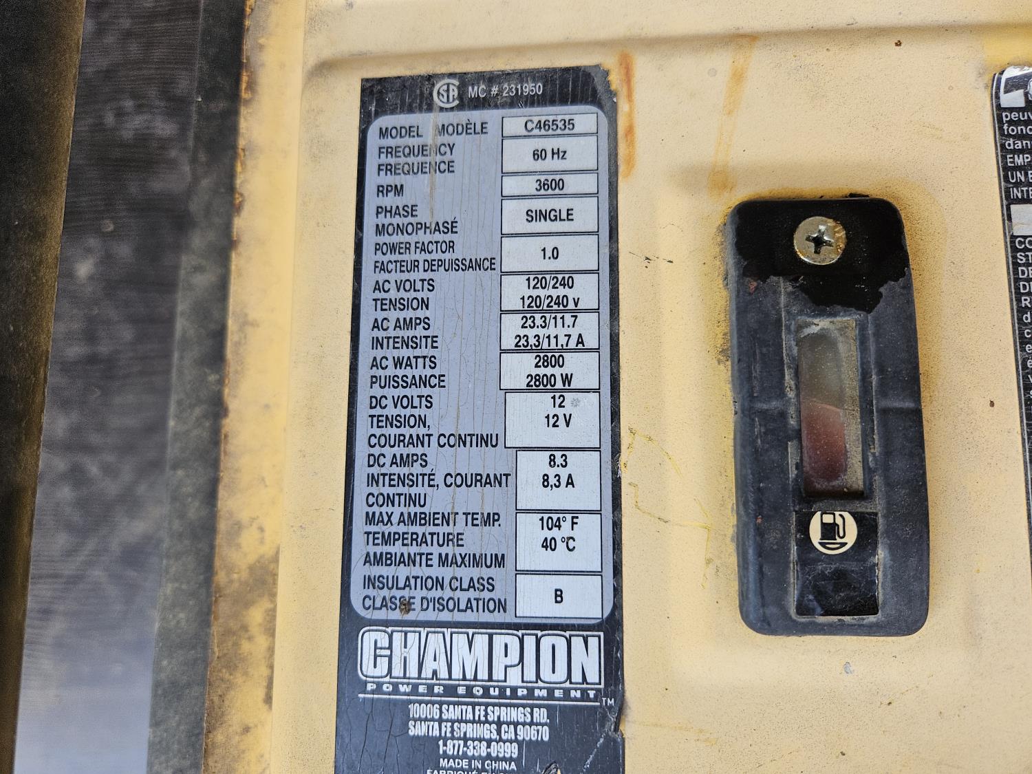 1332 2006 Champion C46535 Generator