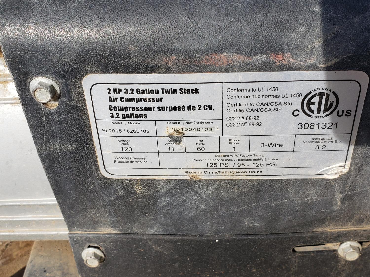1382 5 HP Honda Gas Motor, 2 HP 3.2 Gallon Air Compressor