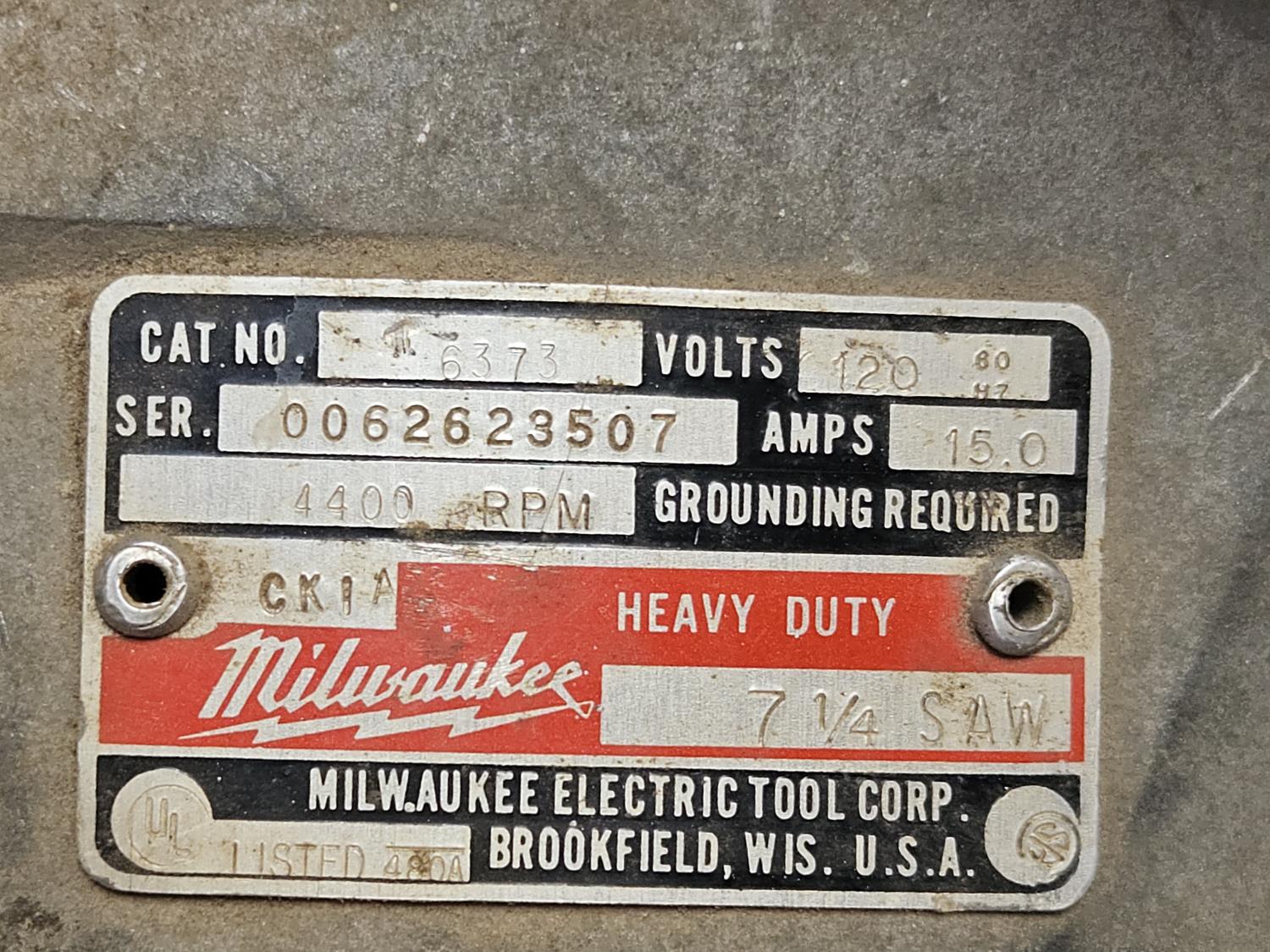 1218 Milwaukee 6373 Heavy Duty 7.25 Inch Saw
