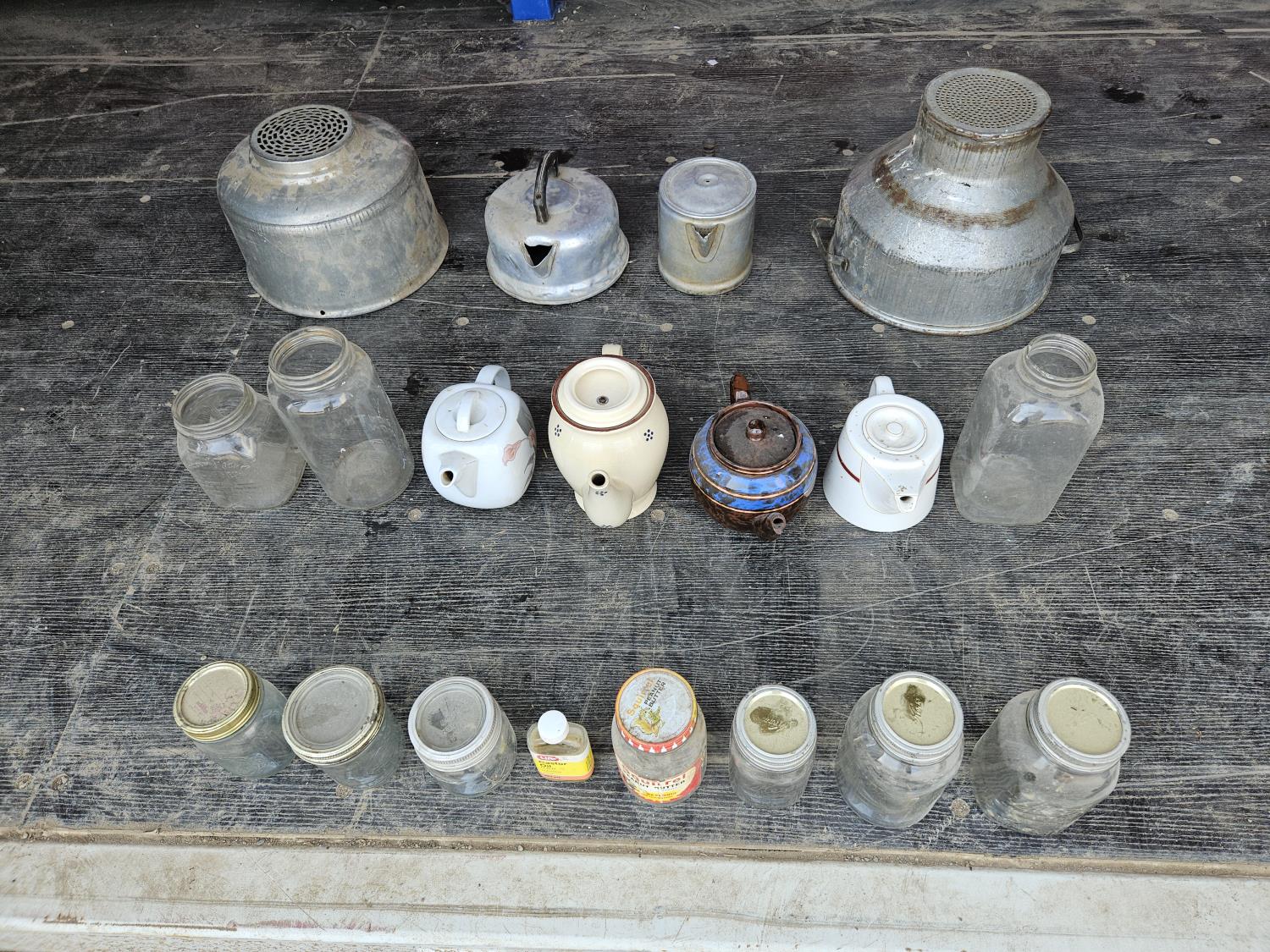 1024 Qty of (11) Jars W/ (6) Tea Pots and (2) Sieves