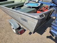 15 HP Evinrude outboard motor, fuel tank, Karavan S/A trailer, 4.80-12 tires, boat cover