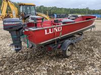 658 16 Ft Lund Aluminum Boat with 20 HP Yamaha Outboard Motor On Trailer