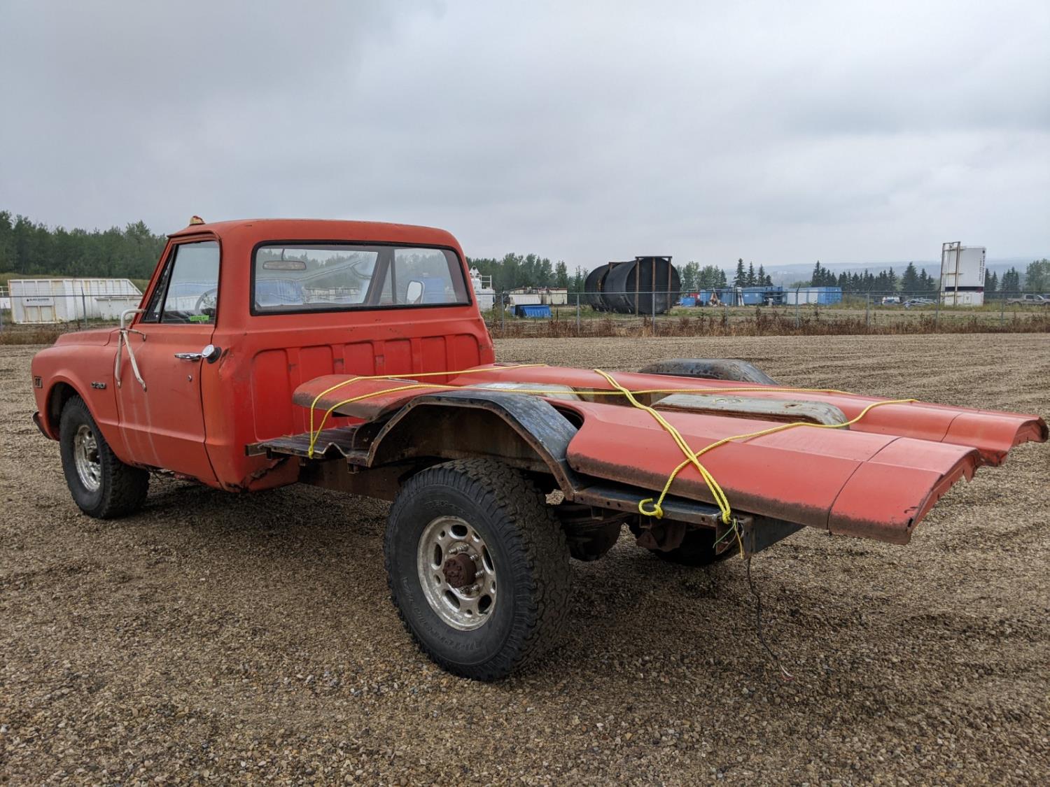 262 cu in, 6 cylinder, gas, 4 speed manual transmission, OEM GM mag rims, comes with extra parts: (4) new wheel brake cylinders, new brake flex line, new heater core , 285/75R16 tires