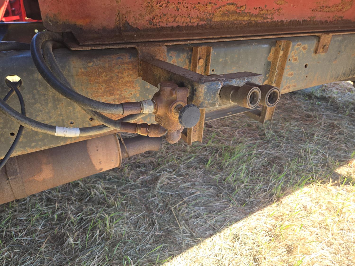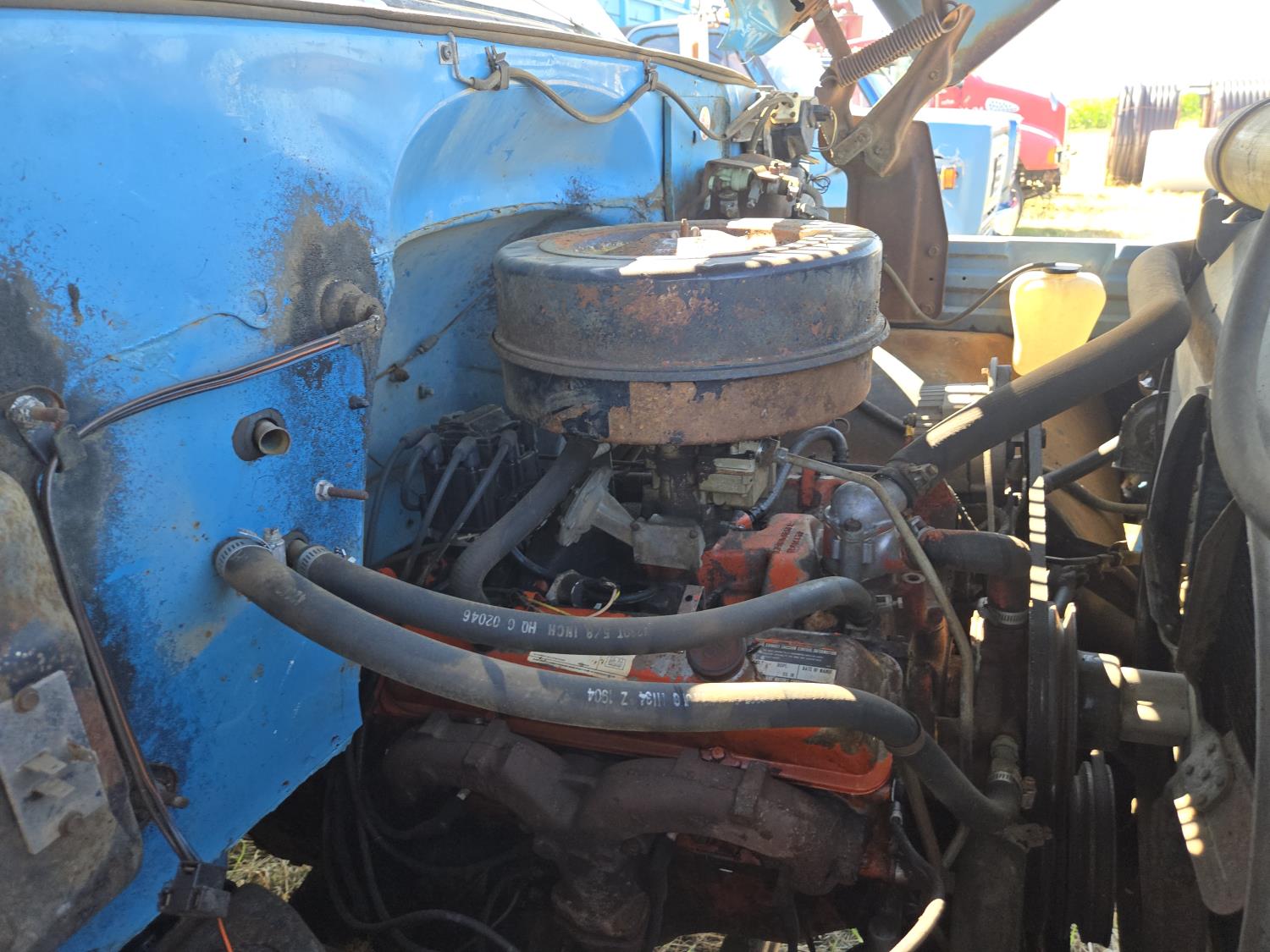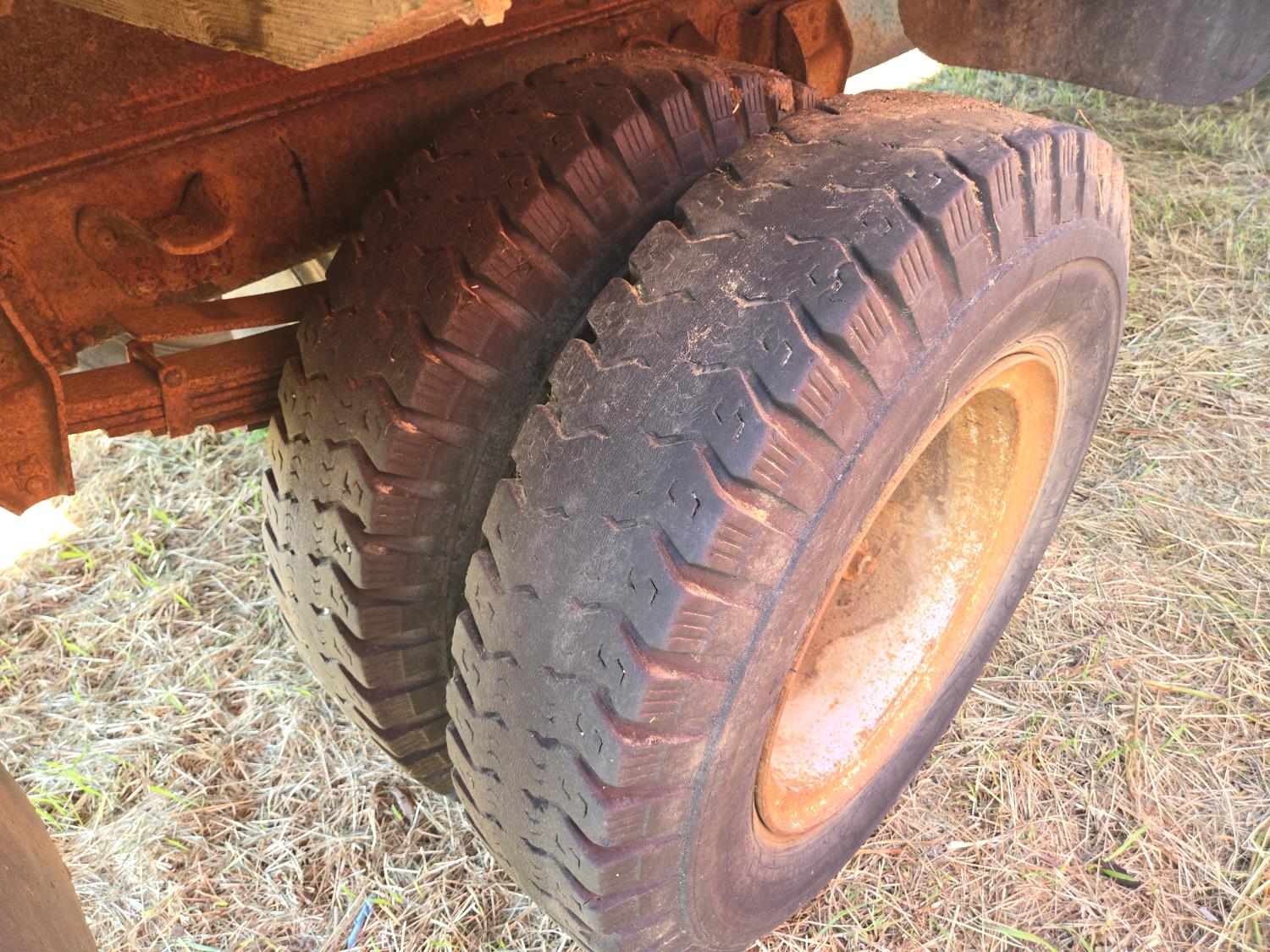 V8 gas engine, manual transmission, hoist, 16' wood box, plumbed for side mount drill fill , 9.00X20 tires