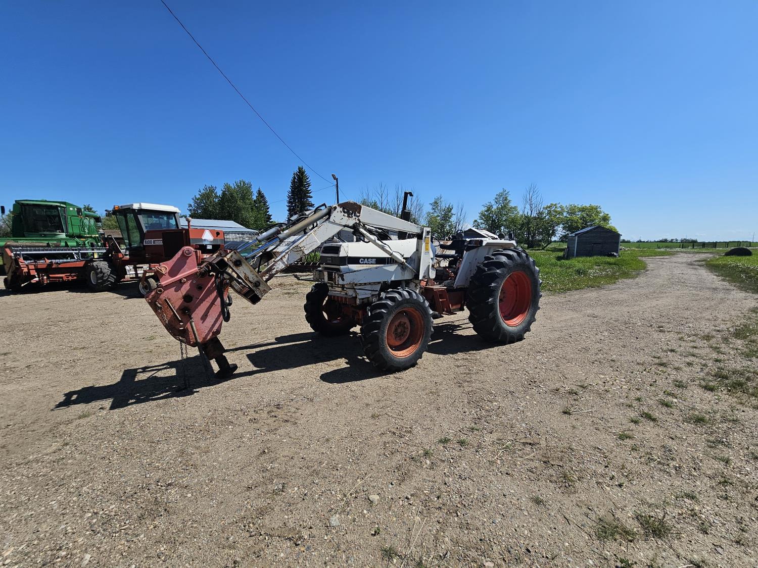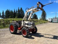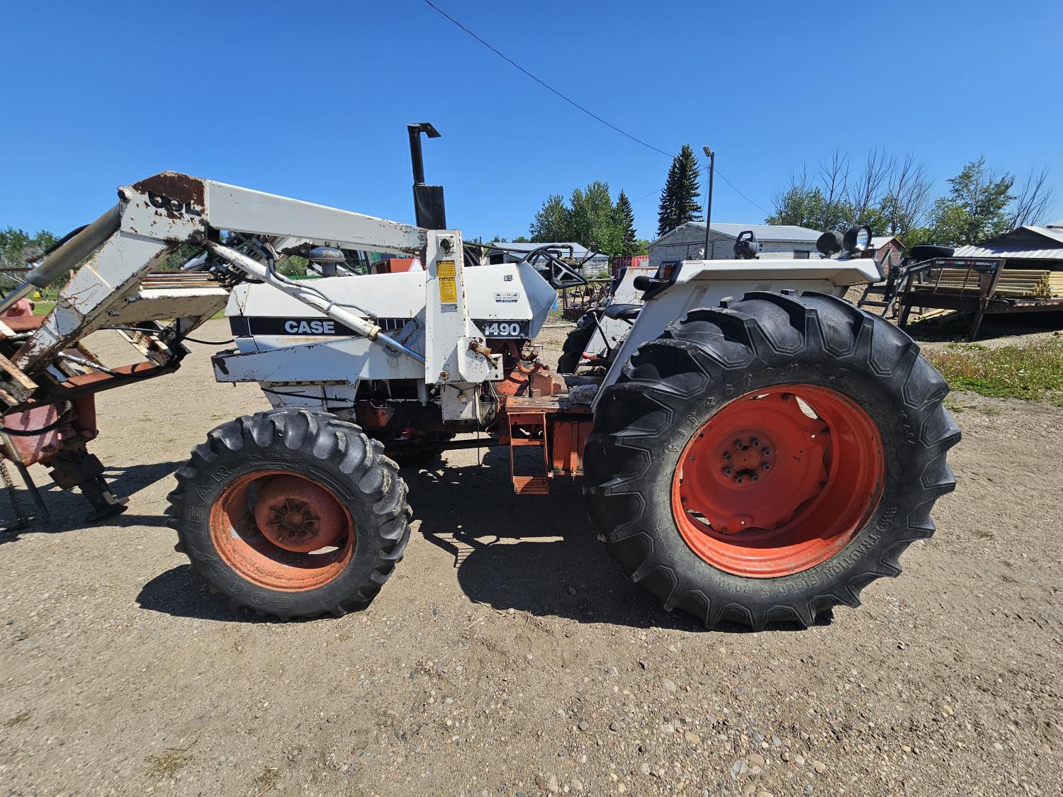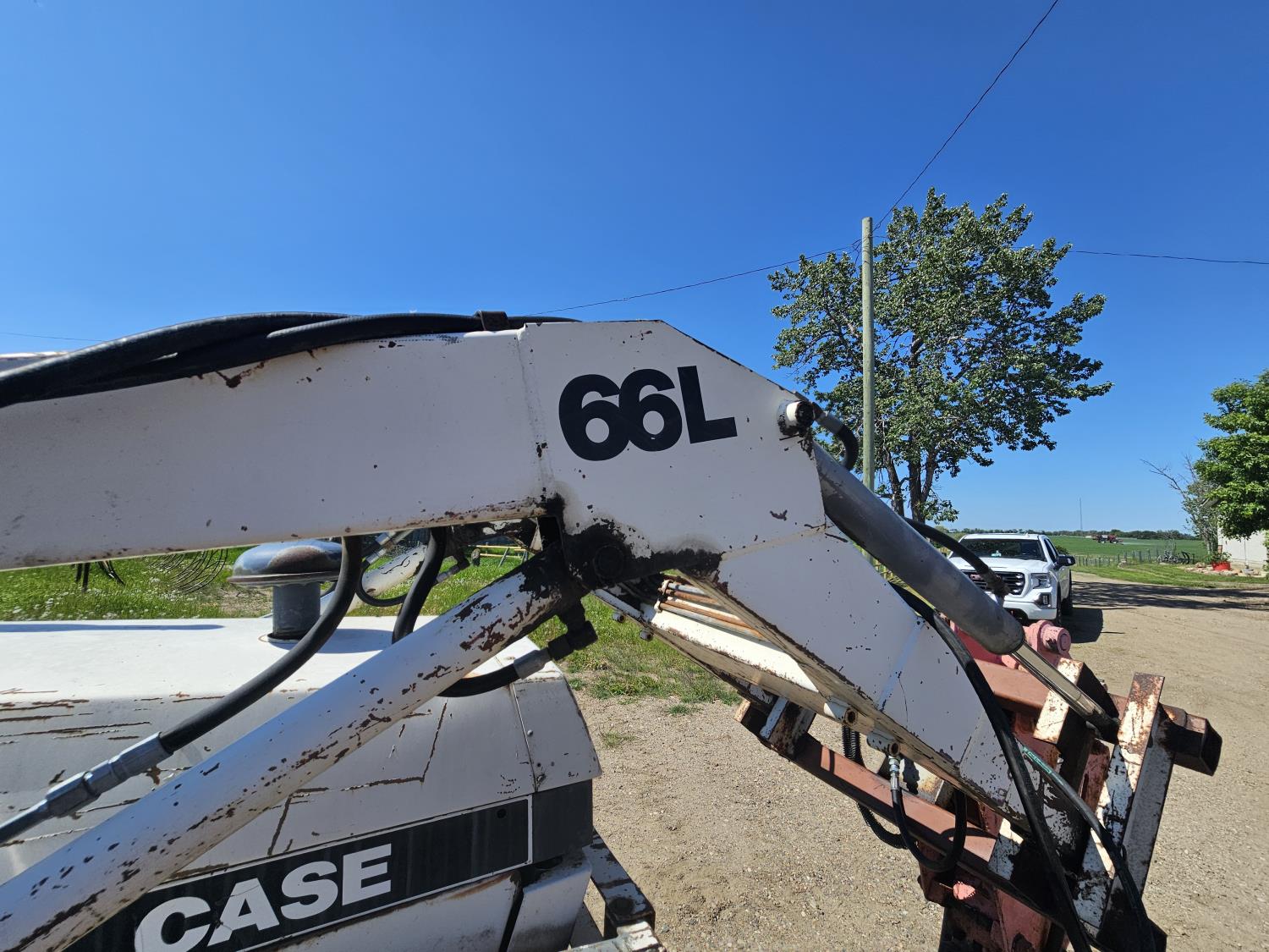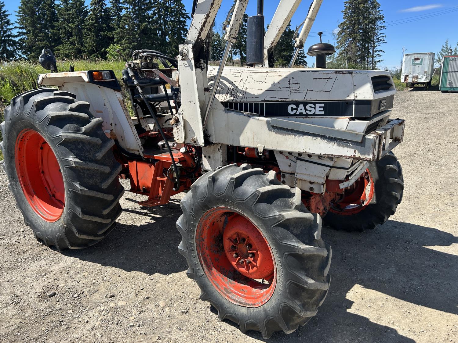 Case 66L loader, bale forks, Case loader mounts, Case 3.6 L 4 cylinder 86 HP, diesel engine, 12 speed manual transmission, open station platform, rear differential lock, 540/1000 PTO, 3 point hitch