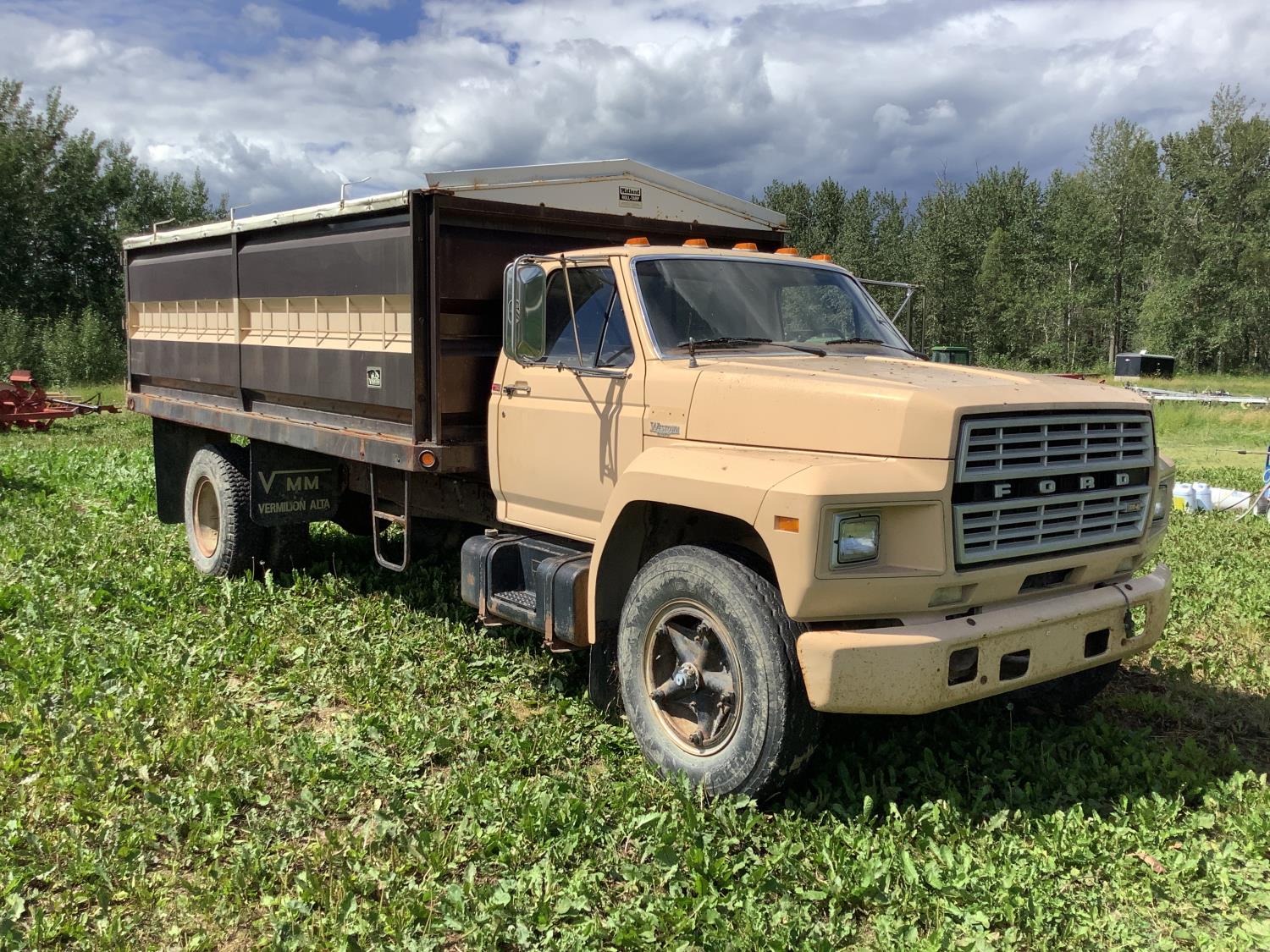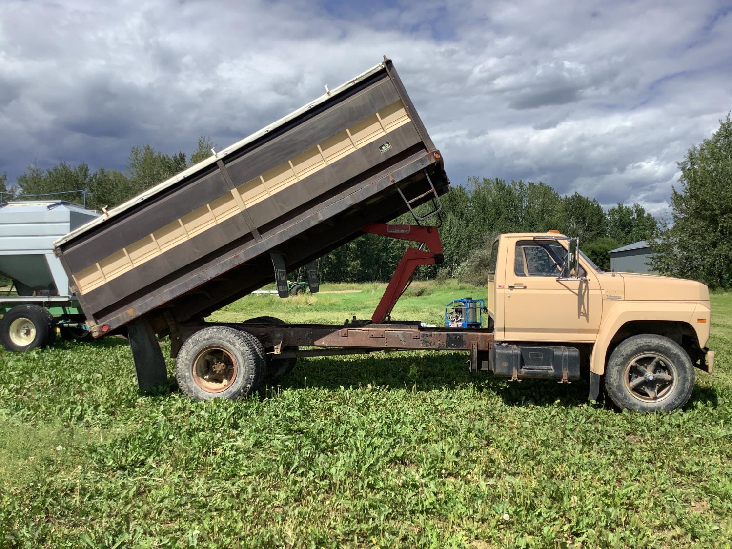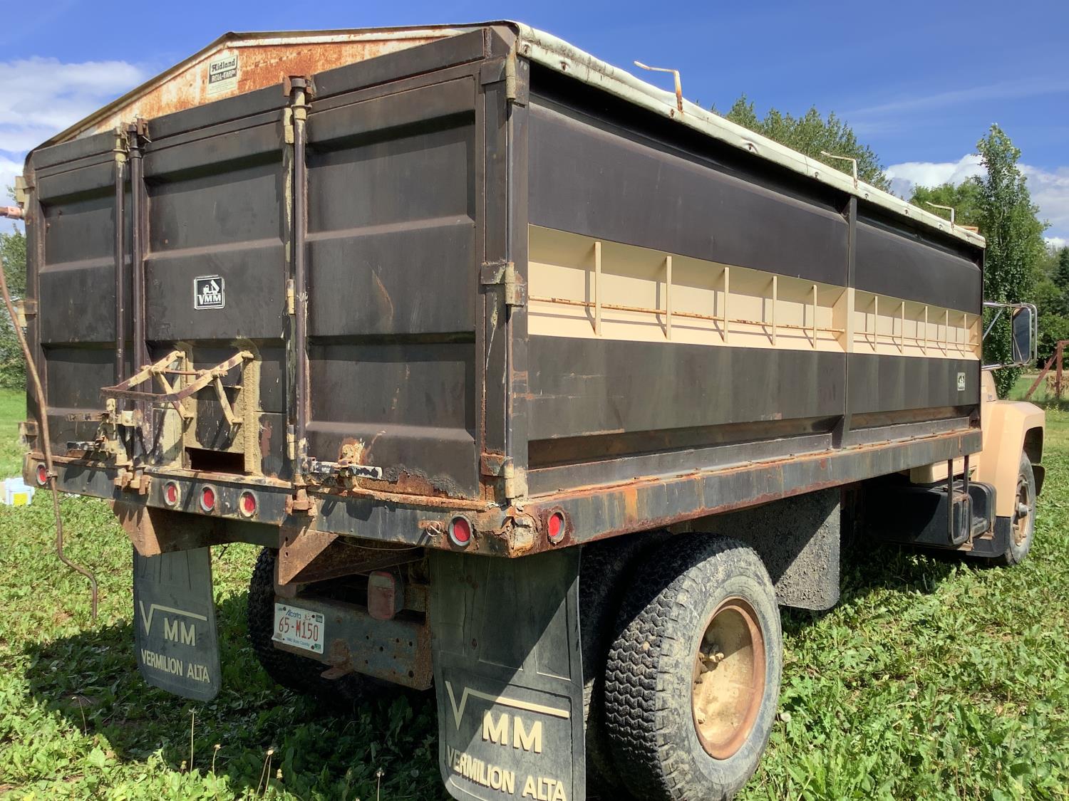 Ford 370 V8 gas engine, 5X2 manual transmission, Nordic hoist, 16' steel box, roll tarp, 10.00-20 tires