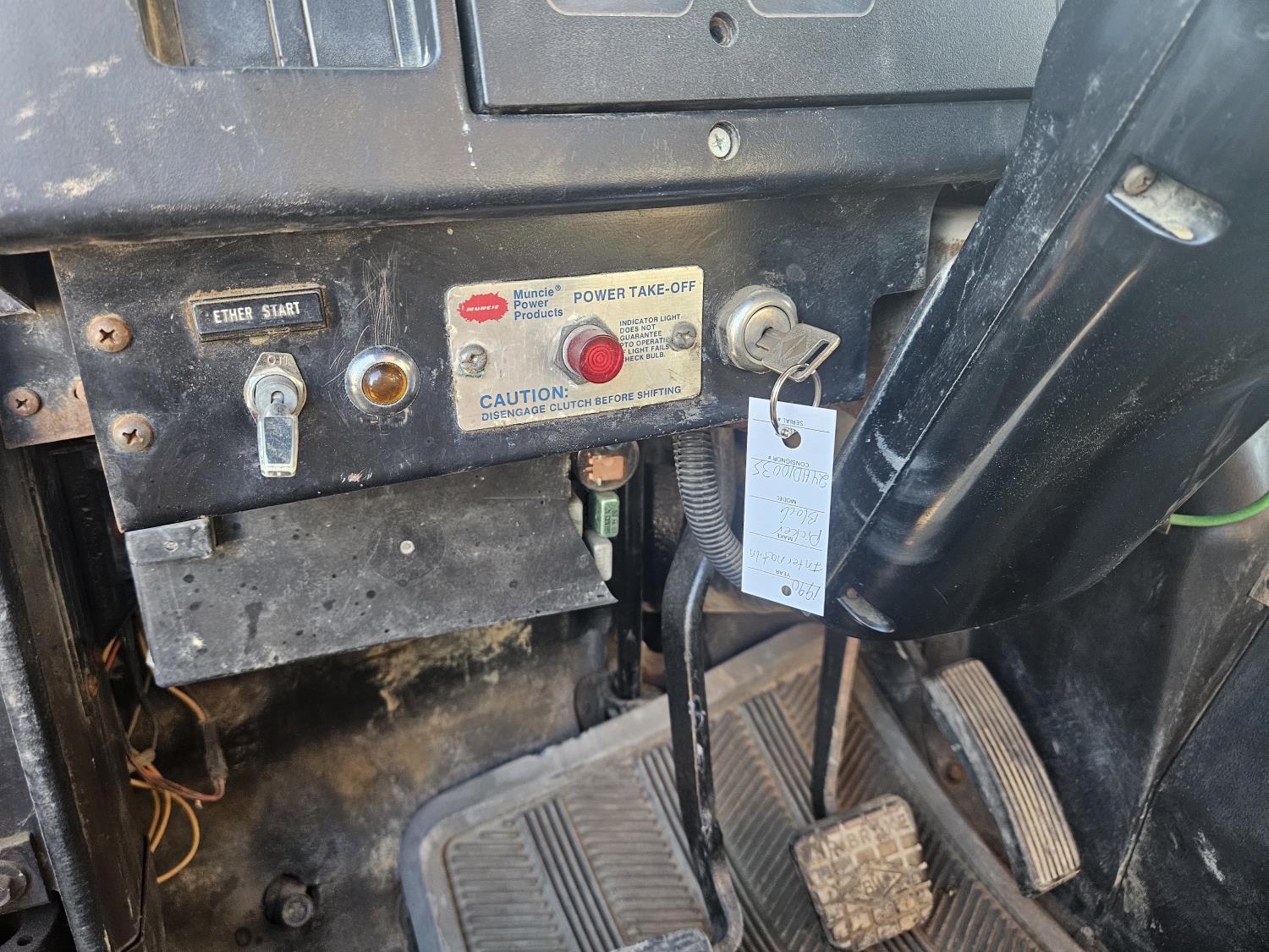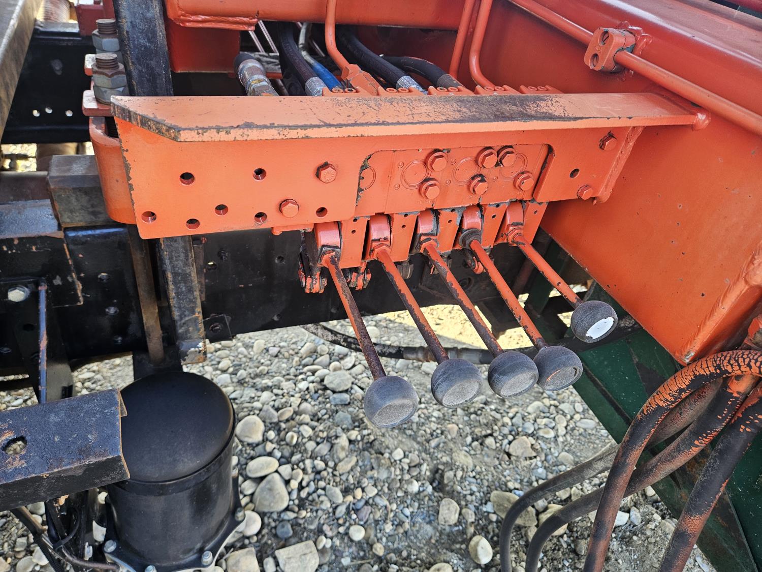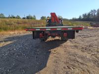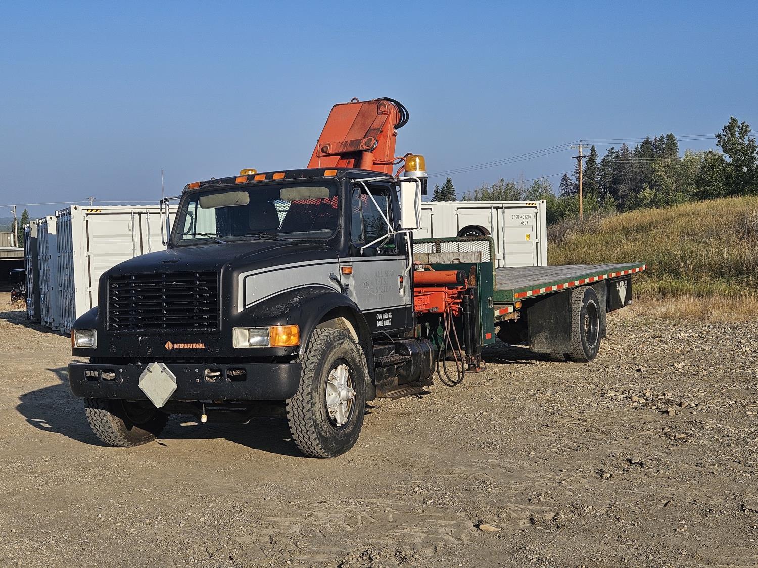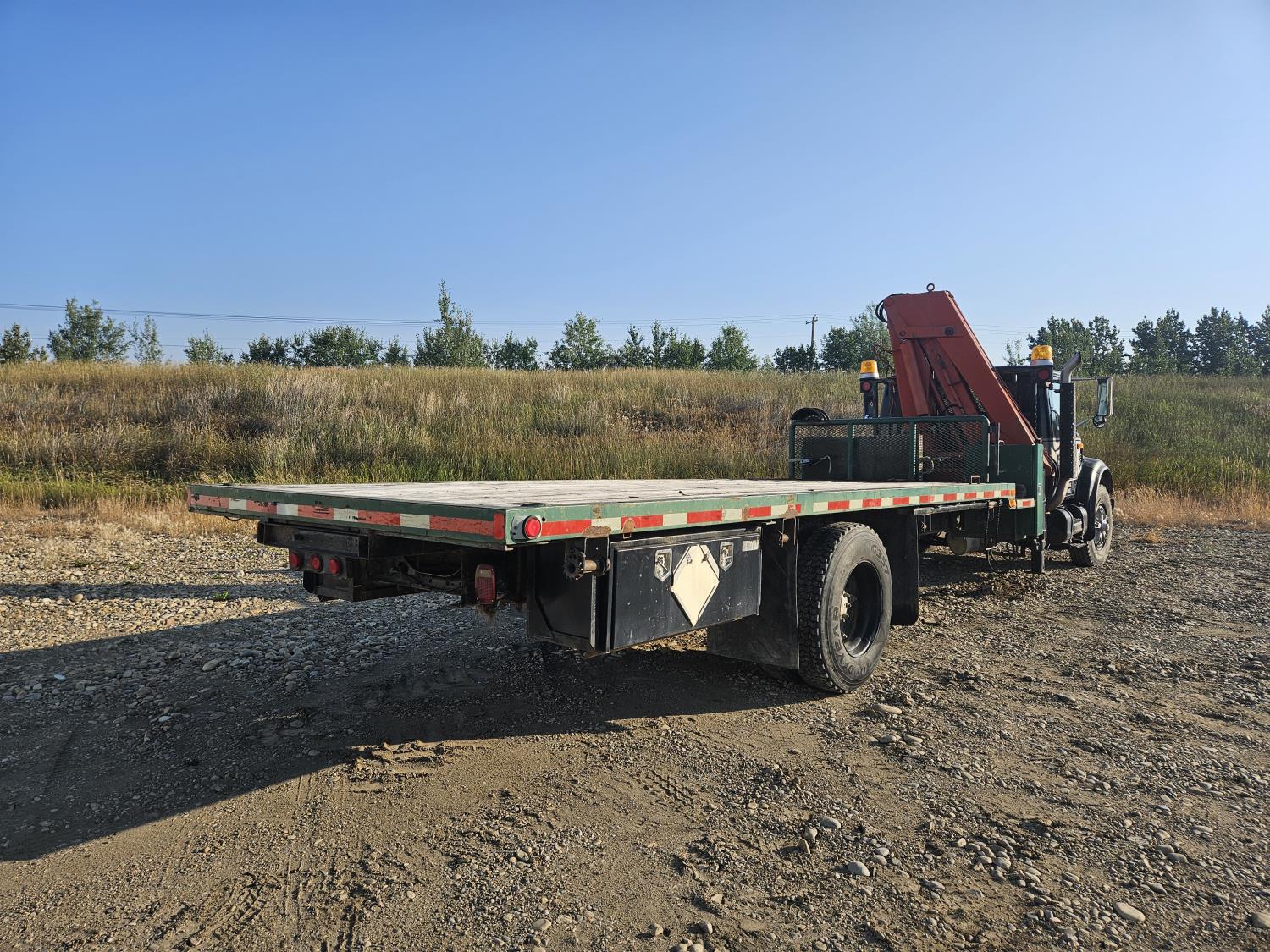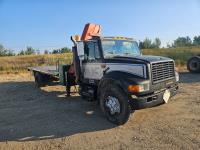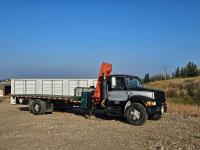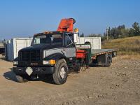 International 6 cylinder diesel engine, 5 X 2 manual transmission, hydraulic wet kit, tool boxes, 8 ft x 20 ft deck, beacons, HAP 1710 D 2 section knuckle crane, outriggers, spring suspension, 236 inch WB, 11R22.5 tires