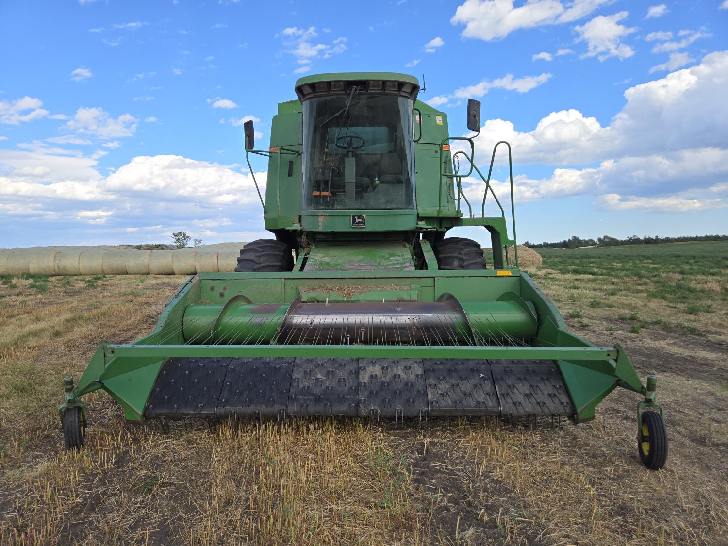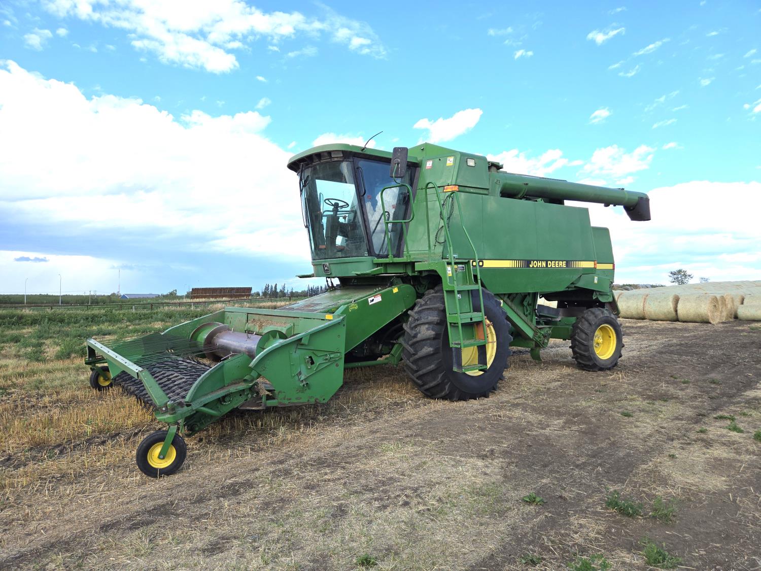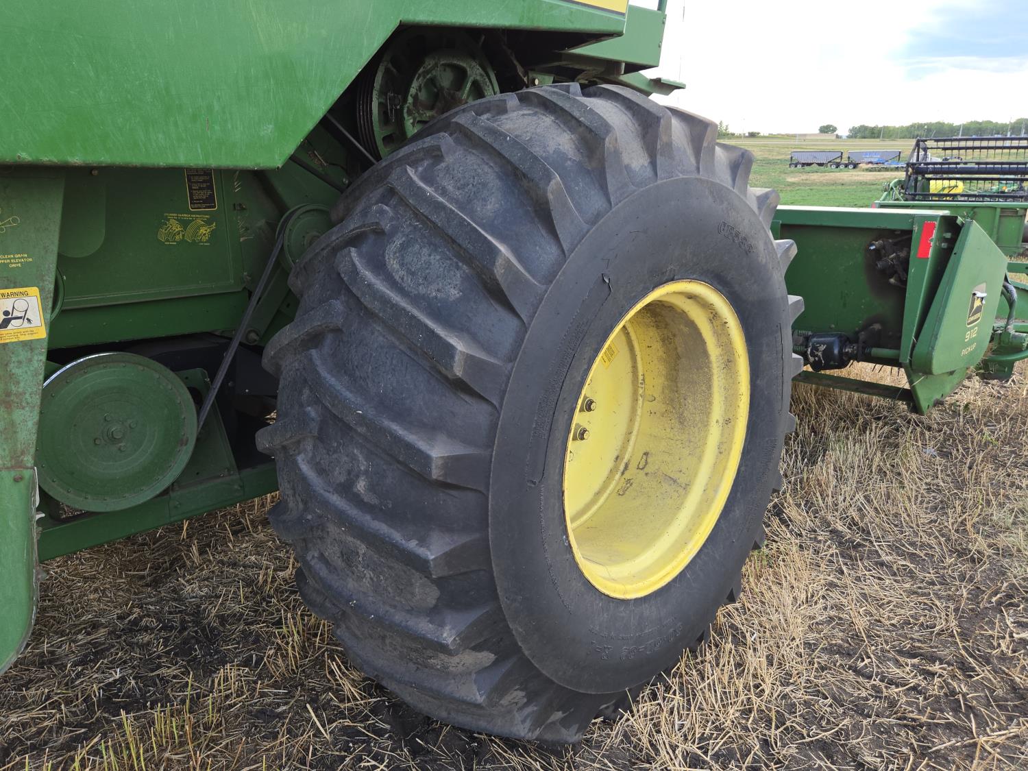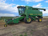 John Deere 912 12 ft pick-up header, reverser, chaff spreader, chopper, dual speed cylinder, A/C, radio, buddy seat, 30.5-32 front tires, 14.9-24 rear tires