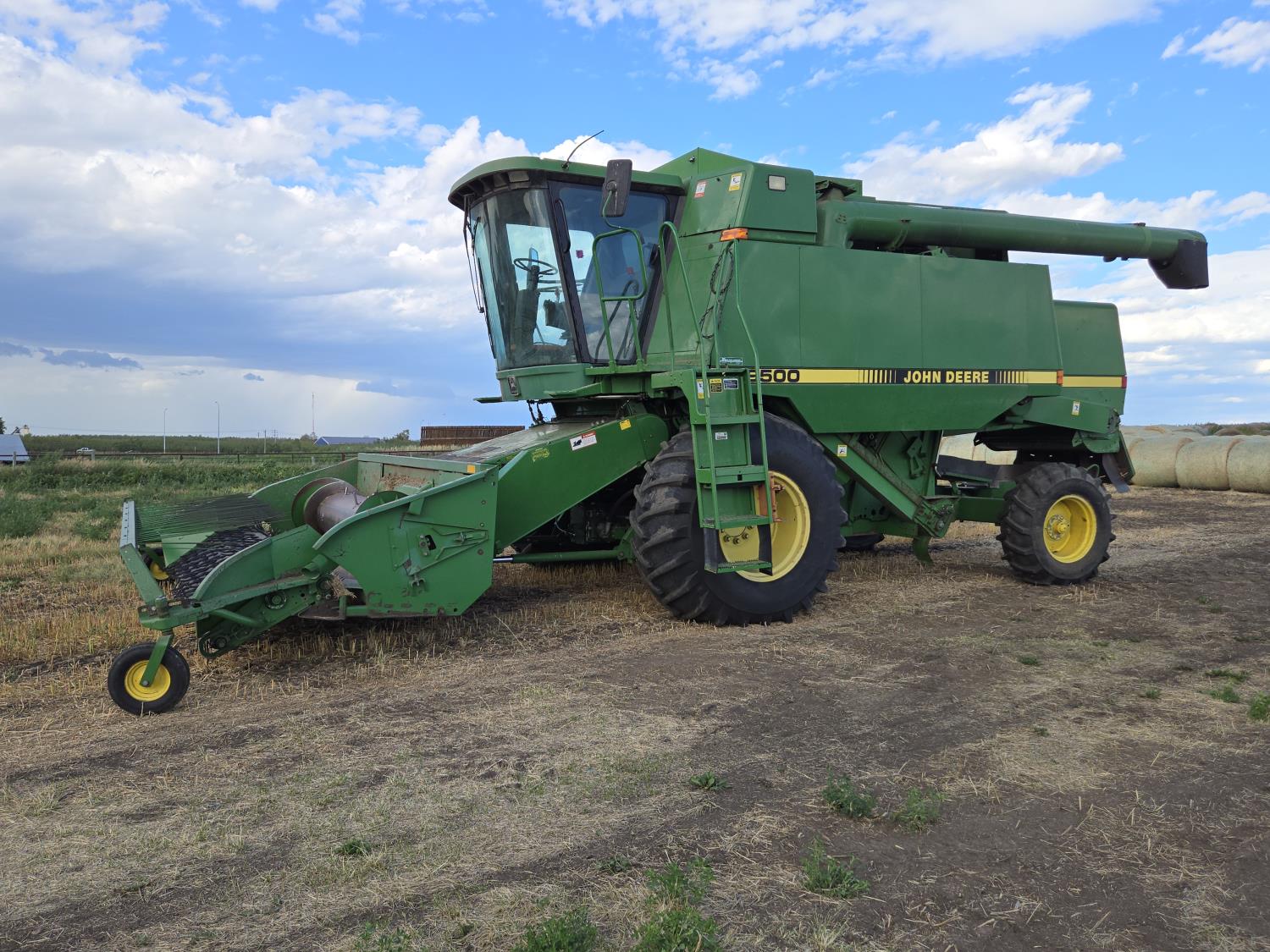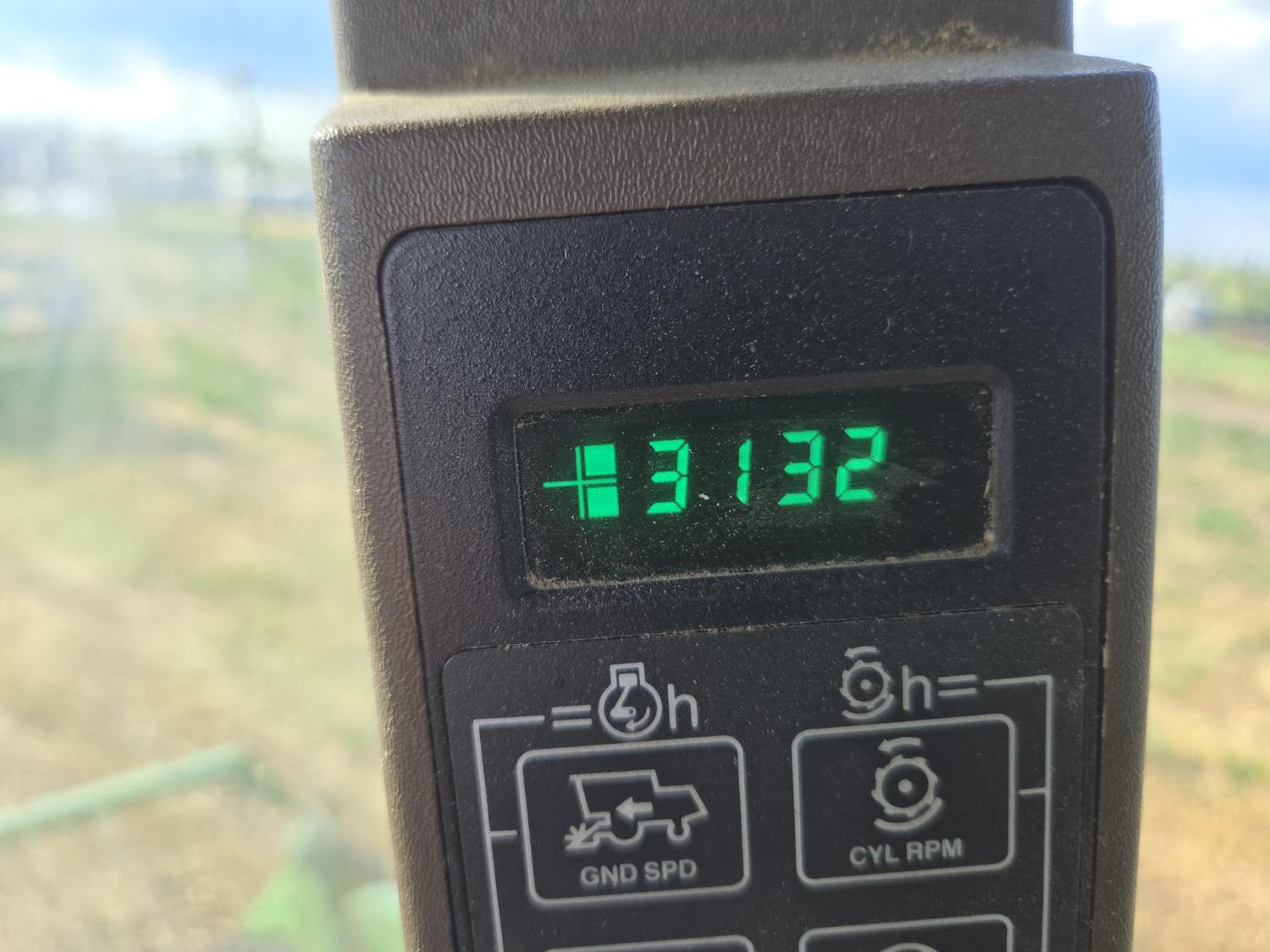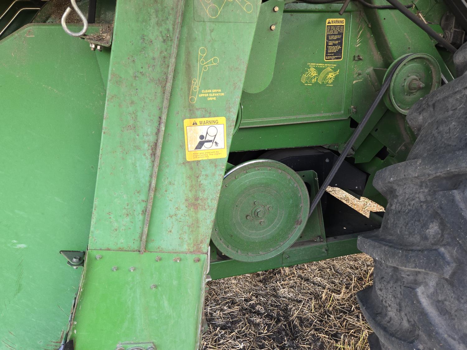 John Deere 912 12 ft pick-up header, reverser, chaff spreader, chopper, dual speed cylinder, A/C, radio, buddy seat, 30.5-32 front tires, 14.9-24 rear tires