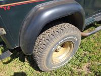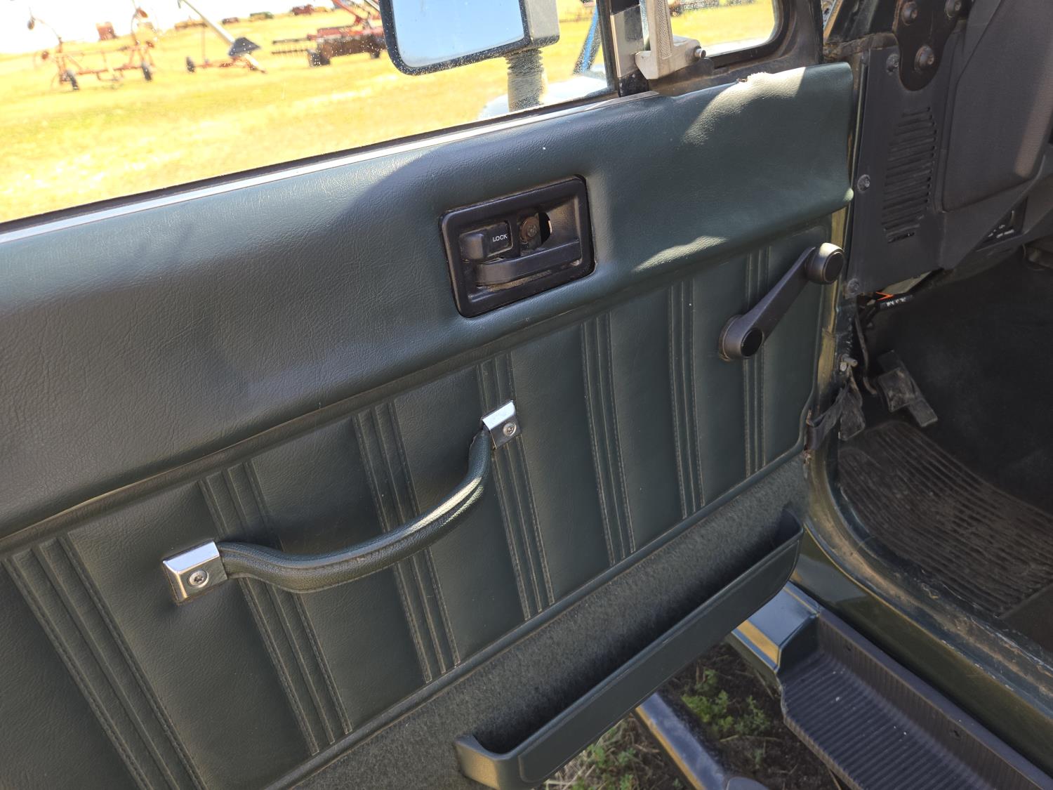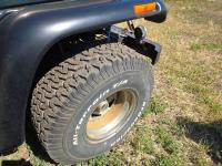 6 cylinder, gas, 5 speed manual transmission, 2 door, hard top, front tow hitch, running boards, 33X12.50X15 tires