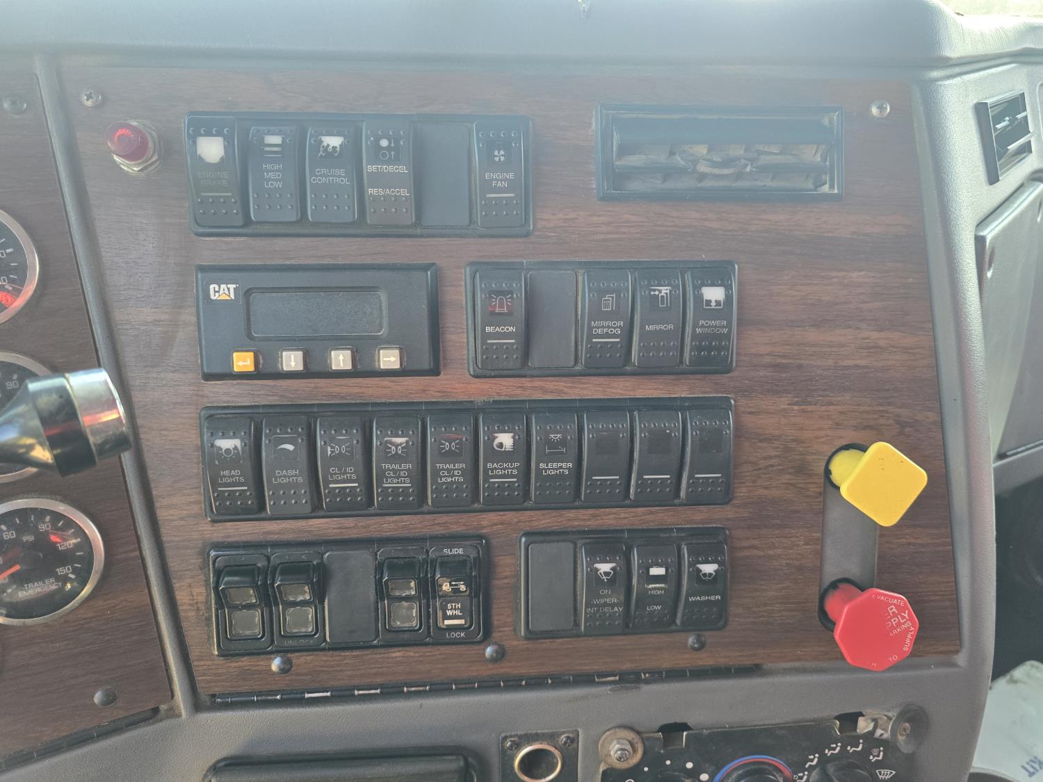 Caterpillar C-15 6 cylinder diesel engine, engine brake, Eaton Fuller FRLO-16410C-T2 13 speed manual transmission, 6NZ single turbo engine, high rise sleeper, bunk beds, A/C, cruise control, air ride driver seat, 2-way radio, stereo, aluminum tool boxes, beacons, air ride suspension, 12,000 lb front axle, 40,000 lb rear axles, full lockers, all aluminum wheels, 11R24.5 tires