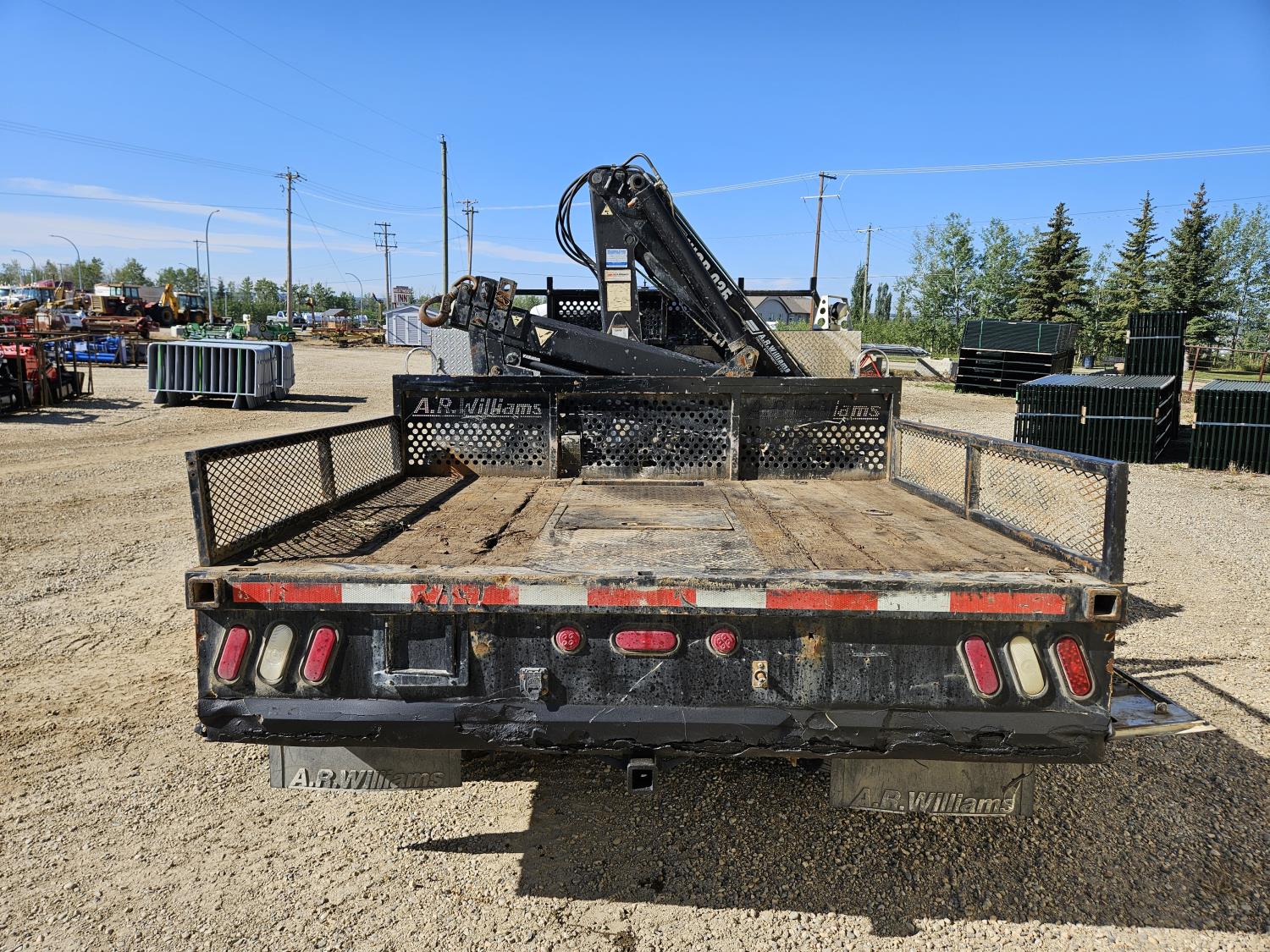 6.0 L V8 diesel engine, positive air shutoff, automatic transmission, A/C, radio, hydraulic wet kit, tool boxes, 8 ft x 6 ft deck, Hiab 035 3 section knuckle crane, outriggers, spring suspension, 245/70R19.5 front tires, 245/70R19.5 rear tires