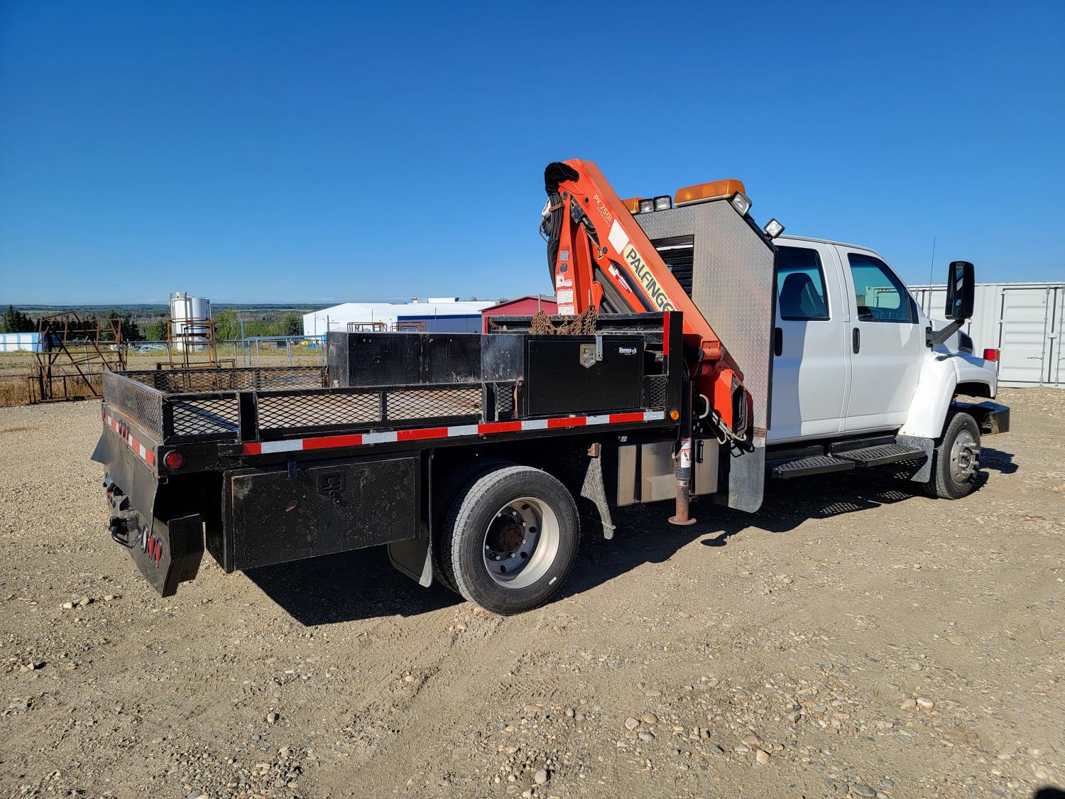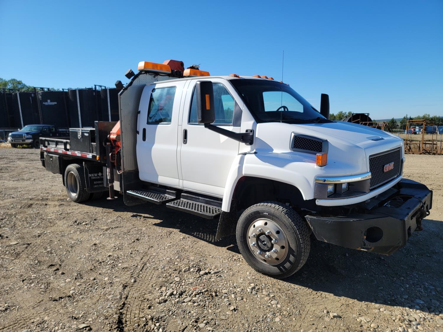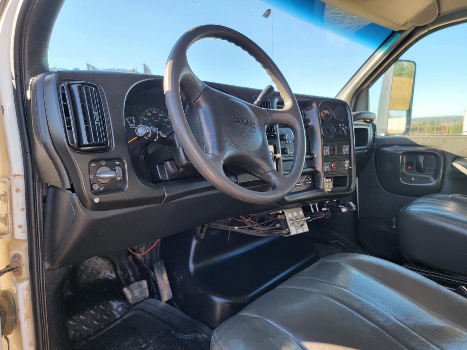 Gmc DURAMAX 6.6 L V8 diesel engine, Allison LCT 1000 transmission, A/C, cruise control, leather interior, stereo, Rear Trailer Hitch, Aluminum Wheels With 245/70 R19.5 tires, 8000lb winch, Headache Rack Beacons, Palfinger Picker Model # PK7501 Deck 92 Inches Wide X 120 Inches long