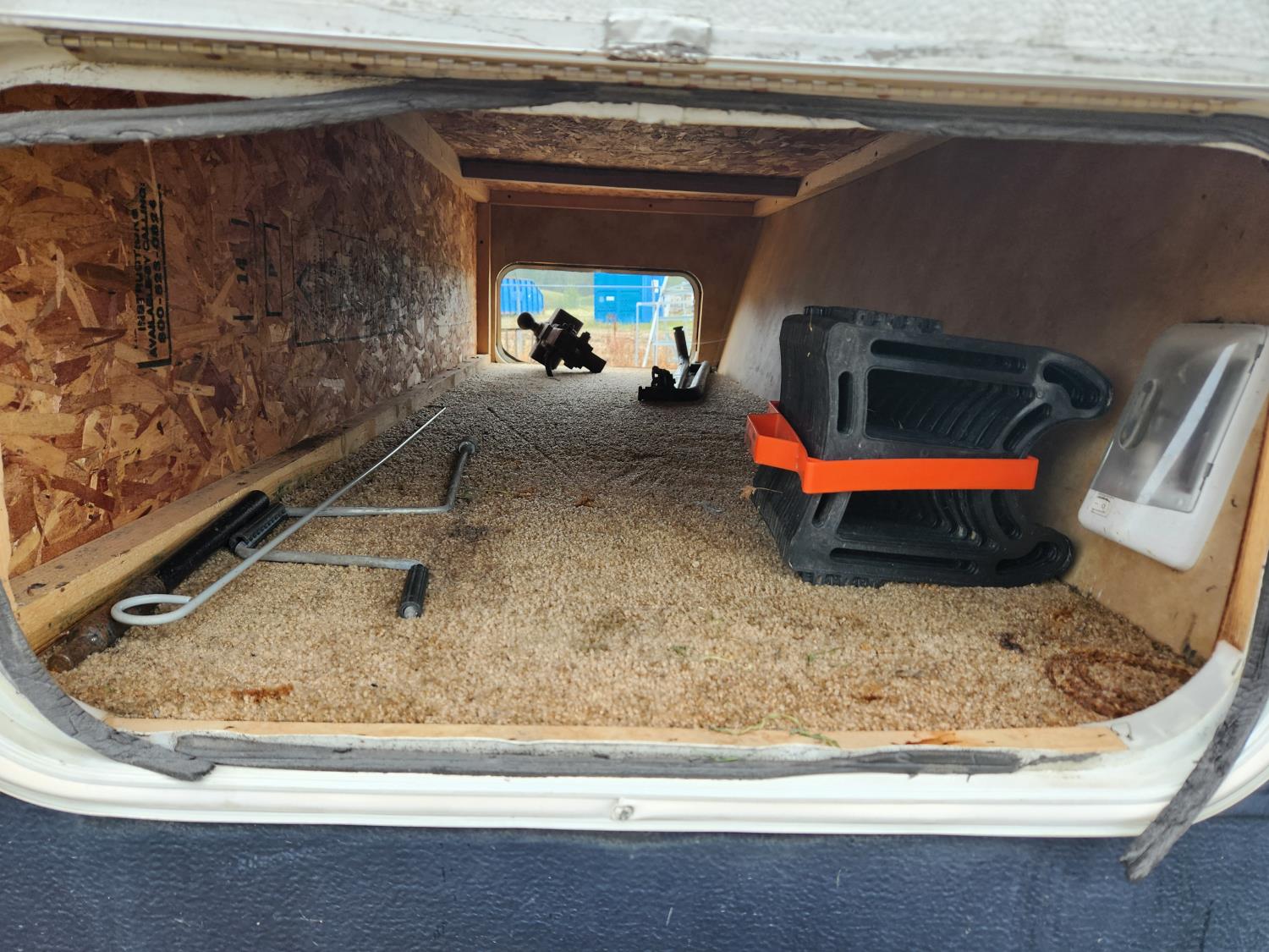 Hitch & Sway Bars Inside Front Storage Compartment