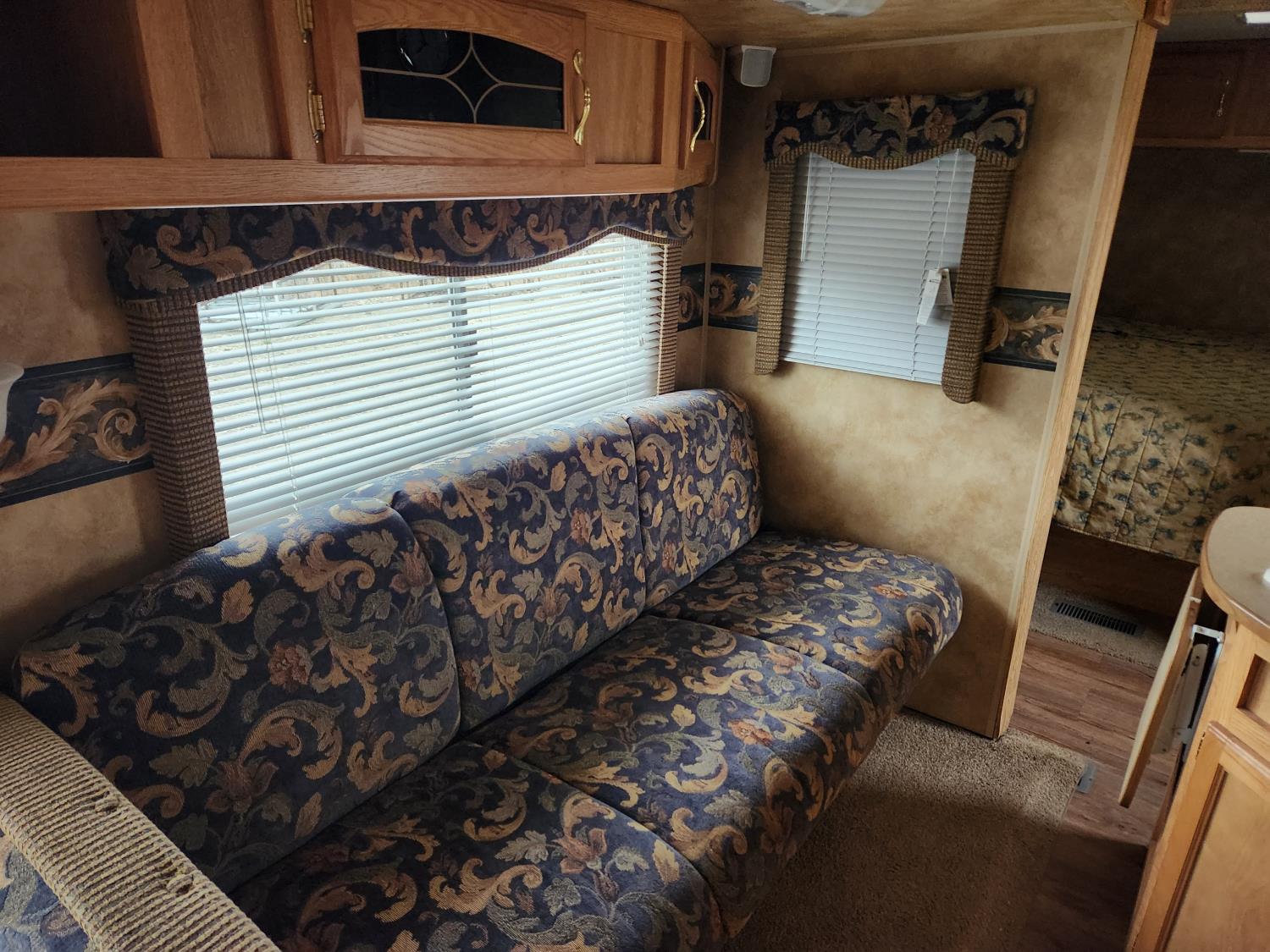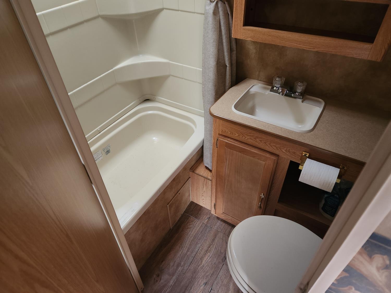 stove, fridge, microwave, full bath, master bedroom, bunk beds, A/C, manual awning, spring suspension, 13ft slide, 225/75R15 tires