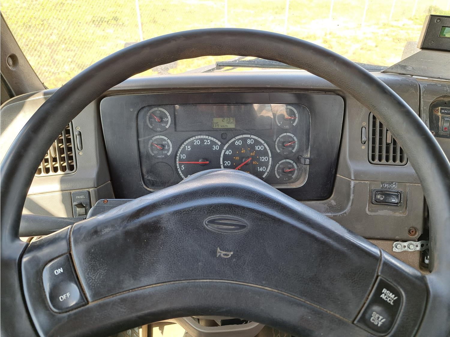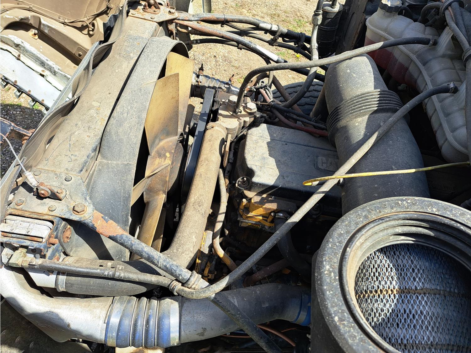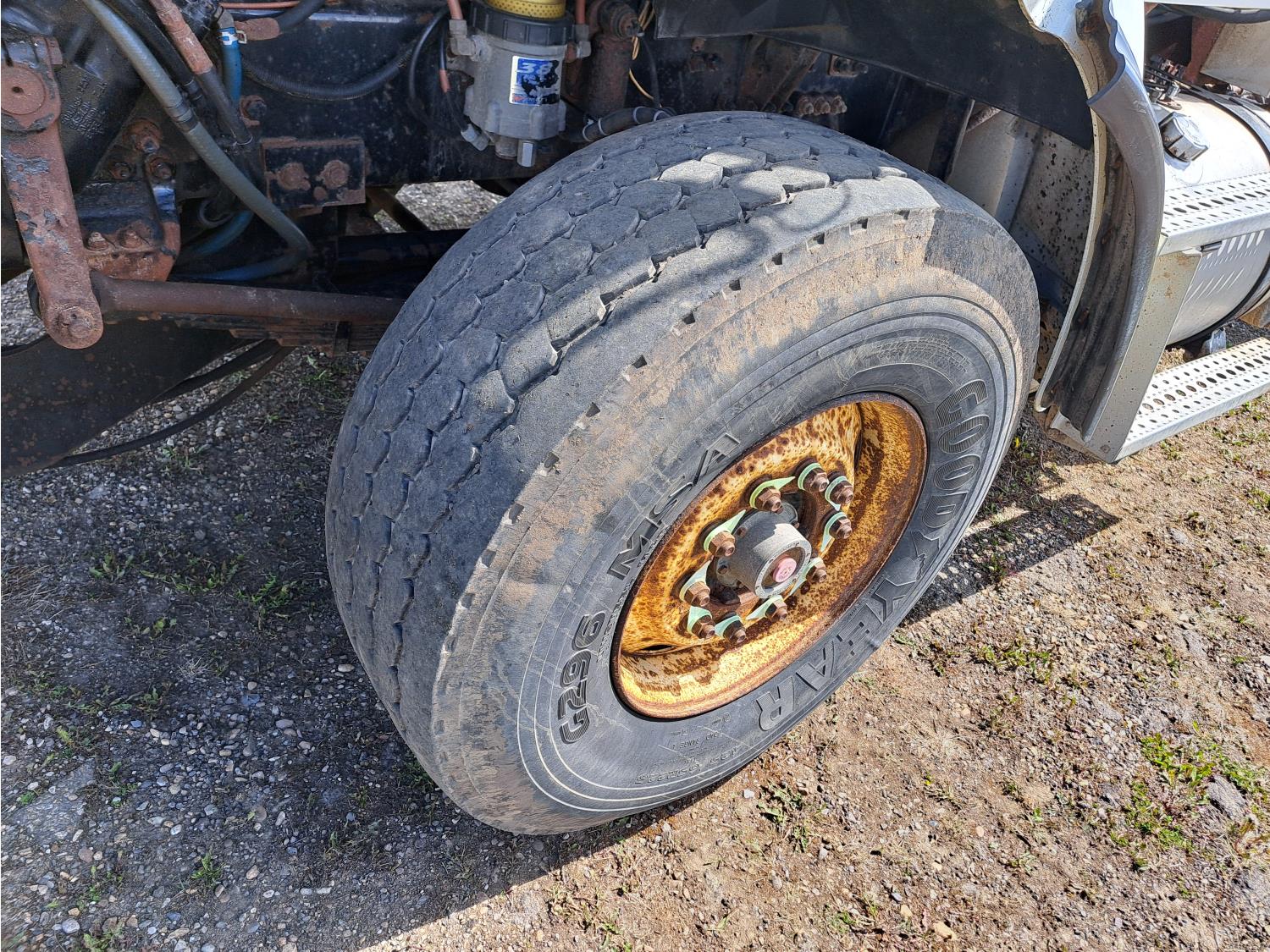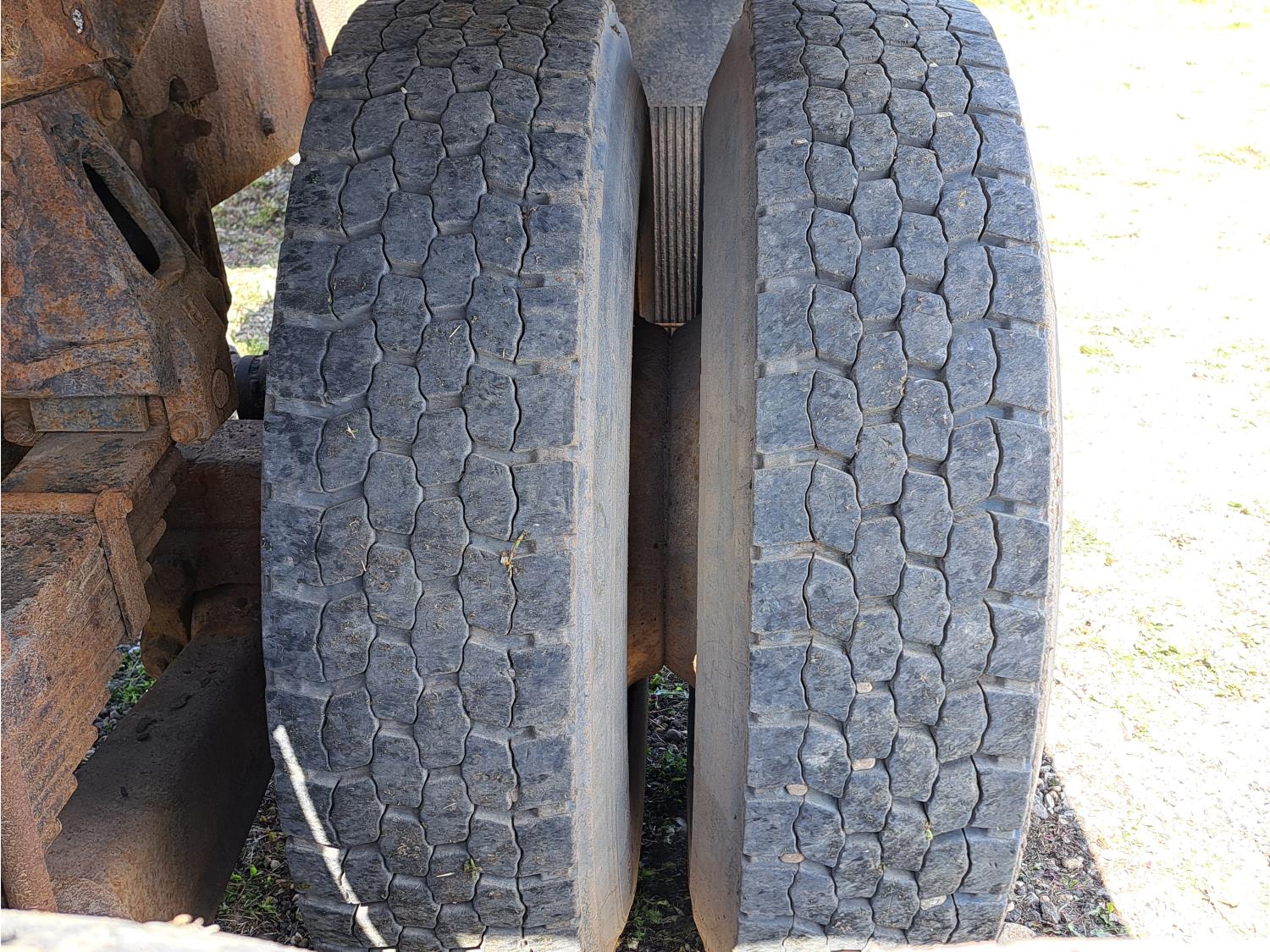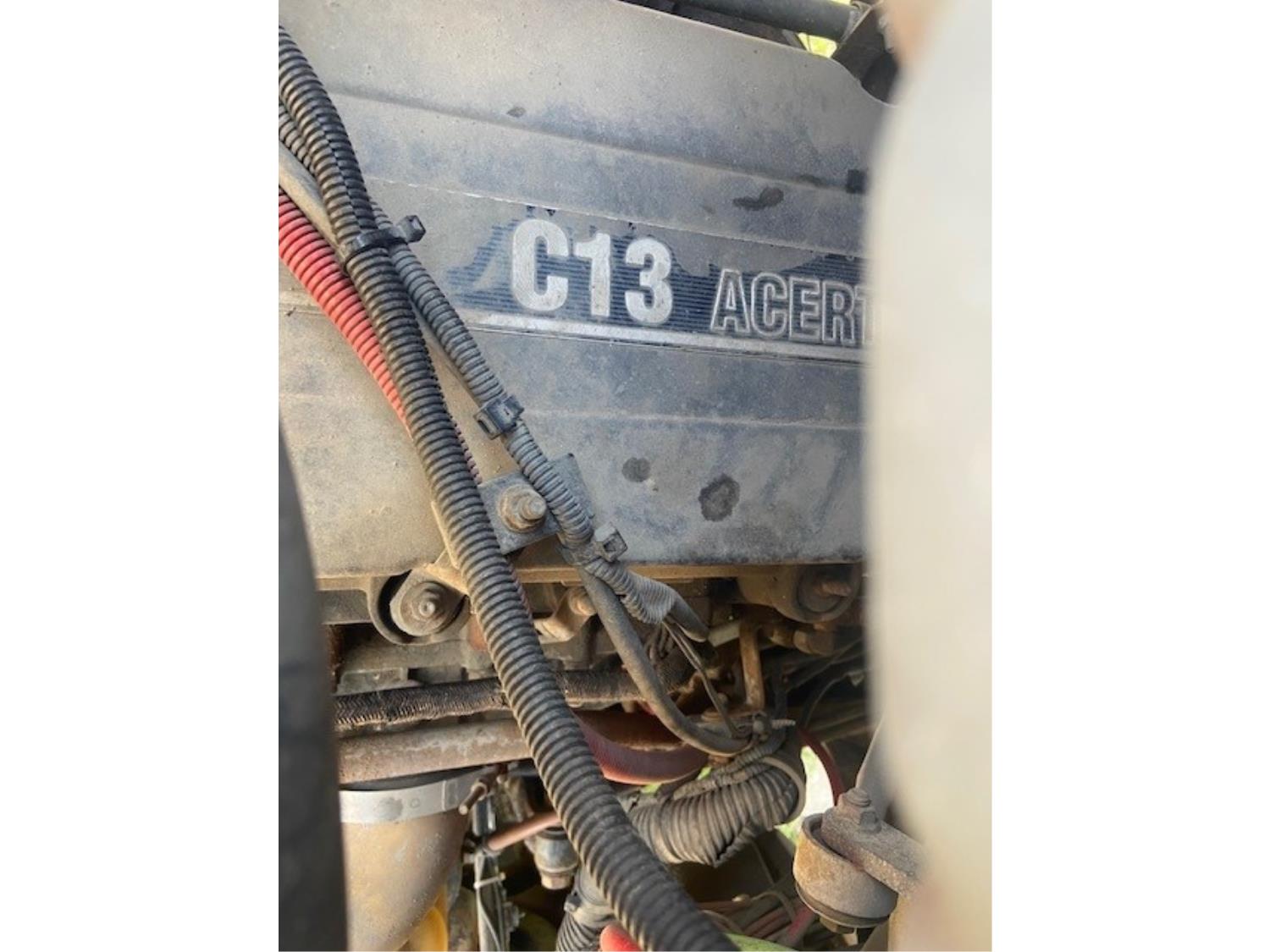Caterpillar C13 TWIN TURBO 15 6 cylinder diesel engine, engine brake, Eaton Fuller 18 speed manual transmission, A/C, cruise control, air ride driver seat, radio, hydraulic wet kit, beacons, air ride cab, 20,000 lb front axle, 46,000 lb rear axles, diff lock, 208 inch WB, 425/65R22.5 front tires, 11R22.5 rear tires