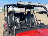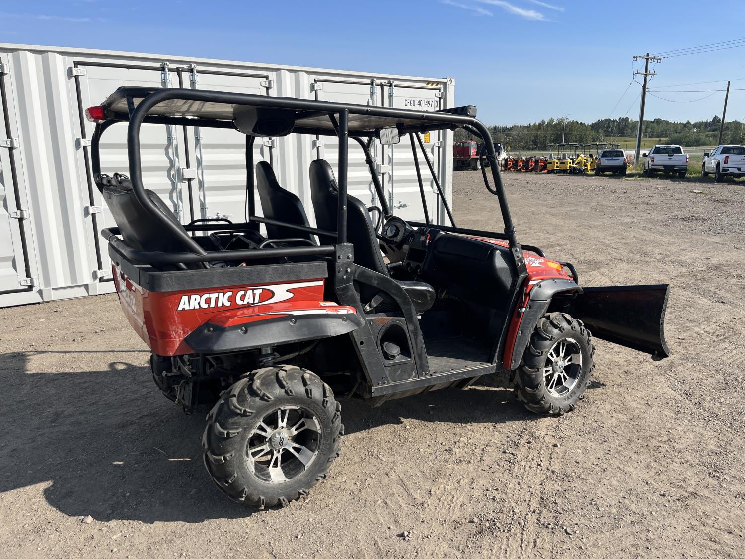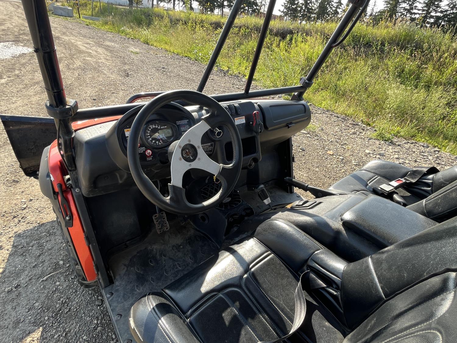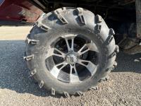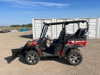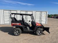 1000 cc fuel injected engine, automatic transmission, Hi/Lo range, reverse, 2 passenger seating with dump bucket, front winch with snow plough attachment, receiver and two 28x12x14 and two 28x10x14 tires.