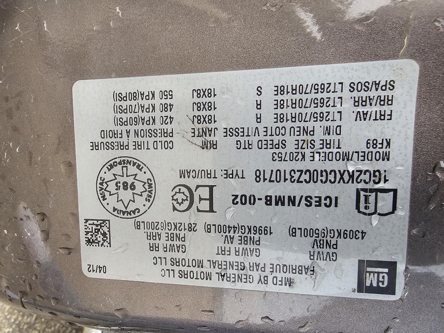1GC2KXCG0CZ310718