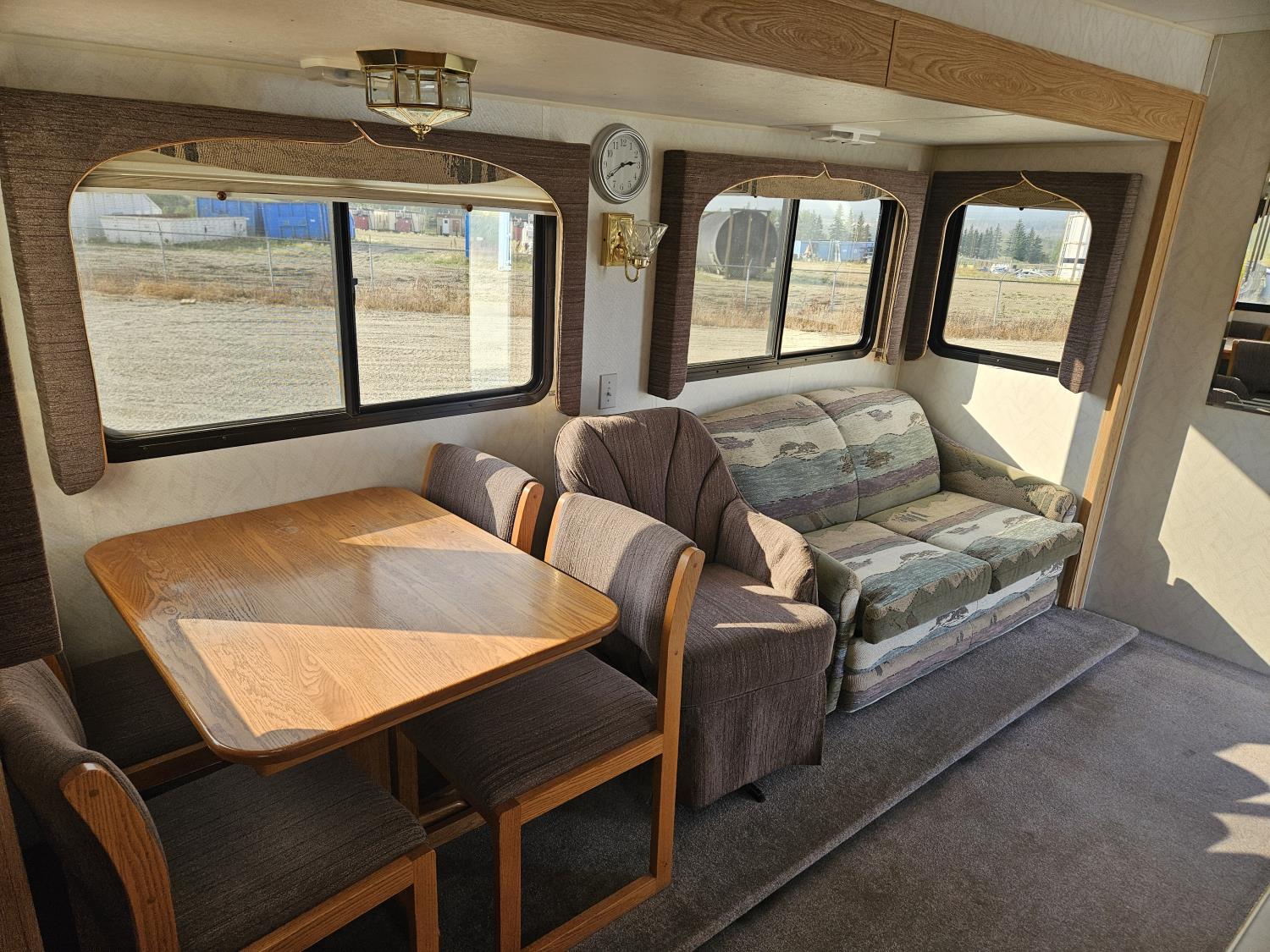 stove, fridge, microwave, full bath, A/C, manual awning, 12ft slide, 225/70R15 tires