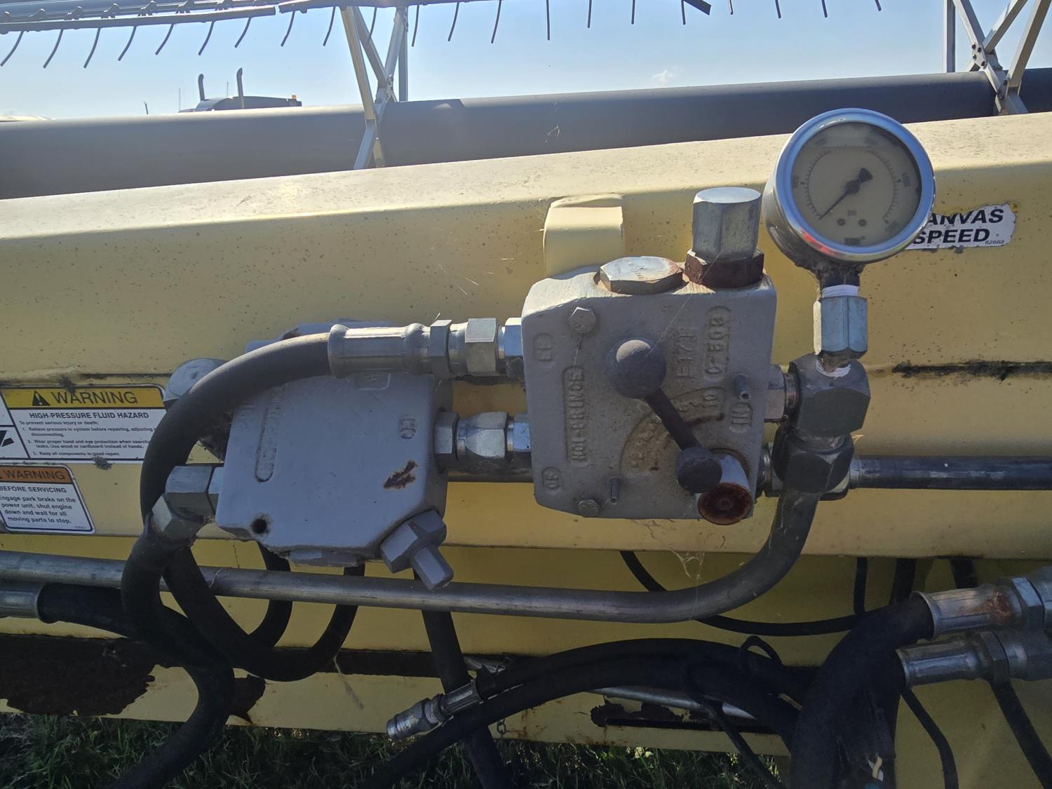 pickup reel, crop lifters, poly skid plates, transport, single knife drive, 225/75R15 tires