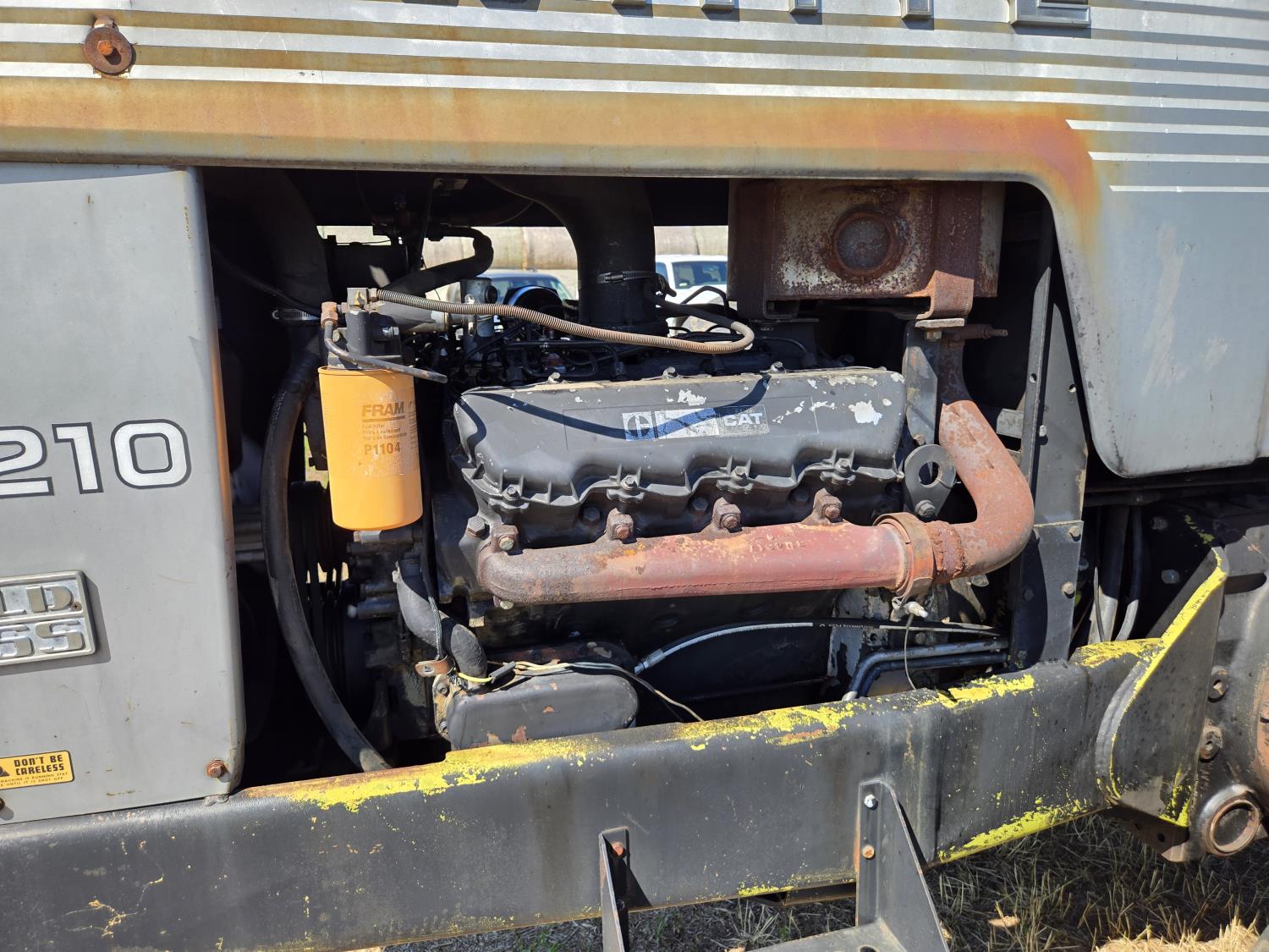 Caterpillar 3208 V8 210 HP, diesel engine, 182 PTO HP, 18 speed transmission w/ 3 speed power shift , cab, 1000 PTO, 3 rear hydraulic outlets, 20.8-38 dual tires